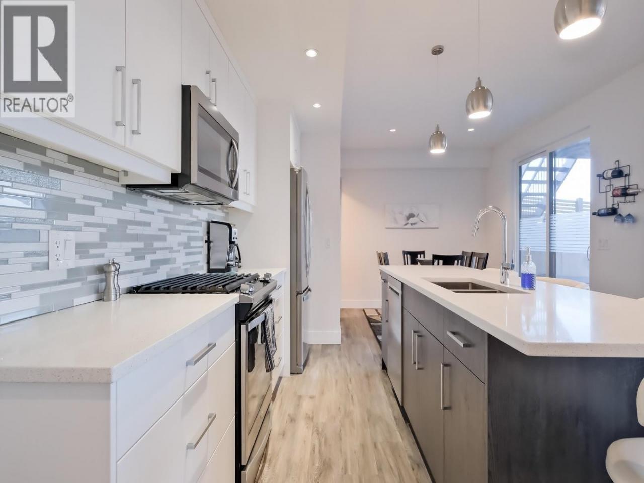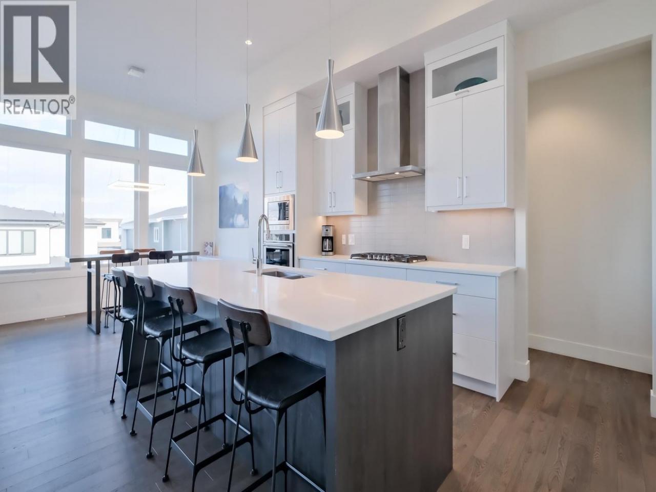 Discover refined living in this masterfully crafted 5-bedroom, 3-bathroom walkout rancher. The sophisticated open design showcases premium hardwood floors, a chef-inspired kitchen with luxurious quartz countertops, professional-grade stainless steel appliances, and built-in oven. The expansive covered deck extends from the grand living room, offering panoramic lake views and overlooking a private resort-style saltwater pool. The luxurious primary retreat on the main level features a walk-in closet and spa-inspired ensuite with heated floors, designer double vanity, tiled shower, and freestanding soaking tub. A second bedroom completes the main floor. The immaculate lower level offers a third bedroom plus a separate legal two-bedroom suite with high-end appliances, premium finishes, and sound engineering. Located in prestigious ""The Ponds"" community, enjoy hiking trails, winter skating, and easy access to Canyon Falls Middle School, Bellevue Creek Elementary, and shopping anchored by Save-On-Foods. Modern luxury meets natural splendor in this exceptional property. (id:6769)