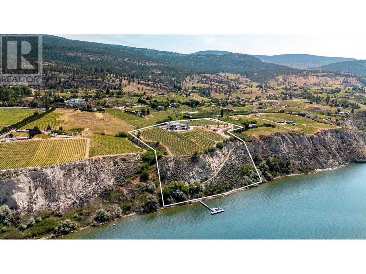 Discover a masterpiece poised above Okanagan Lake—an extraordinary estate where no luxury is spared. This home epitomizes refined living, offering a seamless blend of elegance, functionality, and natural beauty. Step through the grand entrance into an atmosphere of sophistication. Expansive wrap-around decks showcase breathtaking lake views, while exquisite stucco and natural rock walls create harmony with the stunning landscape. The gourmet kitchen features professional-grade appliances, a butler’s pantry, and an adjacent bar, perfect for effortless entertaining. The dining and great rooms frame awe-inspiring views of Okanagan Lake and vineyards stretching north to south. A luxurious primary suite includes a custom dressing room, his-and-hers ensuites, and a private deck. Adjoining, a world-class spa offers a steam shower, infrared sauna, and relaxation patio. A sumptuous guest suite completes the main level. Descend the spiral staircase to a lower level designed for entertainment and relaxation, featuring media and games rooms, a lounge, and fitness area. Three additional guest suites and a 7-capacity children’s bunkroom ensure space for family and friends. This 11 acre estate, with 4.7 acres planted in Pinot Noir, provides the perfect luxury backdrop for the viticulturist. A bluffside guest cottage and private boat dock complete this remarkable property. 1675 Midland Road - a signature Okanagan property, where privacy and luxury is a way of life. Some photos virtual. (id:6769)