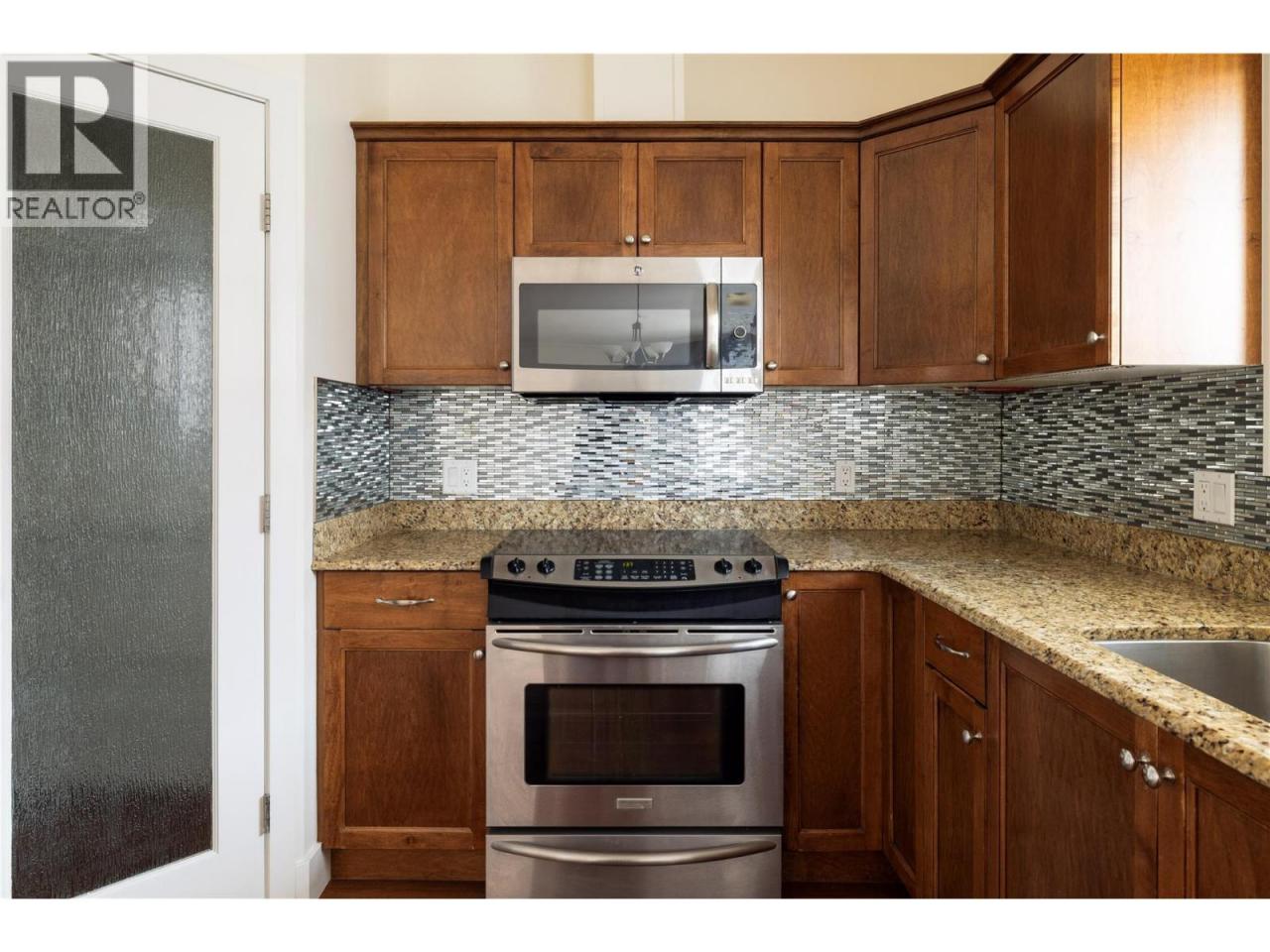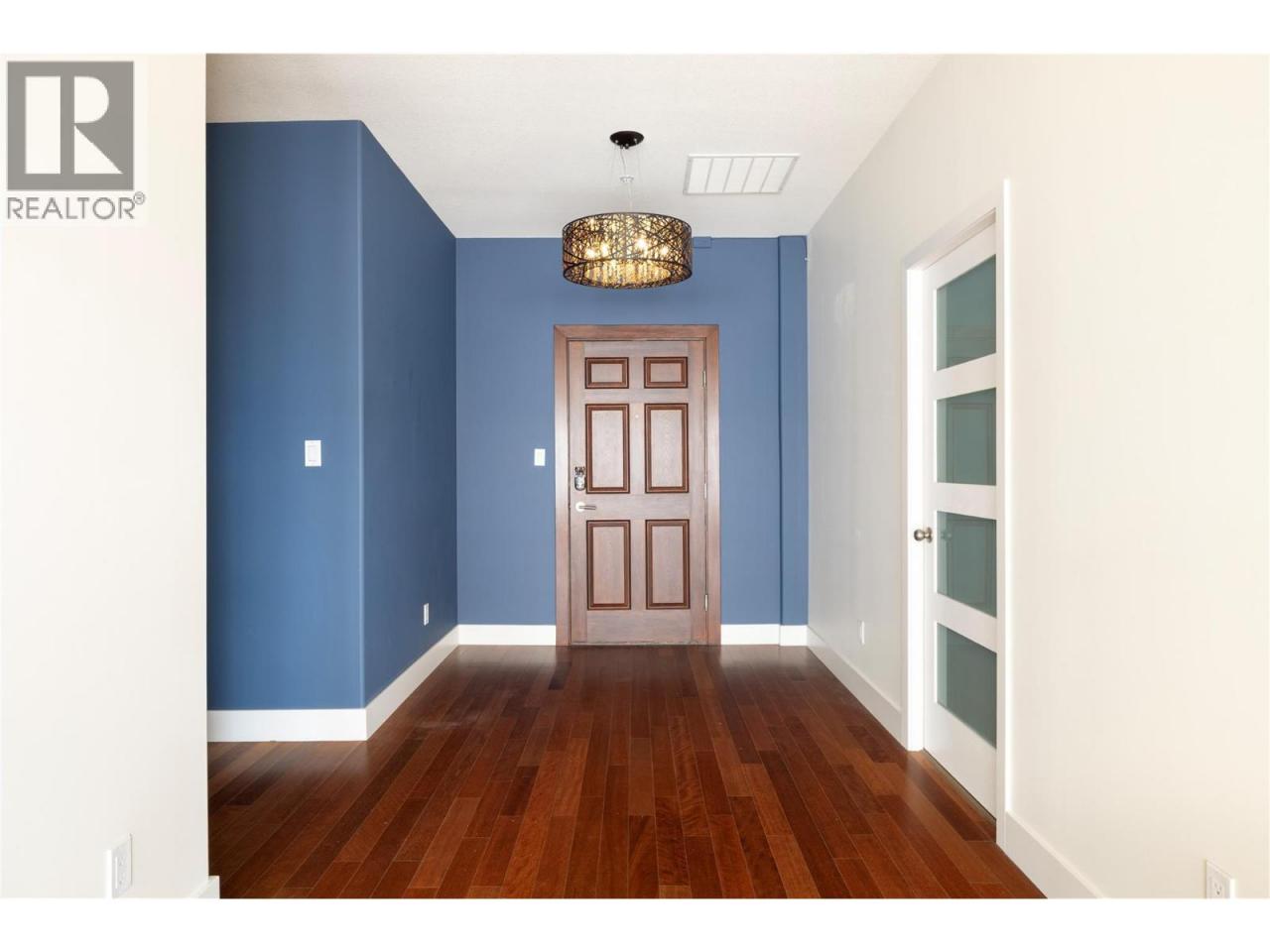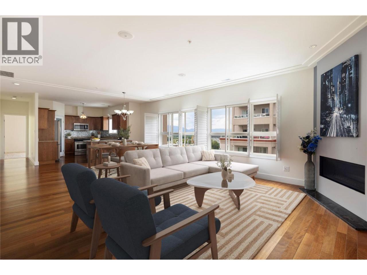 COMPARE VALUE – Spacious 1,920 sq foot Sub Penthouse. Experience timeless elegance in this 8th floor sub-penthouse suite offering luxury living in a quality concrete and steel building. Soaring 9-ft ceilings, panoramic lake and mountain views, and 600+ sq ft of private decks and balconies make this home truly one of a kind. Featuring two spacious master suites, each with walk-in closets and full ensuites, plus a generous den/flex room ideal for a home office or guest space. The open-concept great room showcases hardwood floors, custom wood shutters, updated gas fireplace, and a coffered ceiling for added charm. The chef’s kitchen is outfitted with stainless steel appliances, granite countertops, a pantry, and elegant finishes throughout. Includes three full bathrooms and two premium parkade stalls in a quiet, secure building. Enjoy resort-style amenities: indoor pool & hot tub, rec room, putting green, community garden plots, secured bike room, and plenty of underground visitor parking. Fast elevator access and recent building upgrades throughout. Unbeatable location across from Mission Creek Park & Greenway, Orchard Park Mall—walk to shops, banks and restaurants. Well-managed strata. Excellent pricing for a concrete building. Quick completion possible and easy to view—don’t miss out! (id:6769)