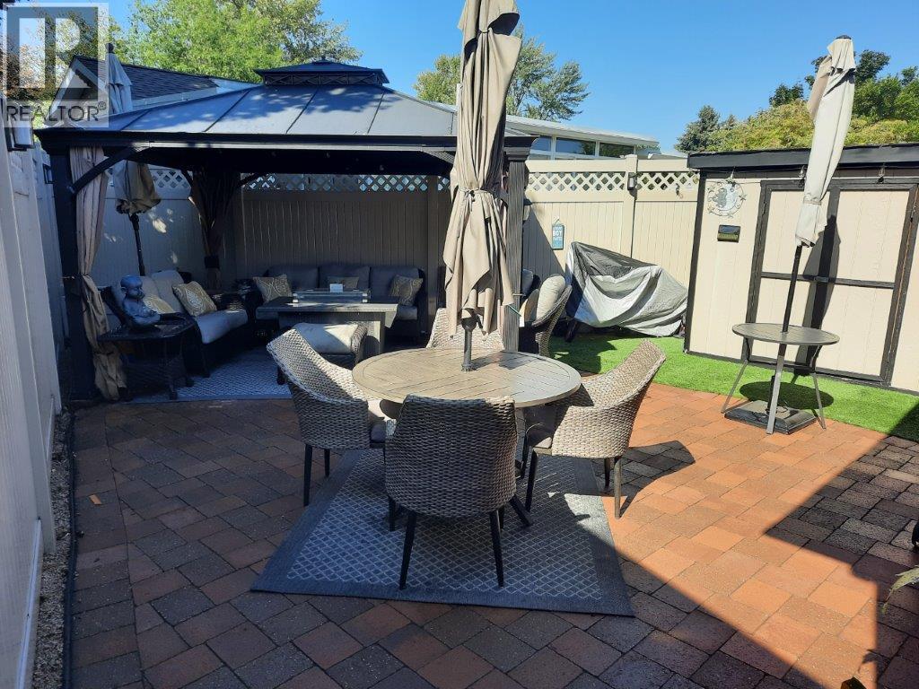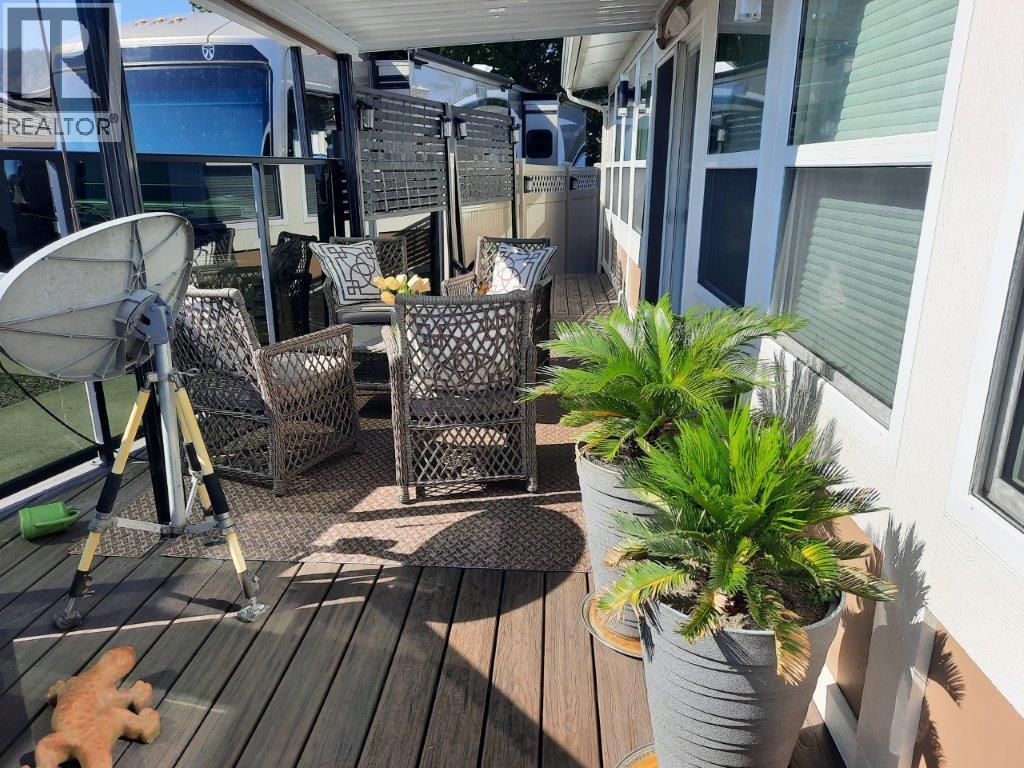 Exquisite Park Model home is priced to sell! The luxurious, open concept kitchen features custom Kekuli Bay cabinetry, granite countertops and stainless high end appliances. The bathroom has Kekuli Bay cabinetry, custom design window and sensor lighting under the vanity. There are solar tubes in the kitchen and bathroom. In floor heating and custom blinds throughout enhance the elegance of this home. The Hot Water on Demand, Reverse Osmosis water system and water softener are included. For your sleeping comfort, there is a king bed in the spacious bedroom. Enjoy the maintenance free backyard where you will find the hard top gazebo, brick patio and an 8' x 8' wired and insulated shed for all your projects. The wrap around composite decking with smoked glass railing is the perfect spot for entertaining family and friends. Underneath the Park Model has been sealed with plywood. For your convenience, there are sliding storage compartments under the unit. There is no Property Transfer Tax. Long and short term rentals allowed. Maintenance fee for 2025 is paid annually. Maintenance Fee includes security, water, sewer, use of the amenities, maintenance of the common areas and roads, snow removal and garbage disposal area. The site is registered with the Federal Government and the Park Model ownership is transferred by Bill of Sale. Holiday Park Resort has many amenities: pools, hot tubs, restaurant, golf course, pickleball court plus more. (id:6769)