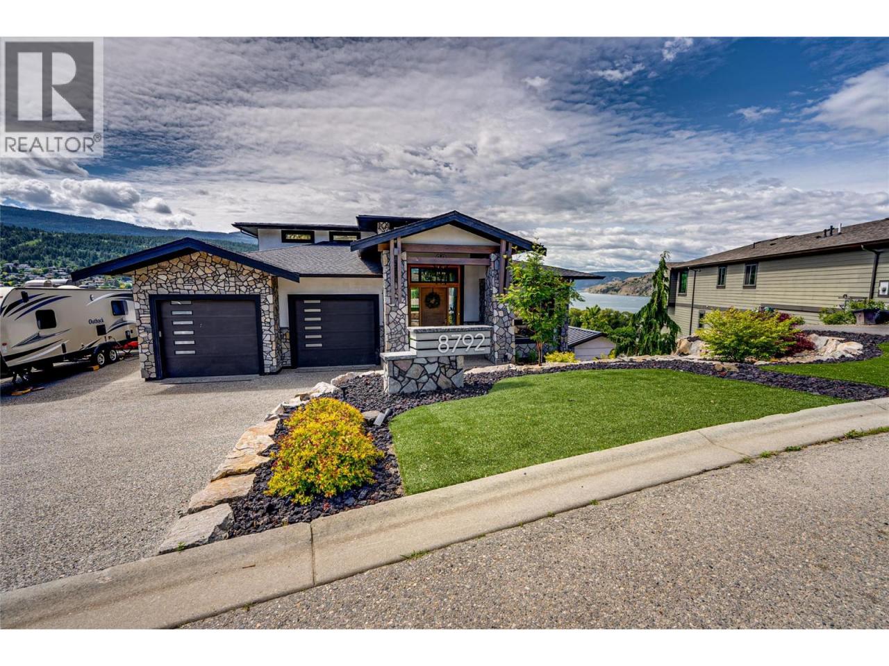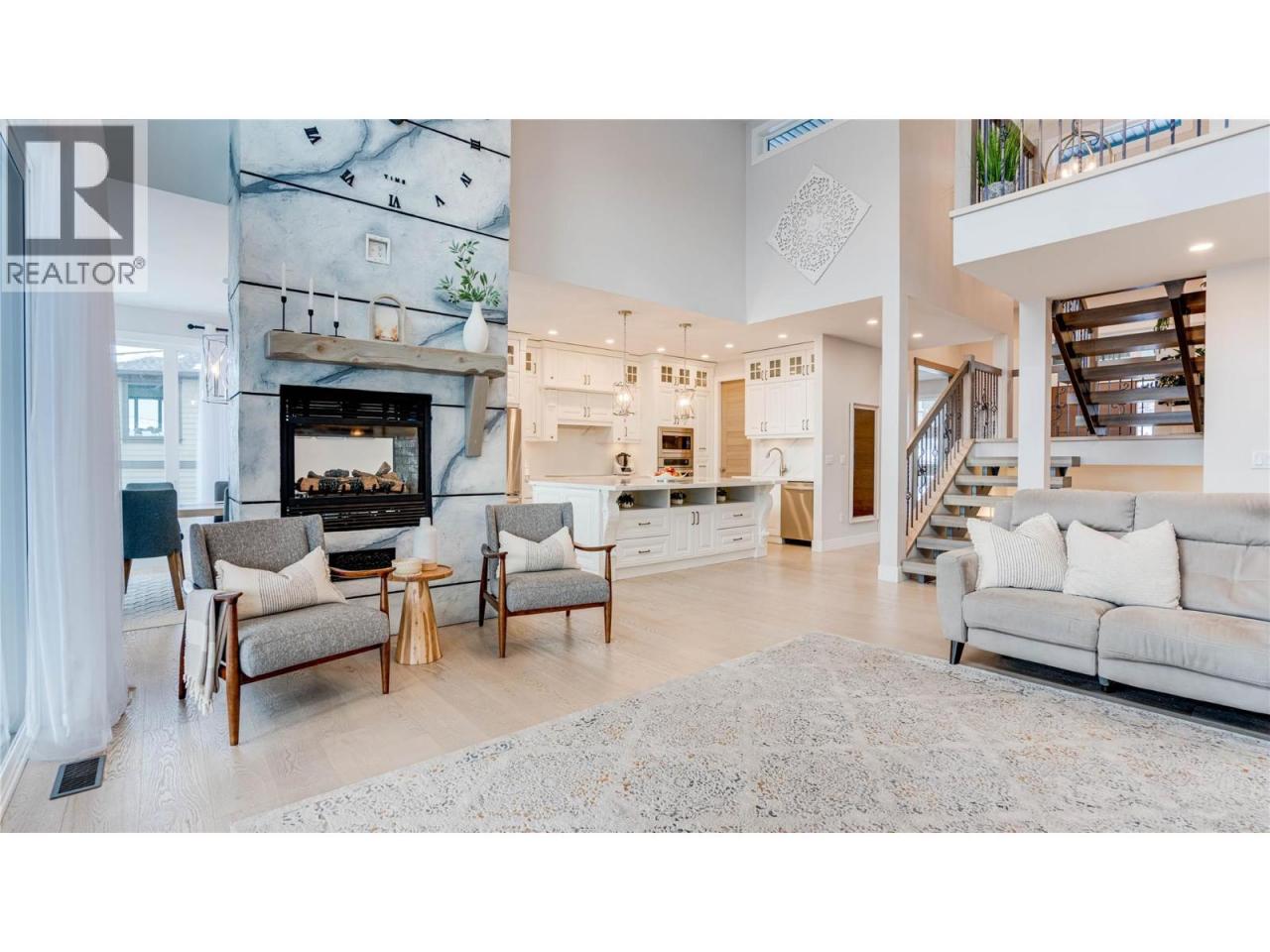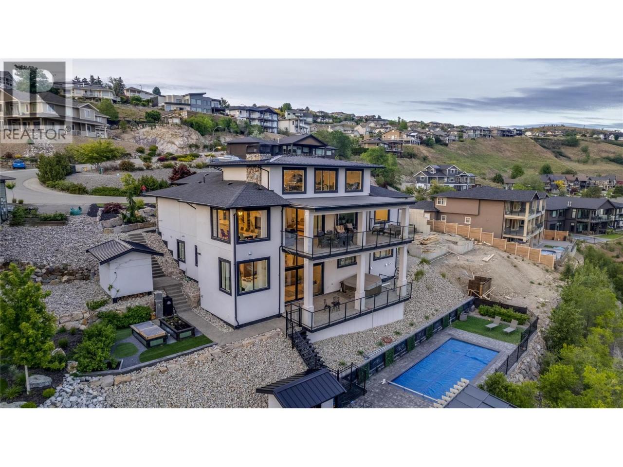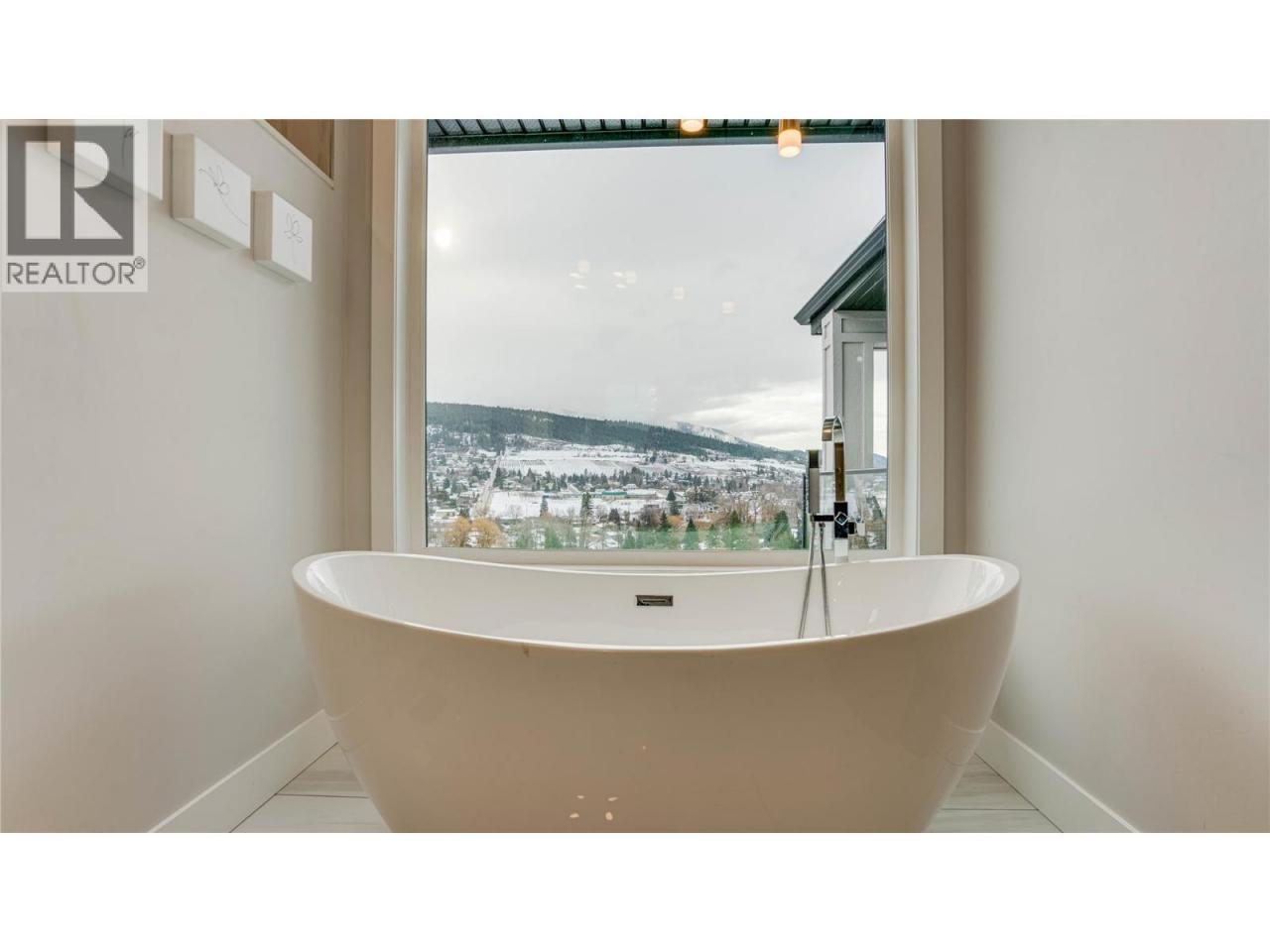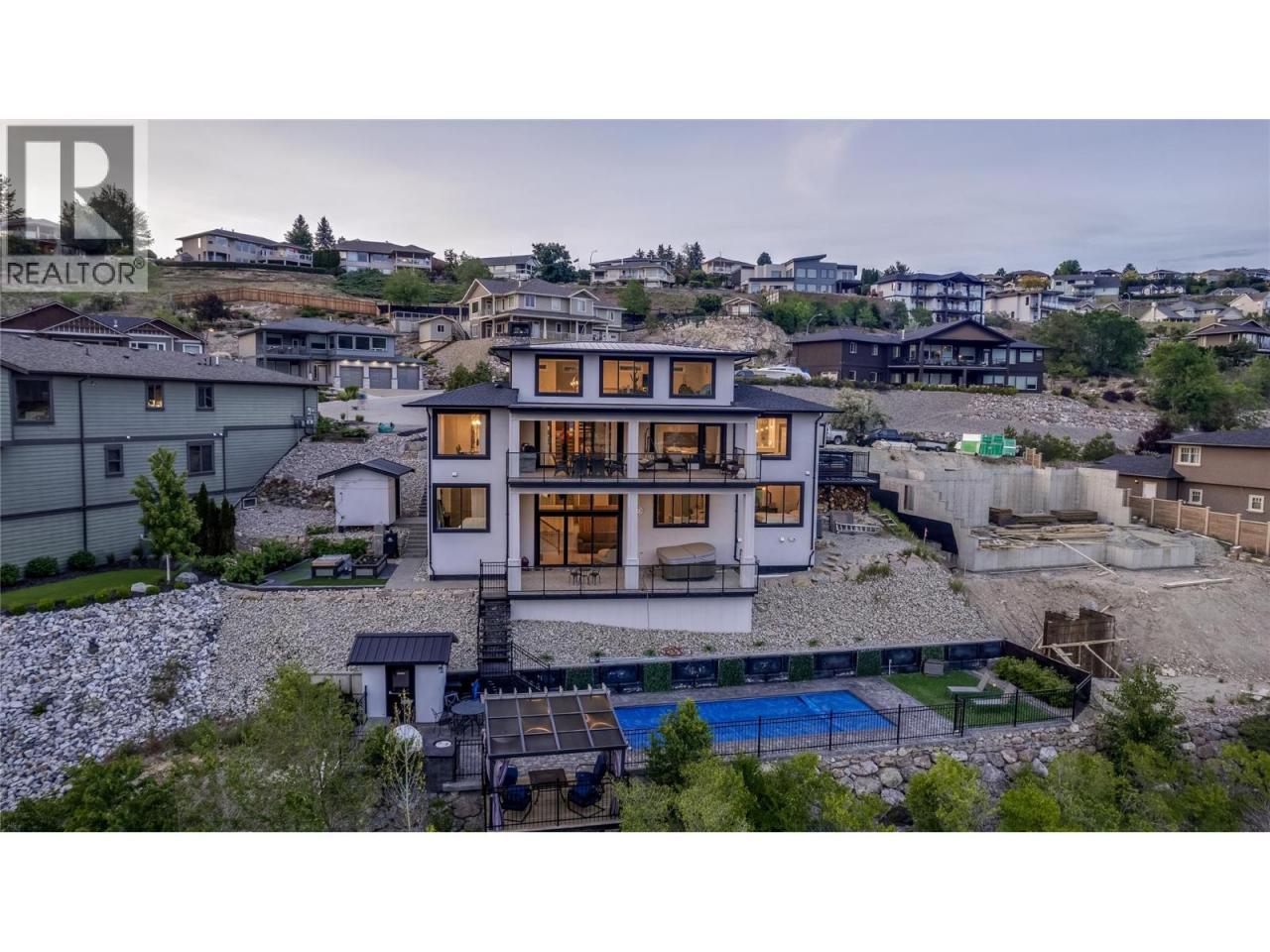 This fabulous Kalamalka Lakeview property with in-ground saltwater pool in desirable Coldstream takes move-in ready to the next level. Enter through the main custom solid wood door with extensive rubber seals for extra sound proofing as you will find with all the interior doors. The main floor contains an open-concept layout centered around maximizing the views. With ceilings lofted to the bonus room on the second floor and a breathtaking marble fireplace, the living room is ideal for entertaining. The adjacent kitchen comes completed with classic white cabinetry, a massive center island, top of the line appliances, and a walk-in pantry. Further, the main floor master suite is an idyllic retreat with a soaker tub in the ensuite bathroom and large walk-in closet. From this level, a covered balcony with built-in grill awaits seasonal outdoor dining. Below the main floor, an expansive lower floor contains four bedrooms, two bathrooms, two laundry spaces, and a bonus room. A family room on this level has a handsome stone-faced fireplace. From here, walk out onto a covered balcony with hot tub and breathtaking views. (id:6769)