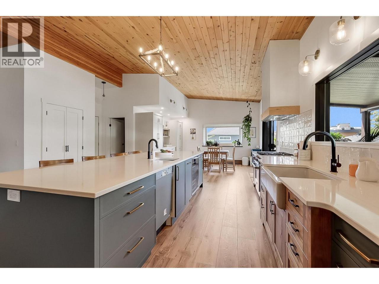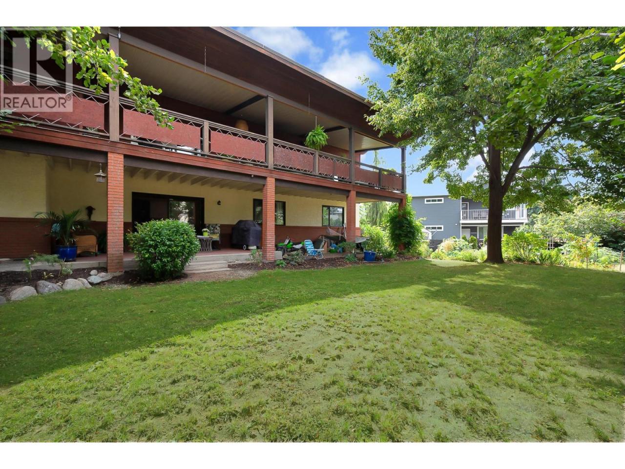Welcome to a standout 5-bedroom, 4-bathroom home in one of Kelowna’s top neighbourhoods. With 5,240 sq. ft. across four levels on a private 0.27-acre lot, this property offers space, comfort, and unbeatable walkability—just minutes to the rail trail, downtown, parks, and schools. The main level features vaulted wood ceilings, an impressive multi-level rock fireplace, and a fully updated kitchen with custom cabinets, an island, gas range, pantry, and built-in coffee bar. These spaces open directly onto a huge covered deck. All bedrooms are oversized for maximum comfort. The home includes a summer kitchen, a hidden room ideal for a wine cellar, and a workshop under the garage with an office and separate entrance—perfect for hobbies or home-based work. Lower levels offer three additional bedrooms, a rec room, and flexible living areas. Additional features include central air on the upper levels, efficient hydronic radiant heating, an oversized double garage, and a fenced yard with a productive garden and patio. (id:6769)