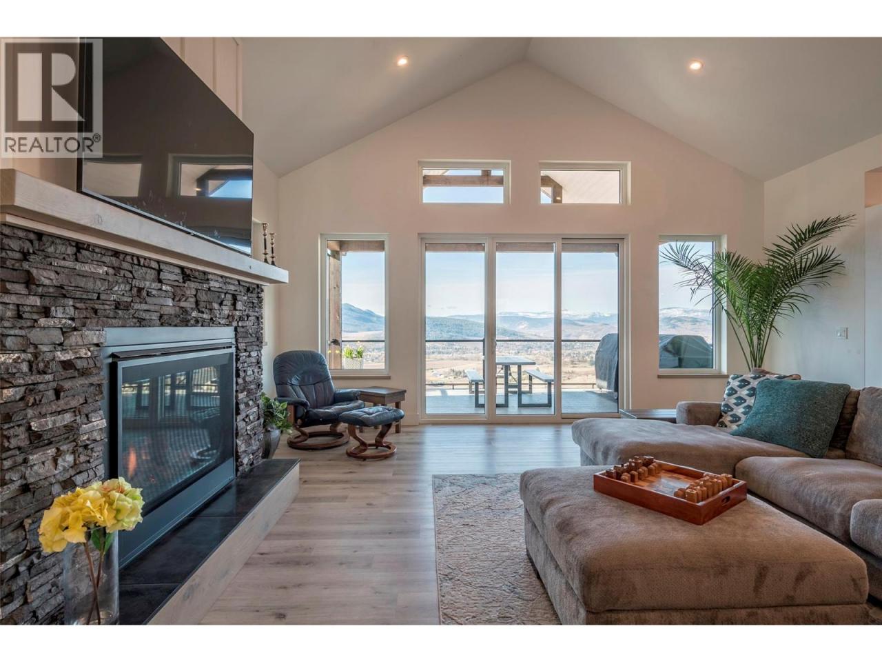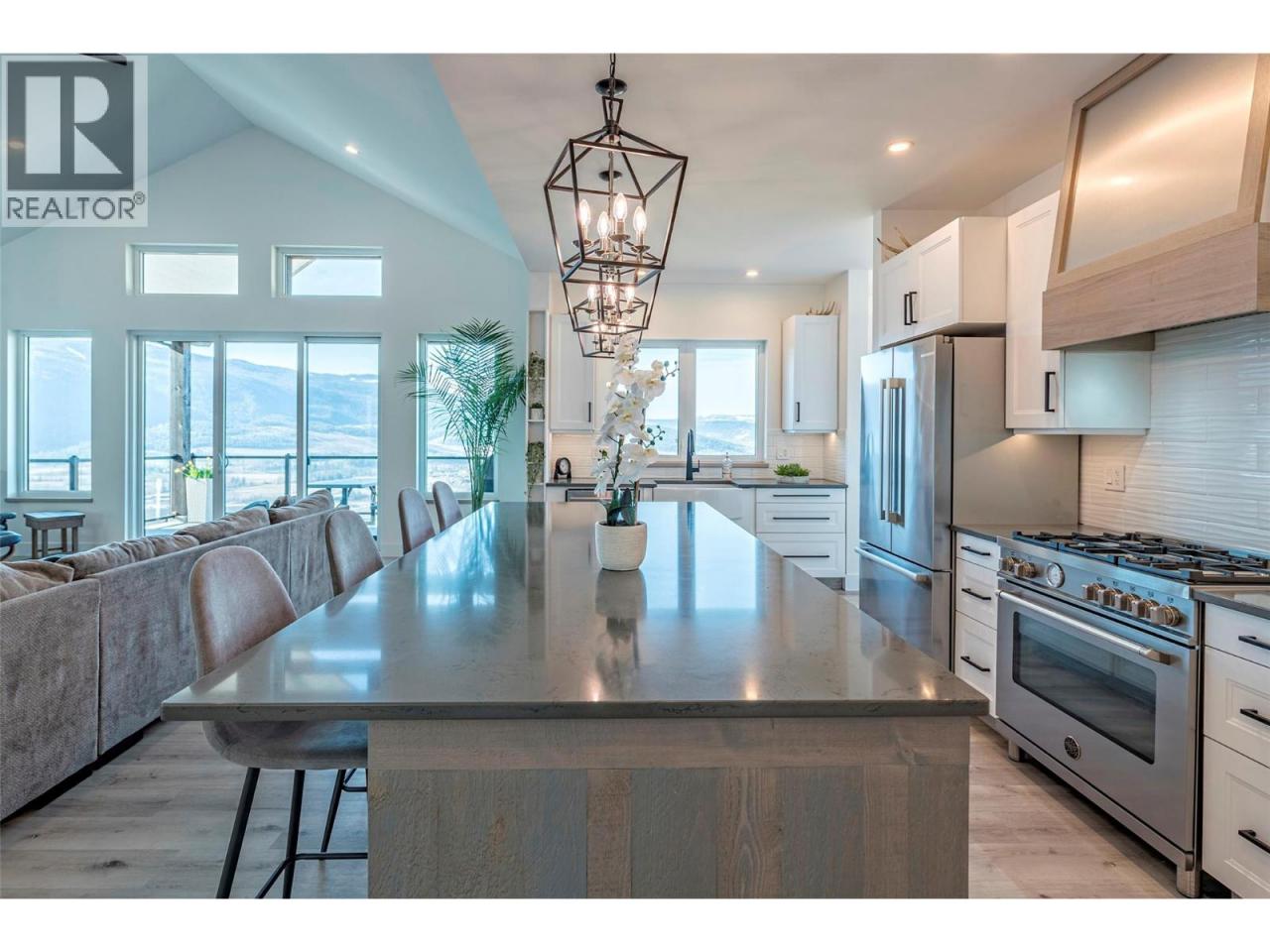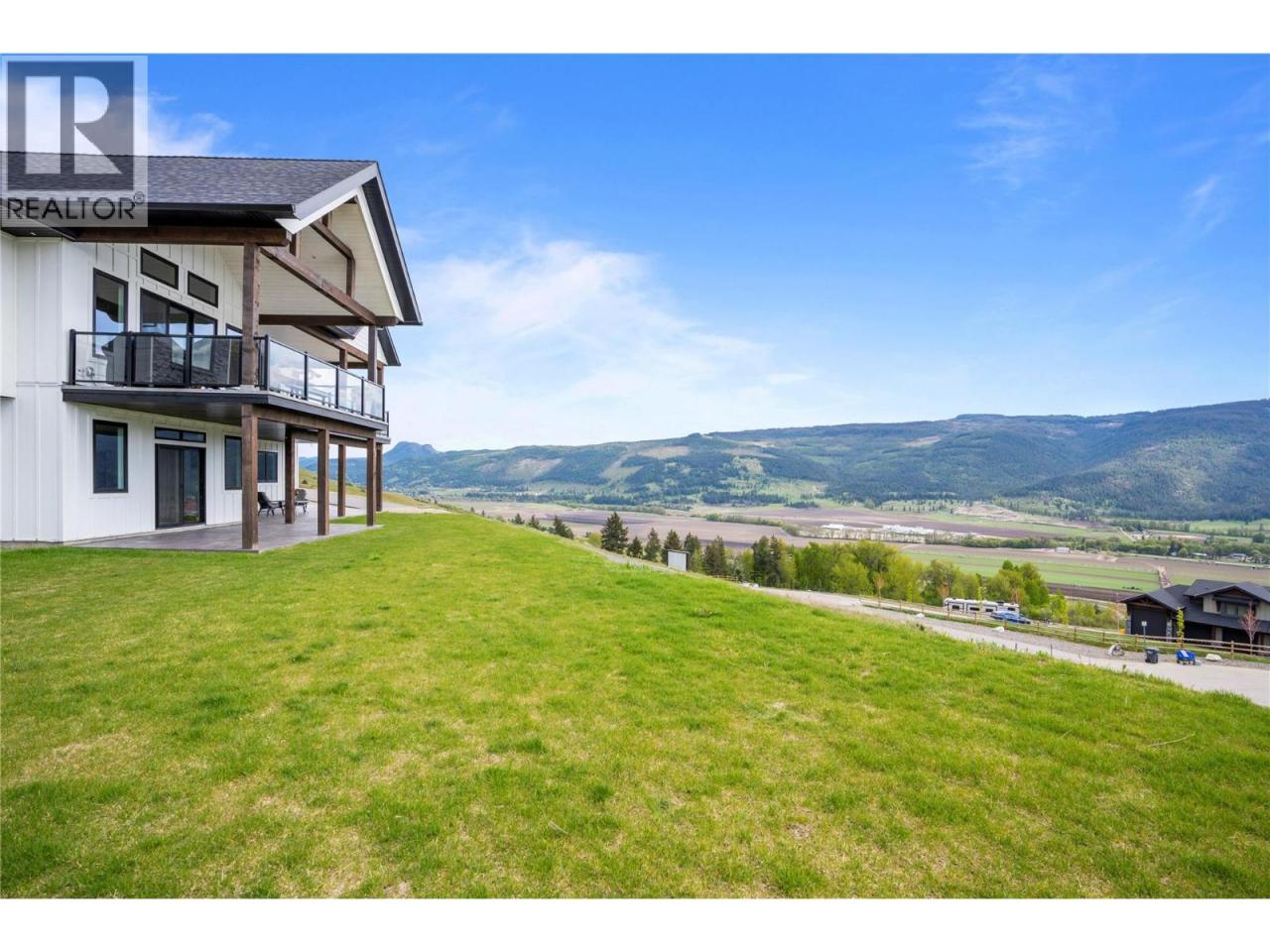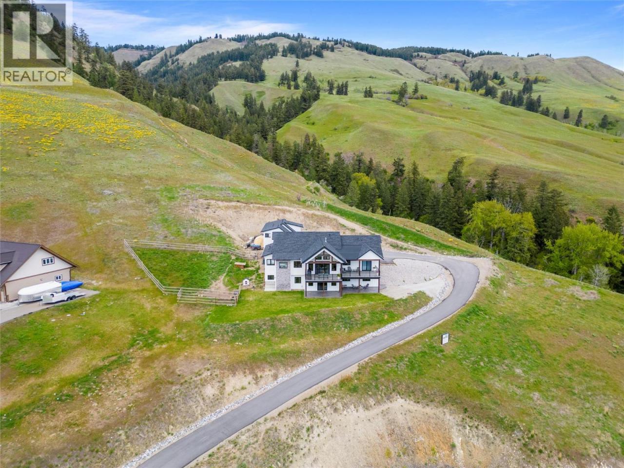Step into your dream retreat nestled in the Coldstream Valley, where modern elegance meets nature's splendor. This breathtaking estate sprawls over 7 lush acres, bordered by crown land, promising unparalleled views of the verdant valley and Kalamalka Lake. At the heart of this oasis is a stunning residence, designed with an entertainer's dream in mind. The open-concept living space is adorned with quartz countertops, a high-end Bertazzoni gas stove, and a chic sunken sink that overlooks the landscape. Start your mornings in the quaint breakfast nook, soaking in the panoramic beauty that surrounds you. The living room, with its vaulted ceilings and expansive windows, frames the valley vistas, all warmed by the glow of a natural gas fireplace. Retreat to the luxurious primary suite, boasting dual walk-in closets and an opulent ensuite with a freestanding tub for those moments of blissful solitude. Venture through the west wing to discover a formal dining area, spacious bedrooms, a full bath, and a well-appointed pantry, leading to a triple bay garage. The journey continues downstairs to a fully finished basement, where entertainment and relaxation converge, featuring a cozy wet bar and direct access to a scenic stamped concrete patio. Above the garage lies a charming carriage house, offering a 2 bdrm, 1 bath private living space, perfect for guests or as a potential rental opportunity. Priced nearly $200,000 below assessed value! (id:6769)