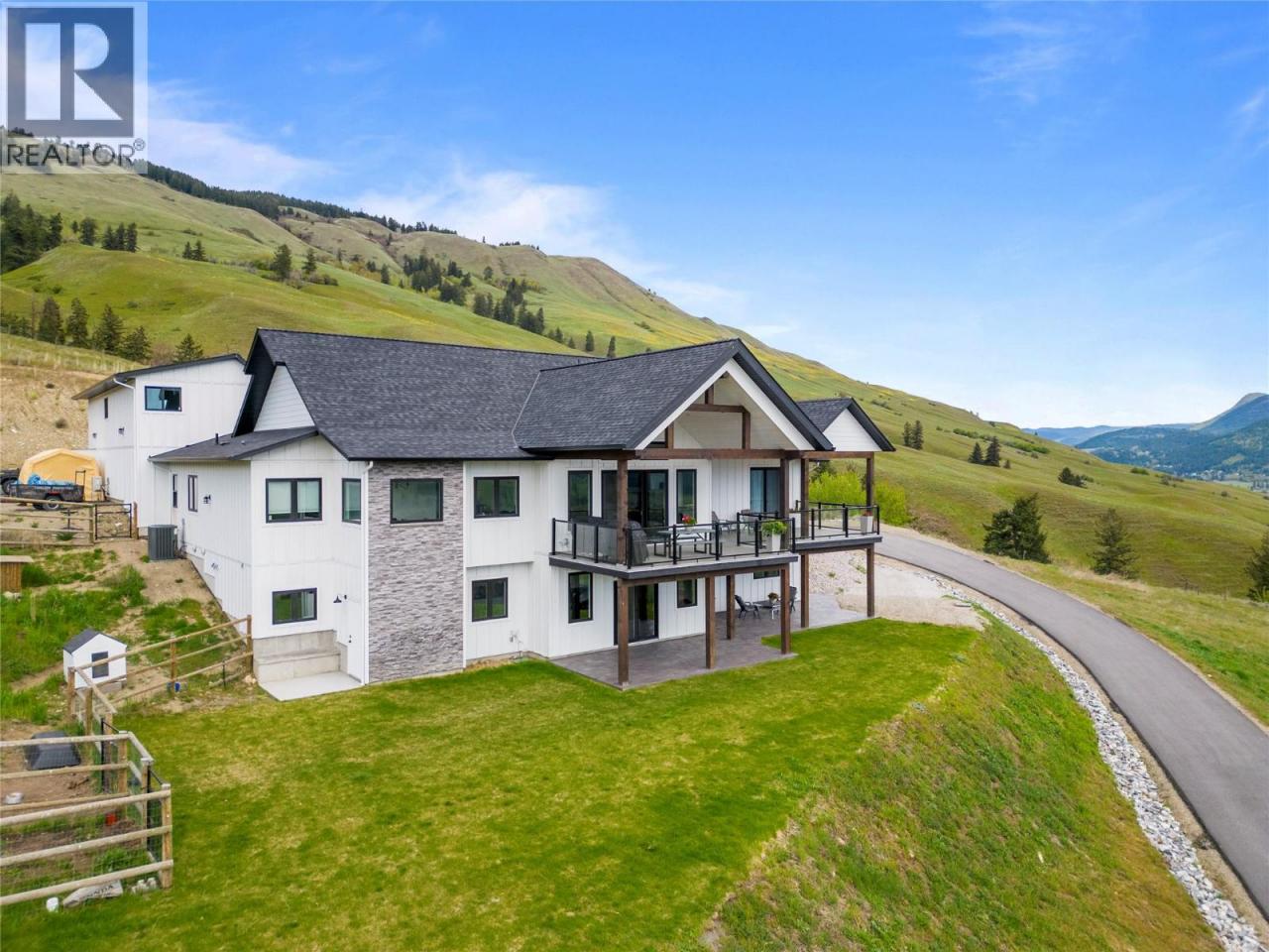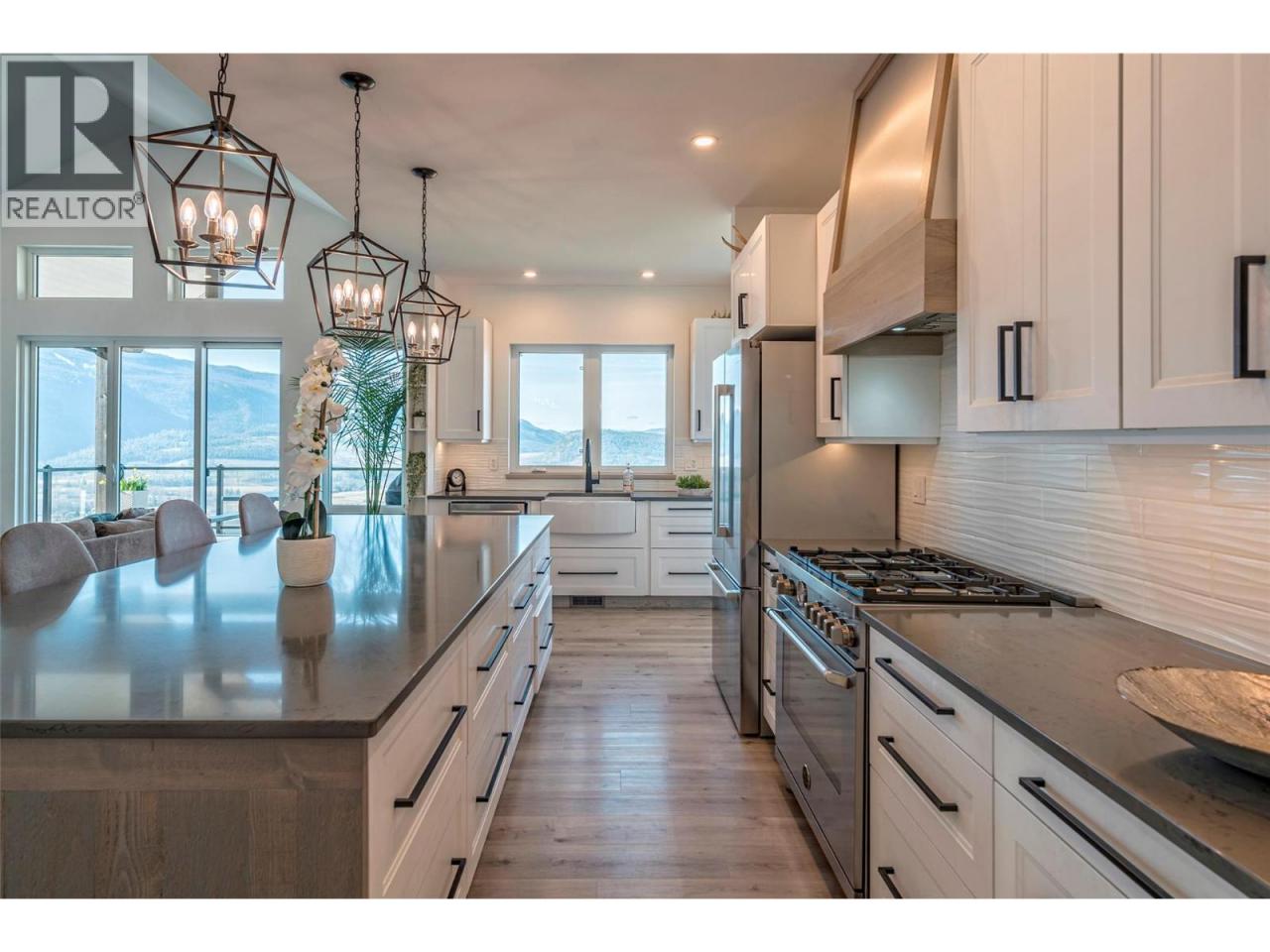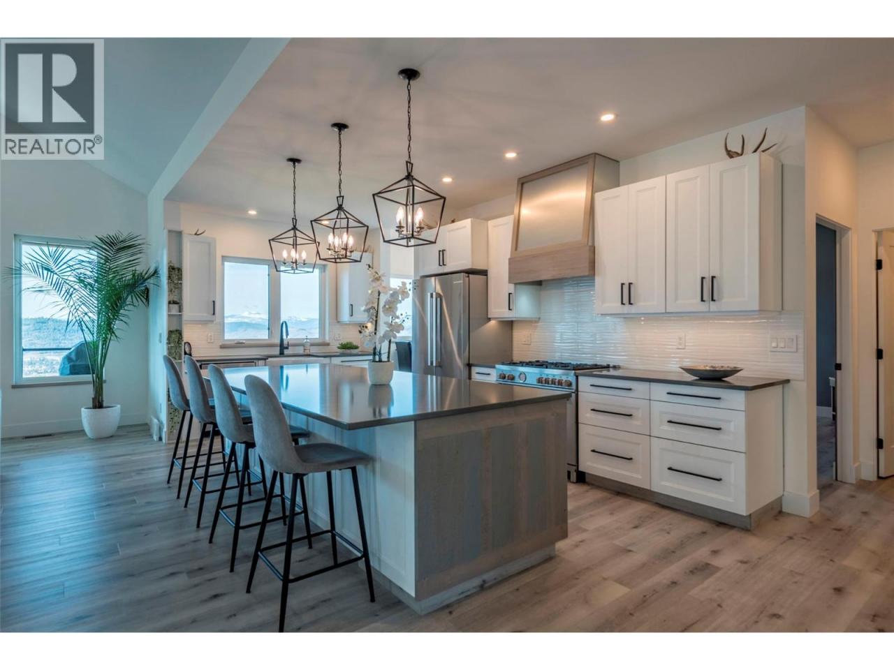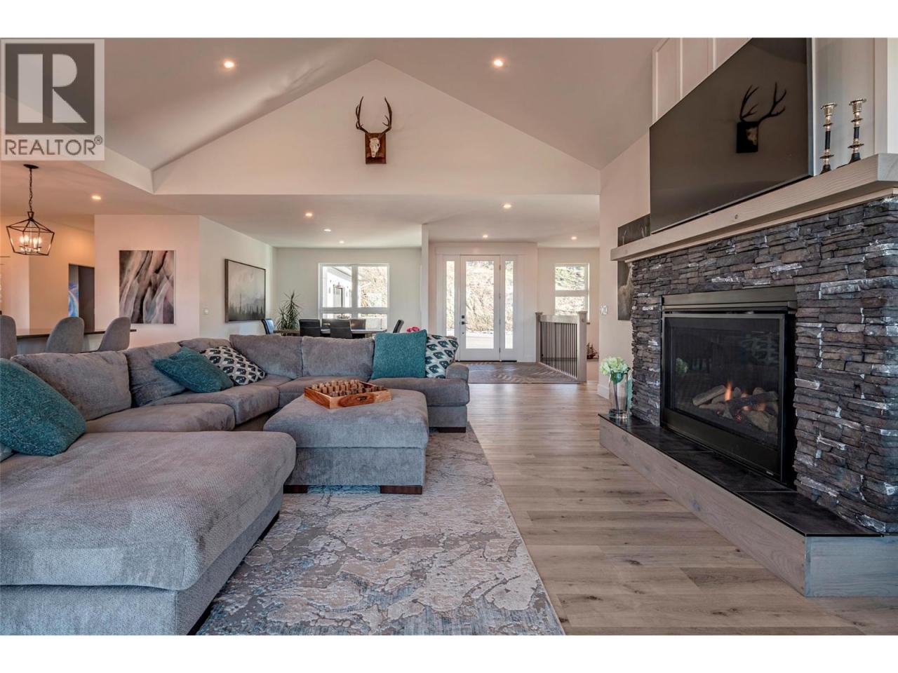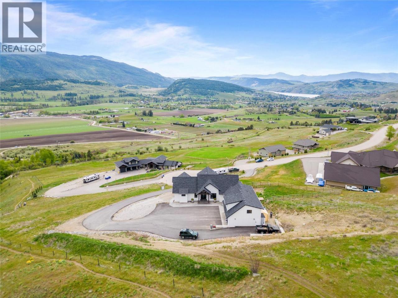 Step into your dream retreat nestled in the Coldstream Valley, where modern elegance meets nature's splendor. This breathtaking estate sprawls over 7 lush acres, bordered by crown land, promising unparalleled views of the verdant valley and Kalamalka Lake. At the heart of this oasis is a stunning residence, designed with an entertainer's dream in mind. The open-concept living space is adorned with quartz countertops, a high-end Bertazzoni gas stove, and a chic sunken sink that overlooks the landscape. Start your mornings in the quaint breakfast nook, soaking in the panoramic beauty that surrounds you. The living room, with its vaulted ceilings and expansive windows, frames the valley vistas, all warmed by the glow of a natural gas fireplace. Retreat to the luxurious primary suite, boasting dual walk-in closets and an opulent ensuite with a freestanding tub for those moments of blissful solitude. Venture through the west wing to discover a formal dining area, spacious bedrooms, a full bath, and a well-appointed pantry, leading to a triple bay garage. The journey continues downstairs to a fully finished basement, where entertainment and relaxation converge, featuring a cozy wet bar and direct access to a scenic stamped concrete patio. Above the garage lies a charming carriage house, offering a 2 bdrm, 1 bath private living space, perfect for guests or as a potential rental opportunity. Priced nearly $200,000 below assessed value! (id:6769)