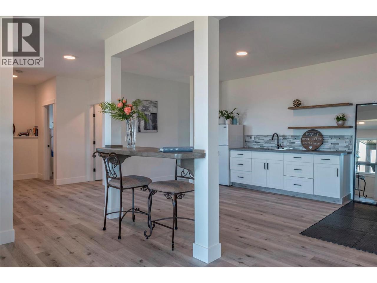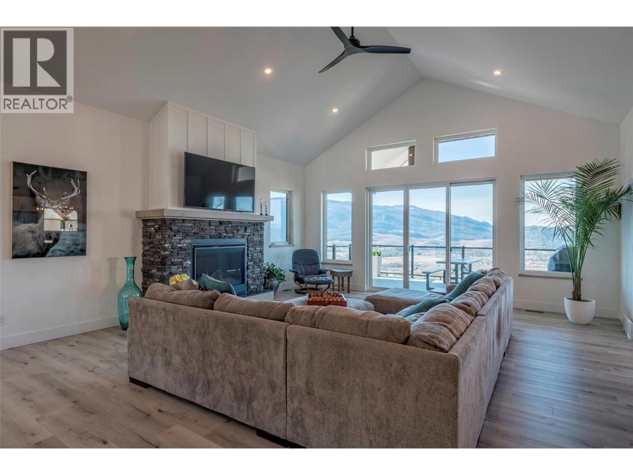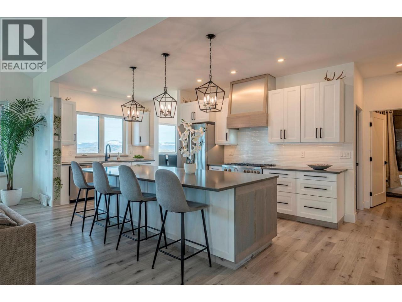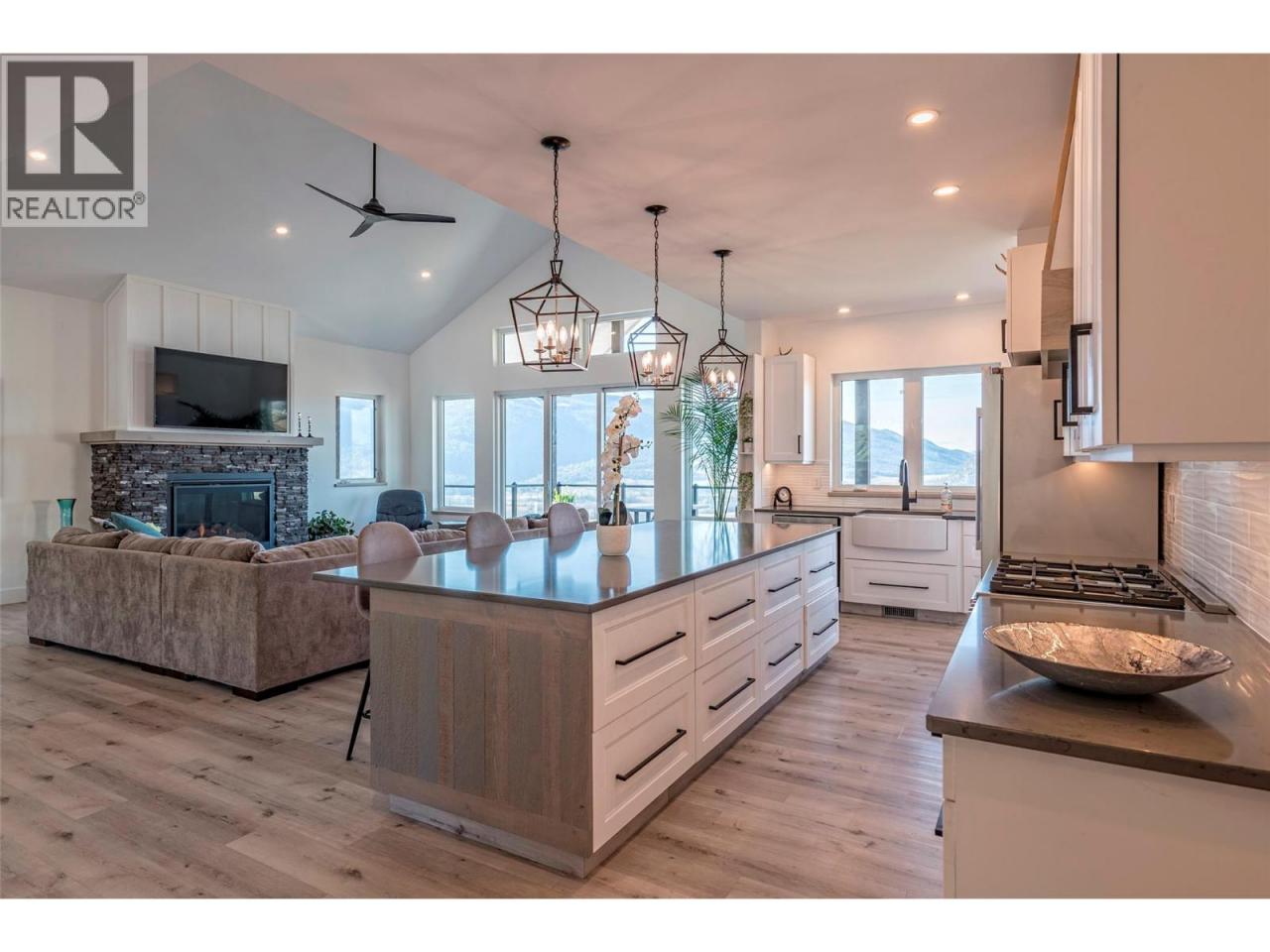 Step into your dream retreat nestled in the Coldstream Valley, where modern elegance meets nature's splendor. This breathtaking estate sprawls over 7 lush acres, bordered by crown land, promising unparalleled views of the verdant valley and Kalamalka Lake. At the heart of this oasis is a stunning residence, designed with an entertainer's dream in mind. The open-concept living space is adorned with quartz countertops, a high-end Bertazzoni gas stove, and a chic sunken sink that overlooks the landscape. Start your mornings in the quaint breakfast nook, soaking in the panoramic beauty that surrounds you. The living room, with its vaulted ceilings and expansive windows, frames the valley vistas, all warmed by the glow of a natural gas fireplace. Retreat to the luxurious primary suite, boasting dual walk-in closets and an opulent ensuite with a freestanding tub for those moments of blissful solitude. Venture through the west wing to discover a formal dining area, spacious bedrooms, a full bath, and a well-appointed pantry, leading to a triple bay garage. The journey continues downstairs to a fully finished basement, where entertainment and relaxation converge, featuring a cozy wet bar and direct access to a scenic stamped concrete patio. Above the garage lies a charming carriage house, offering a 2 bdrm, 1 bath private living space, perfect for guests or as a potential rental opportunity. Priced nearly $200,000 below assessed value! (id:6769)