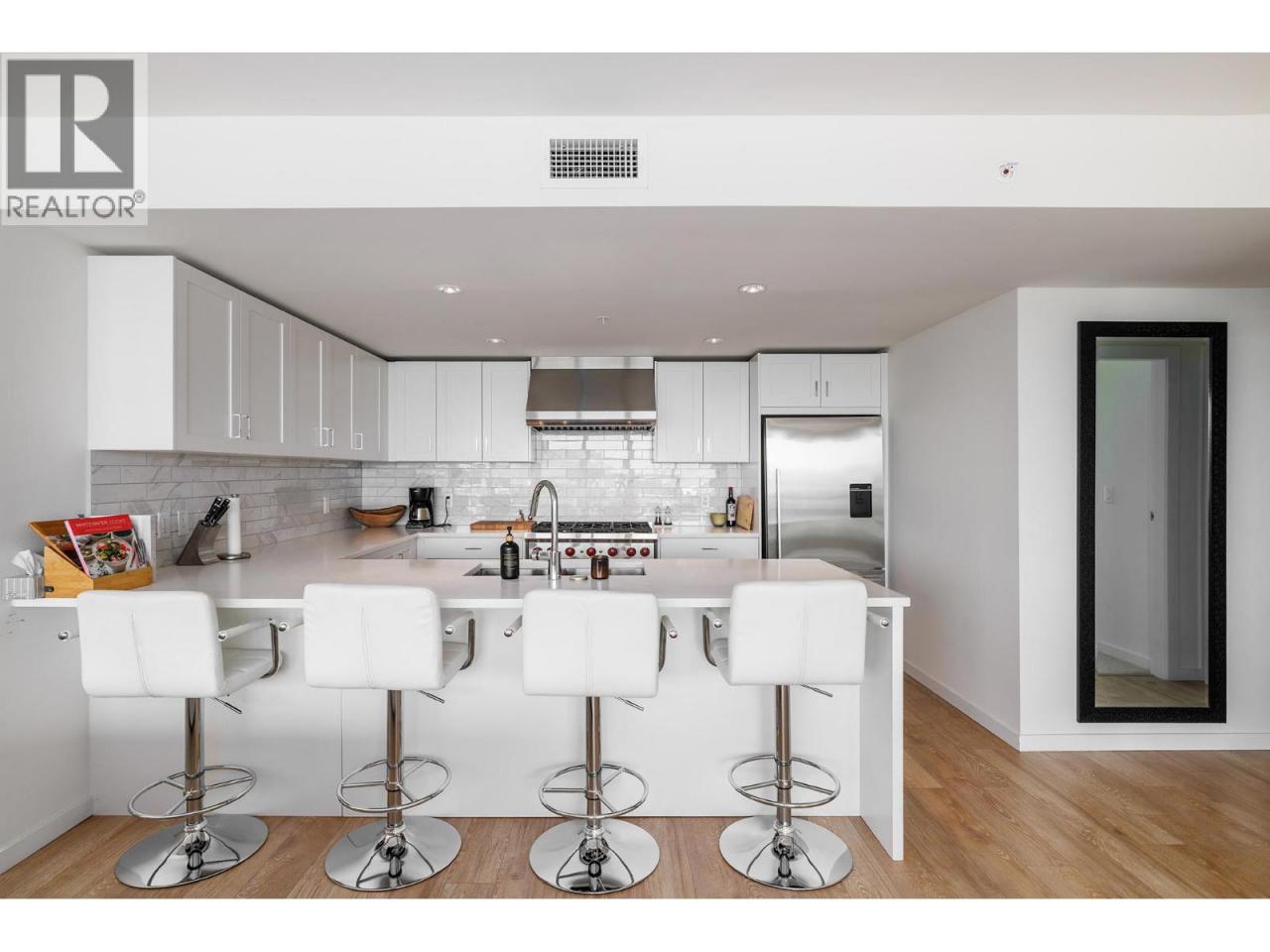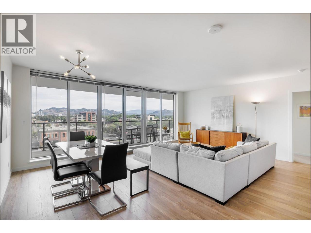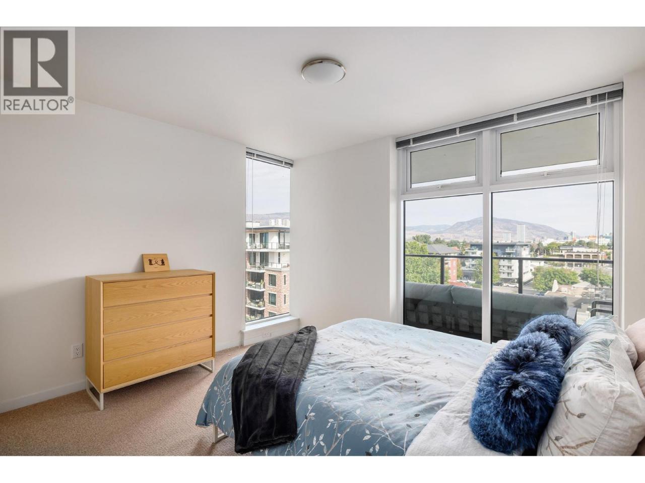 Experience modern living just steps from Okanagan Lake in this 2 bedroom + den condo at SOPA Square, set in the heart of vibrant Pandosy Village. With lake, city, and mountain views, this residence blends contemporary design with thoughtful upgrades for an elevated lifestyle. The gourmet kitchen is equipped with granite countertops, soft-close cabinetry, Wolf gas range, Fisher & Paykel appliances, and a breakfast peninsula with seating for four. The open-concept living and dining area features engineered hardwood, a wall of windows, and seamless access to the expansive covered deck ideal for entertaining against a beautiful scenic backdrop. A den just off the main living area offers flexibility as an office or media space. The primary suite is a private retreat with mountain and lake views, a walk-through closet, and a spa-inspired ensuite with double vanity, soaker tub, and tiled glass shower. A second bedroom with it's own walk-through closet and ensuite is perfect for guests. Resort-style amenities include an outdoor pool, hot tub, fitness centre, and a sun-soaked terrace. With designer finishes, custom touches throughout, and one of the most desirable locations in Kelowna, this home offers both sophistication and convenience. (id:6769)