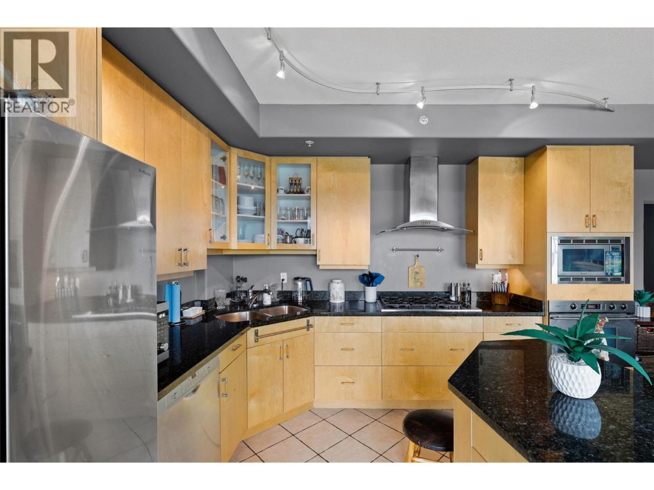 Perched on the 9th floor of the sought-after Victoria Landing, this spacious 2-bedroom, 2-bathroom condo offers stunning north-facing views and two private decks to take it all in. Located in the heart of downtown, you’re just steps from shops, restaurants, transit, and everything the city has to offer. Inside, you'll find a thoughtfully designed layout with an intimate-style dining room and a cozy living area featuring a gas fireplace and custom built-in shelving. The kitchen is both stylish and functional, with granite countertops, an undermount sink, and stainless steel appliances—perfect for cooking or entertaining. The primary bedroom includes built-in cabinetry in the closet, offering sleek and practical storage. A second bedroom and full bathroom provide flexibility for guests or a home office setup. Enjoy the convenience of secure underground parking. With comfortable living spaces, modern finishes, and unbeatable access to downtown amenities, this home is the perfect blend of lifestyle and location. All meas are approx, buyer to confirm if important. (id:6769)