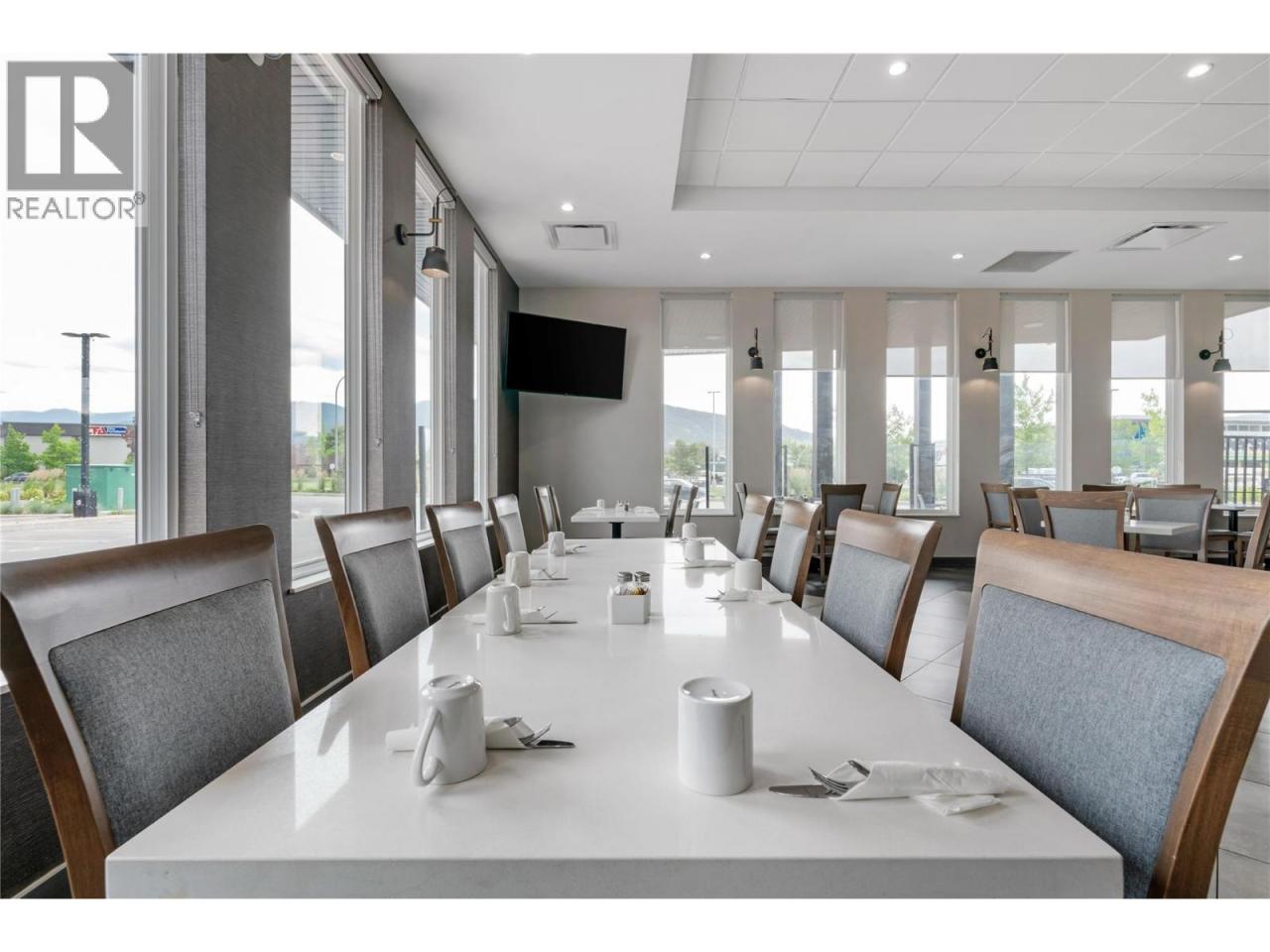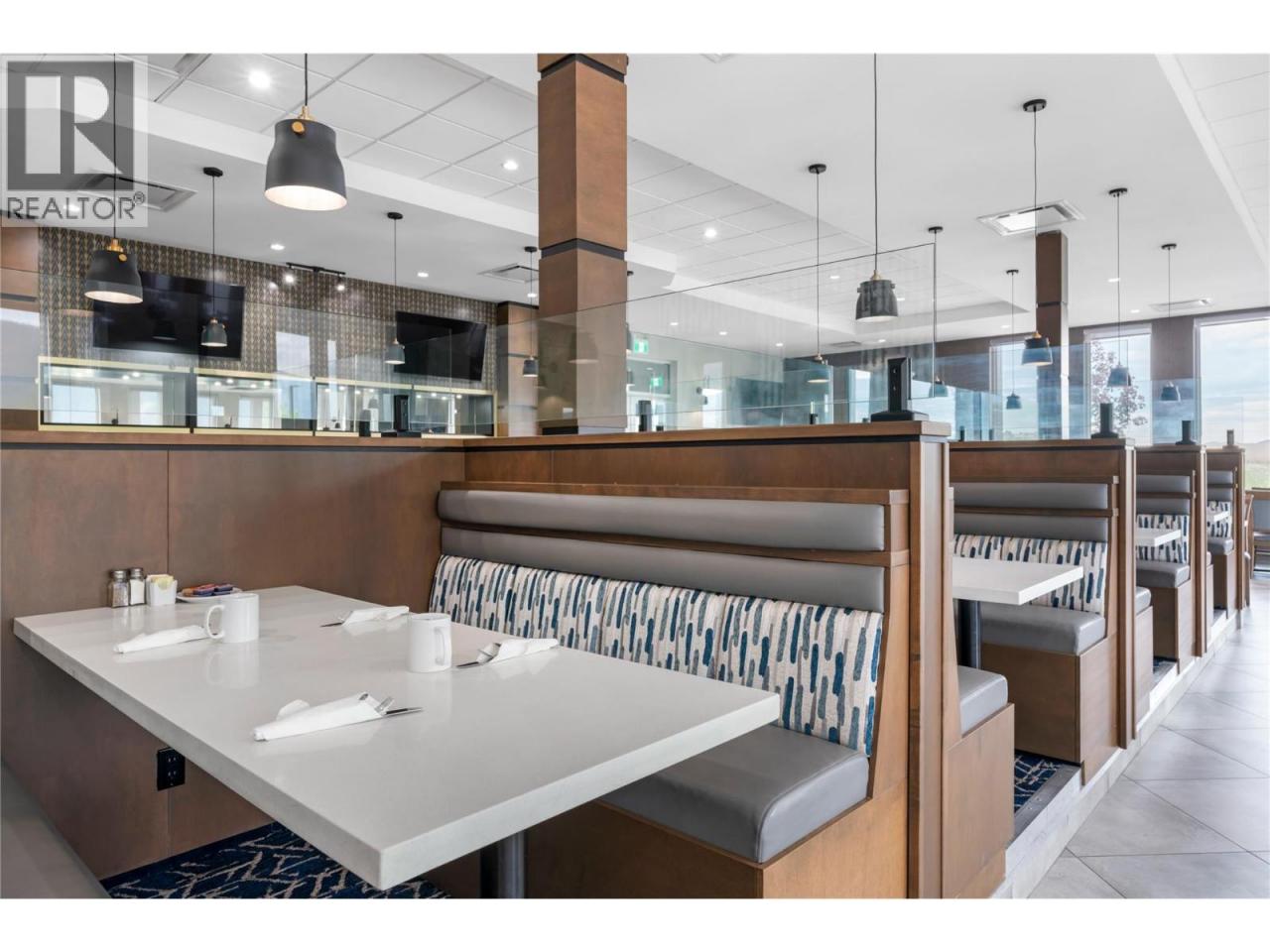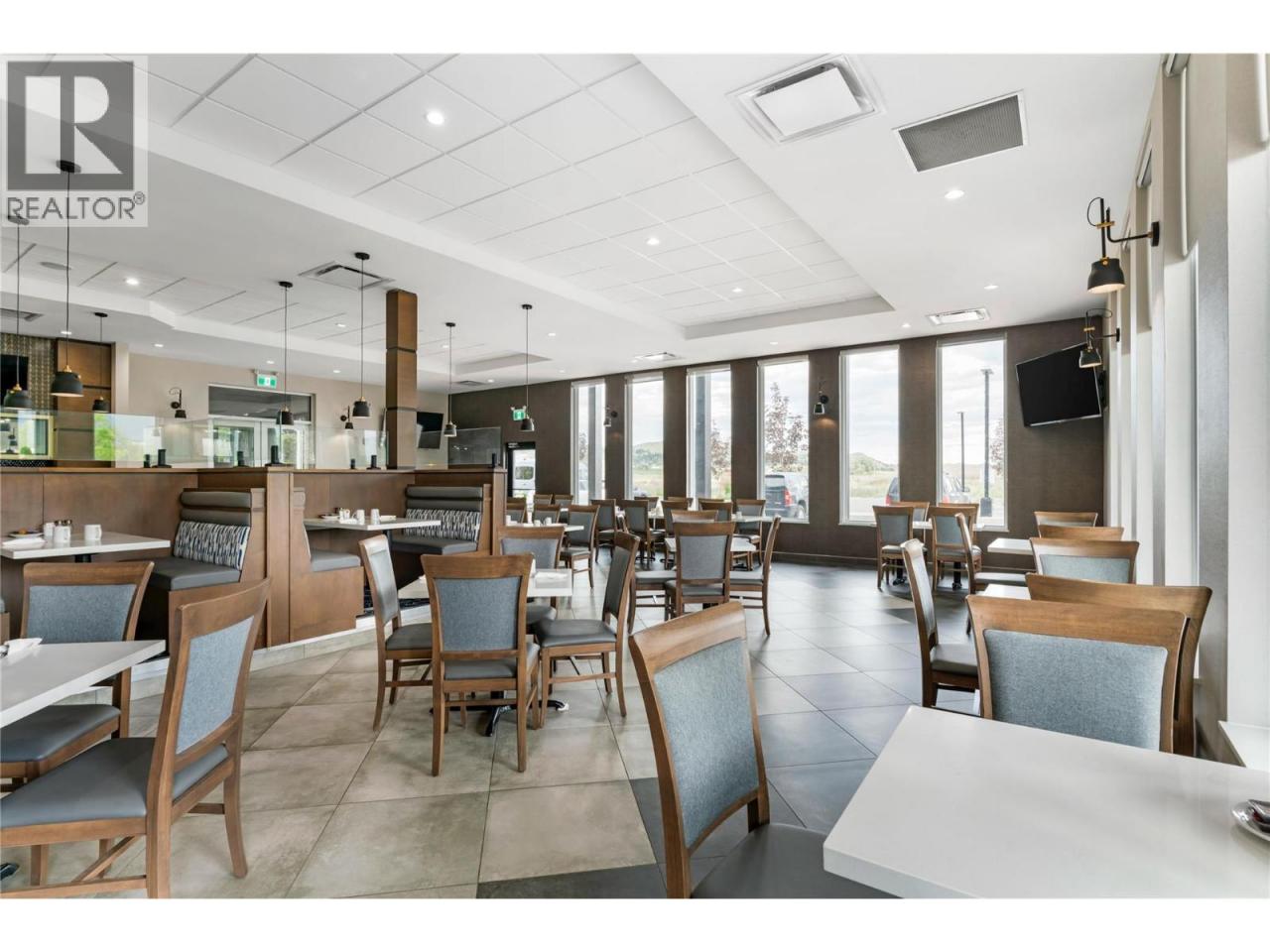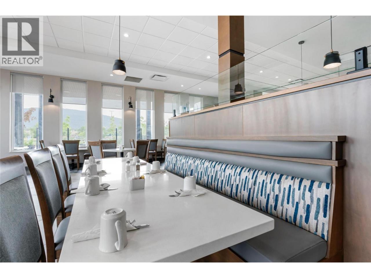 This exceptional restaurant space, located within a newly constructed luxury hotel in Vernon, offers 4876 sq. ft. of fully equipped space, ideal for a variety of dining and event services. The space includes a 96-seat dining area, two bars, and a 1,500 sq. ft. commercial kitchen featuring a walk-in cooler, freezer, and oven. Additionally, the property boasts a 300-seat banquet hall with a separate bar and three sets of washrooms, a meeting room, a private dining area with 20 seats, and a covered patio with seating for 40. The restaurant benefits from high visibility and significant public exposure, providing an excellent opportunity for operators to capitalize on both casual dining and event catering. With one year of operation and immediate occupancy available, the space is turn-key and ready for use. There is also potential for collaboration with the hotel for banquet and meeting room services, subject to discussions with the hotel sales manager. This is a unique leasing opportunity in a high-traffic, high-visibility location. All appointments must be done through the listing realtor. All measurements are approximate and buyers to verify all the information if deemed important. (id:6769)