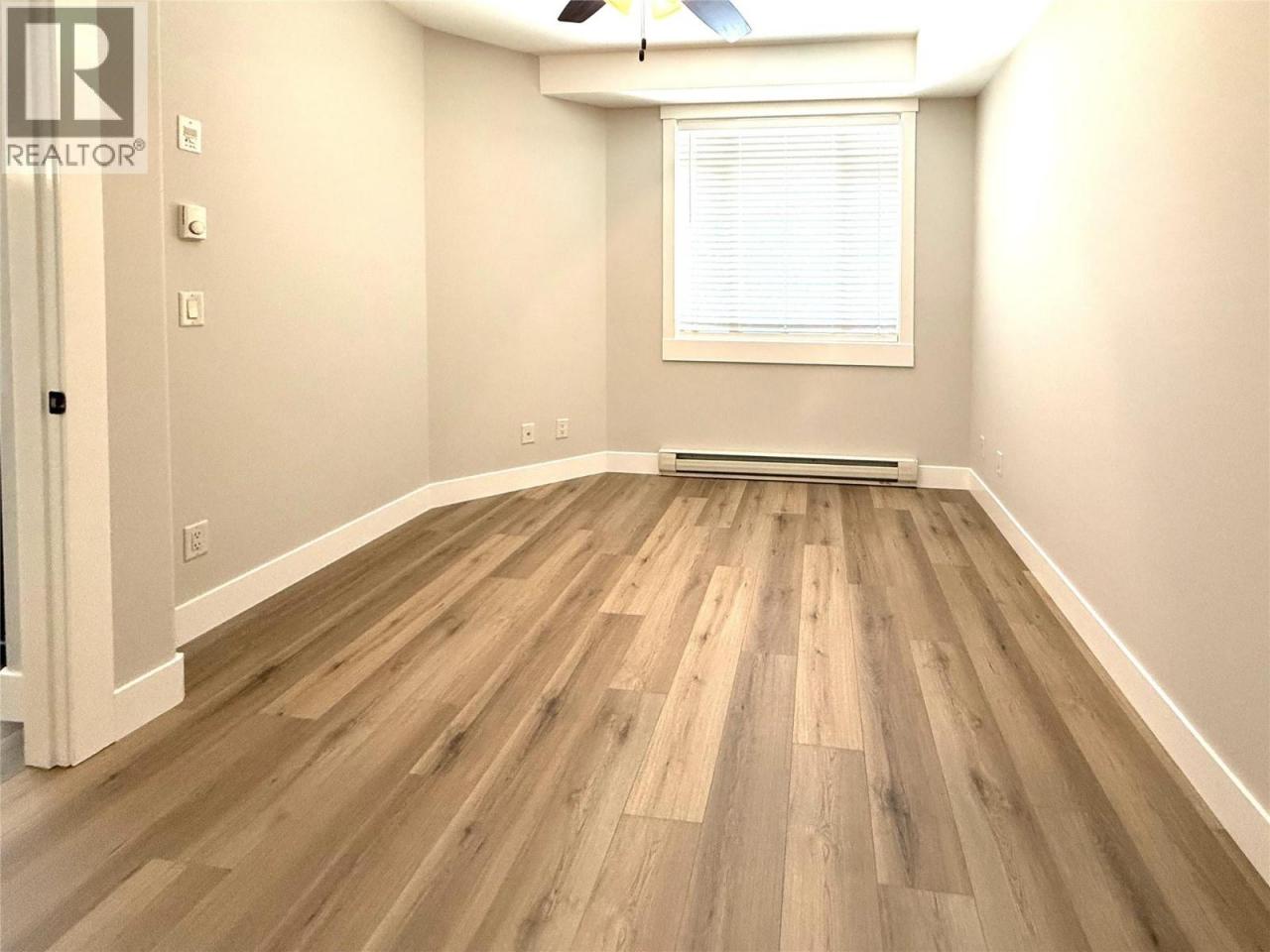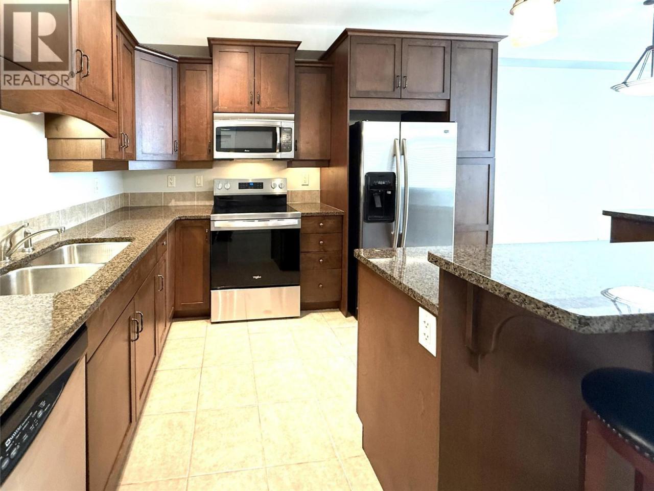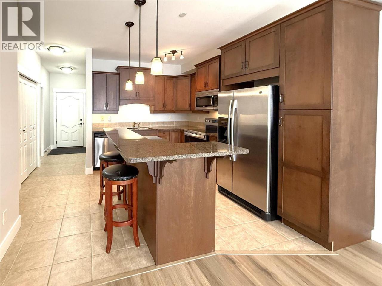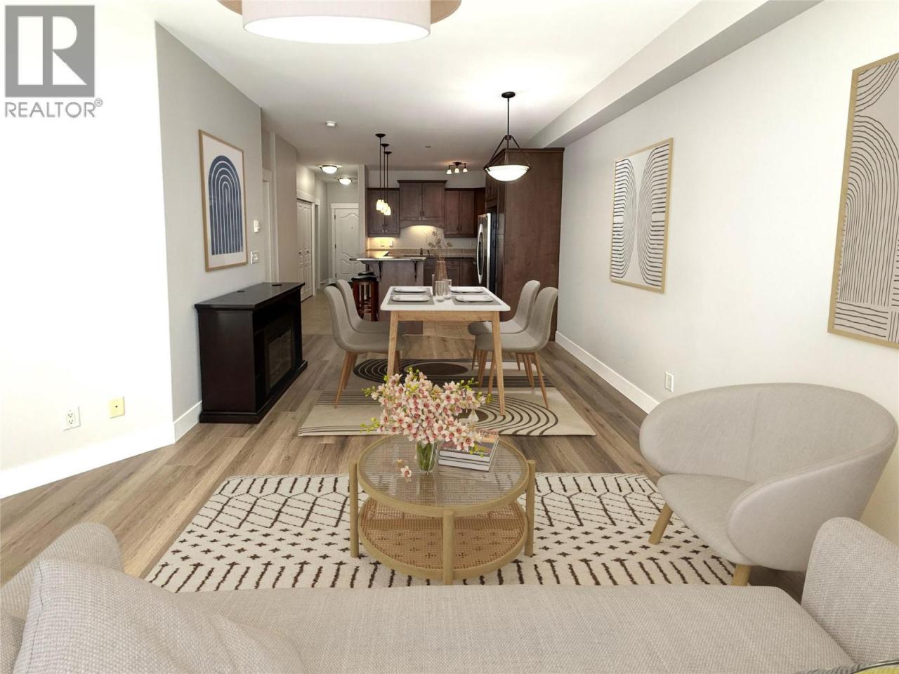 Skip the High Rent - Own Your Own Place Near Campus! Why rent when you can invest in yourself? This totally renovated 1-bedroom + den apartment is move-in ready and just a short walk to the university, shops, and all amenities. Fresh & Modern: New laminate floors, fresh paint, brand-new stove, new blinds, and a classy bathroom with tub + separate shower. Smart Layout: Spacious living room with cozy electric fireplace and wall A/C, opening to a covered deck backing onto peaceful green space - perfect for study breaks. Entertainer’s Kitchen: Granite island with raised bar (bar stools included), stainless steel appliances, and extra pantry storage. Convenience Built In: In-suite laundry, mirrored closets, underground parking (#A1), and private storage room (#2). Bonus Den: Ideal home office or study space. This home gives you comfort, independence, and the freedom to stop throwing money away on rent with quick possession available. Some rooms virtually staged. (id:6769)