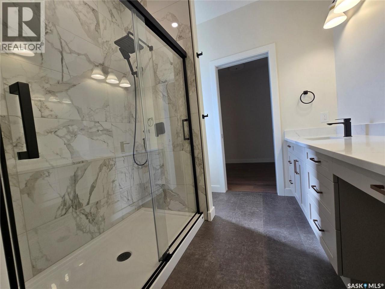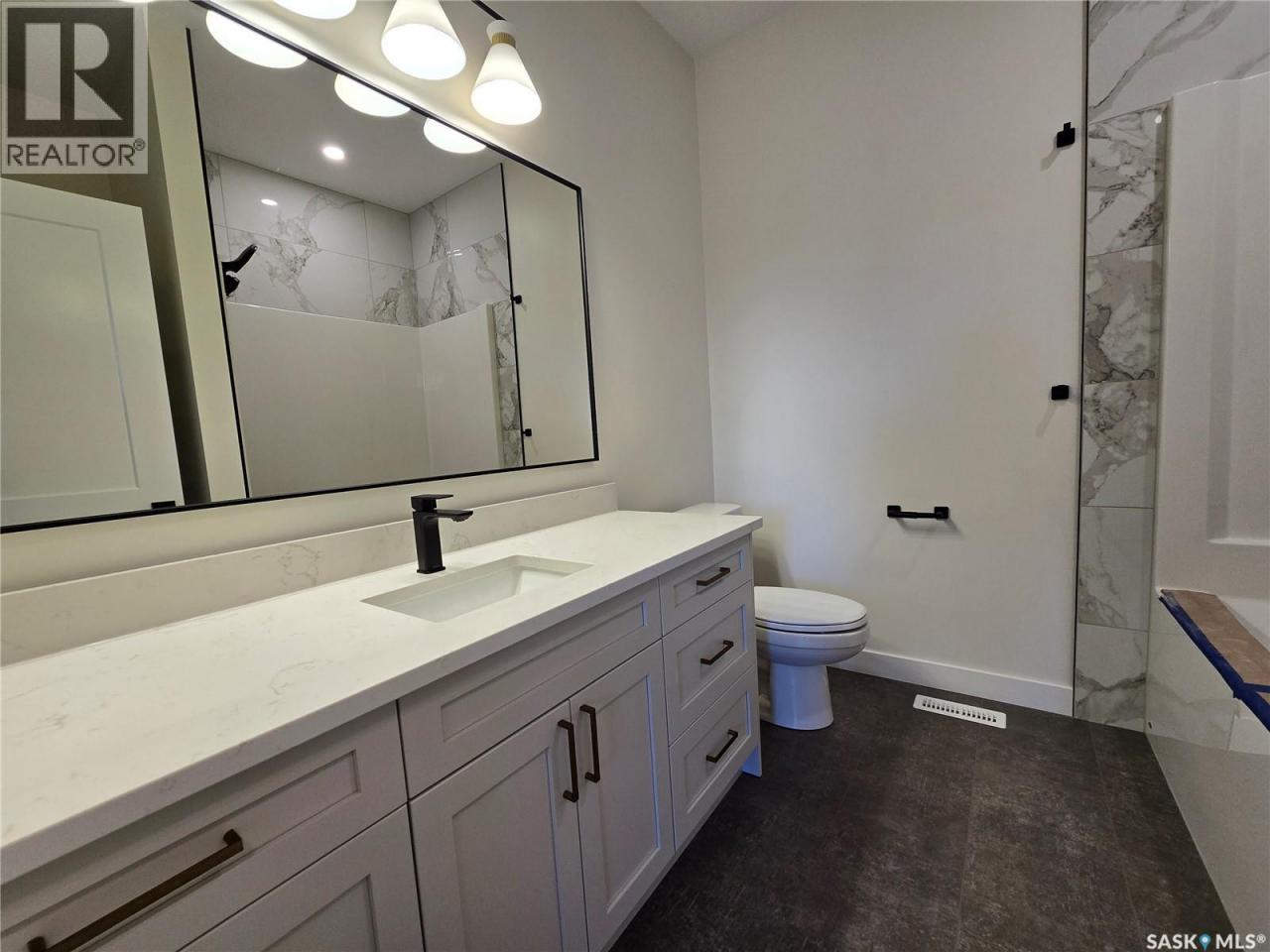 Welcome to this stunning brand new two-story home, thoughtfully designed for modern living and effortless comfort. Step inside to discover an open and inviting main floor with a wall of windows that’s screams elegance. The chef’s kitchen boasts sleek finishes, quality cabinetry, and seamless flow into the dining area and living room, perfect for entertaining or relaxed family evenings. Cozy up by the fireplace or step outside to the covered deck, ideal for year-round outdoor living. There is a spacious primary suite, offering privacy and convenience with a luxurious En-suite, massive walk-in closet, and access to the main floor laundry. The main level also includes a stylish powder room for guests. Upstairs, you'll find two generously sized bedrooms, both with walk-in closets and a full bath, offering a private space for family or guests. The unfinished basement provides endless potential—create a home gym, media room, or additional living space to suit your needs. The basement is also set up to accommodate two more bedrooms, a bathroom, and lots of storage. There is also an amazing heated triple car garage. This new home comes with 1 year New Home warranty, and a 3 year tax exemption from the City of Weyburn that is transferable to the buyer. This home blends functional layout with modern elegance and is ready to welcome you home. Don’t miss your chance to make it yours! (id:6769)