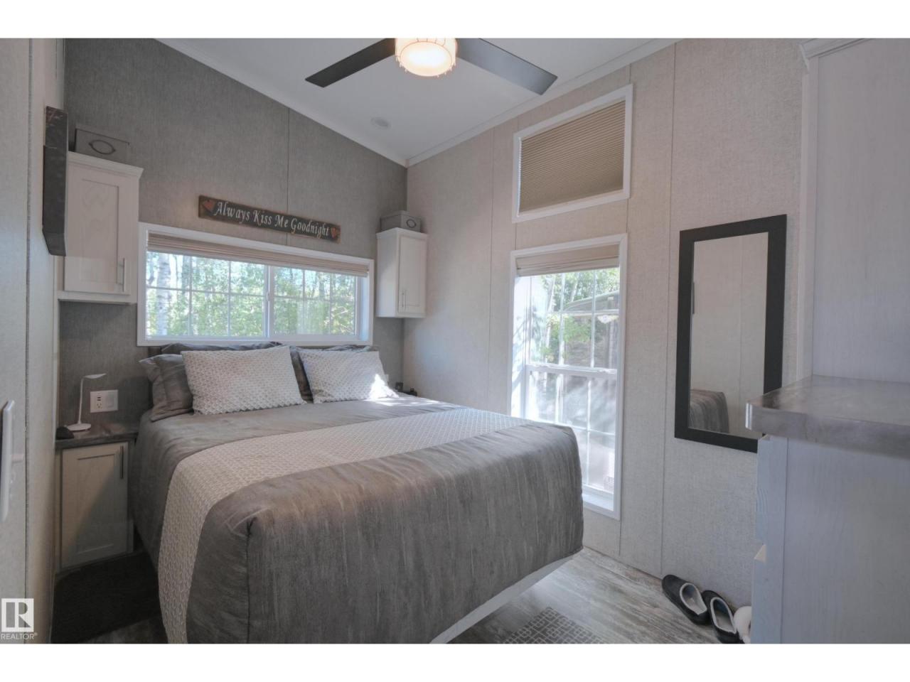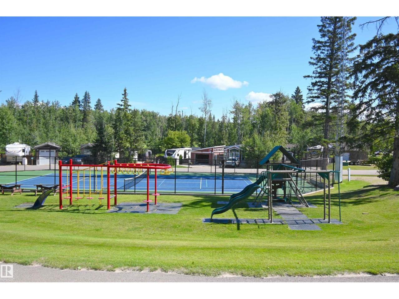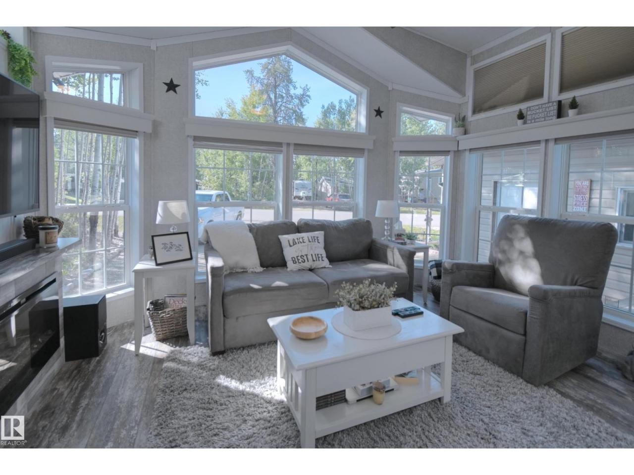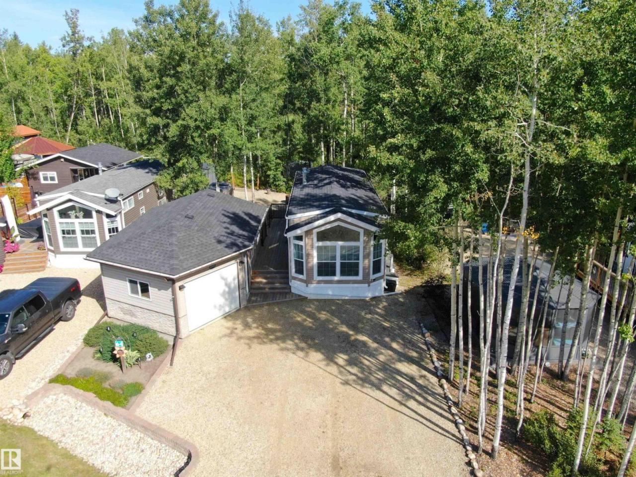 A Weekend Getaway, or a 4-Seasons Peaceful Lifestyle!! This 2-bed park model backs the trees in the Pineridge Golf Course & RV Resort. A bright, sunny kitchen offers an island and tons of cabinets, and huge windows give the living room a beautiful view. Custom cabinets provide the primary with extra storage, and the 2nd bed has bunk beds and a large wardrobe. ALL OF THE FURNITURE IS INCLUDED! The 3-pc bath has a large walk-in shower. Two rooms in the double garage create an opportunity for future bedrooms, a summer kitchen, or to store your toys. A large deck, a gazebo, a fire pit and central air ensure you enjoy every minute. There is so much to do in this gated community! Enjoy the clubhouse, pickleball and basketball courts, playground and trails, Wi-Fi, 50 amp power, full service septic, shower/washroom and laundry facilities, and the 12 hole Pineridge Golf Course. Just a short walk to Wabamun lake, and Seba Beach is minutes away. Trade in your RV for a year-round paradise! 45 min West of Edmonton. (id:6769)