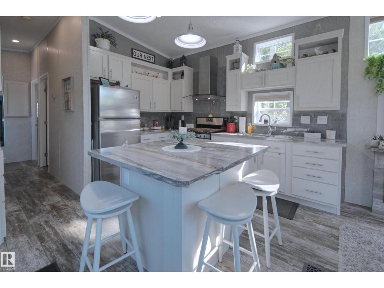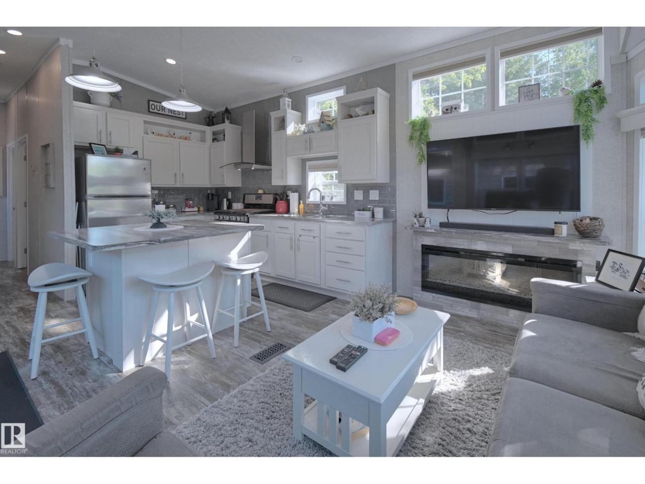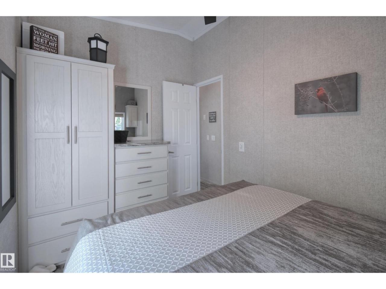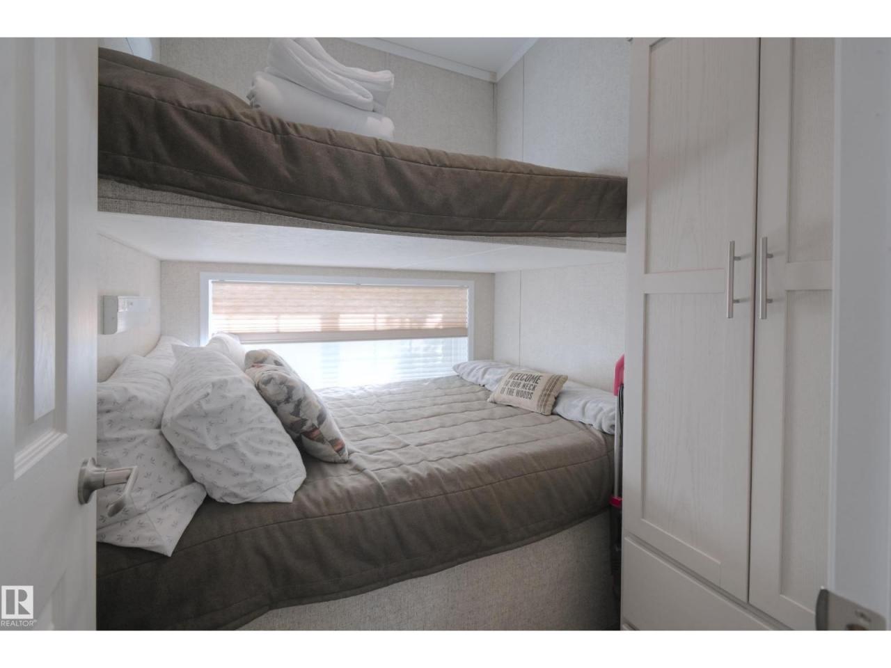 A Weekend Getaway, or a 4-Seasons Peaceful Lifestyle!! This 2-bed park model backs the trees in the Pineridge Golf Course & RV Resort. A bright, sunny kitchen offers an island and tons of cabinets, and huge windows give the living room a beautiful view. Custom cabinets provide the primary with extra storage, and the 2nd bed has bunk beds and a large wardrobe. ALL OF THE FURNITURE IS INCLUDED! The 3-pc bath has a large walk-in shower. Two rooms in the double garage create an opportunity for future bedrooms, a summer kitchen, or to store your toys. A large deck, a gazebo, a fire pit and central air ensure you enjoy every minute. There is so much to do in this gated community! Enjoy the clubhouse, pickleball and basketball courts, playground and trails, Wi-Fi, 50 amp power, full service septic, shower/washroom and laundry facilities, and the 12 hole Pineridge Golf Course. Just a short walk to Wabamun lake, and Seba Beach is minutes away. Trade in your RV for a year-round paradise! 45 min West of Edmonton. (id:6769)