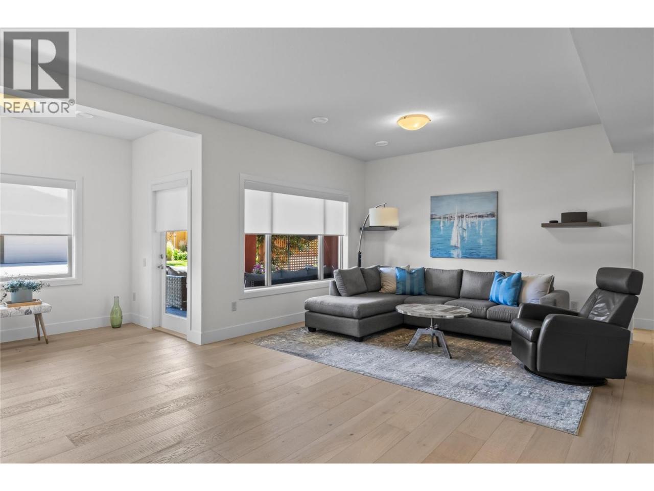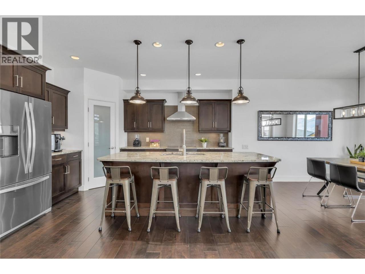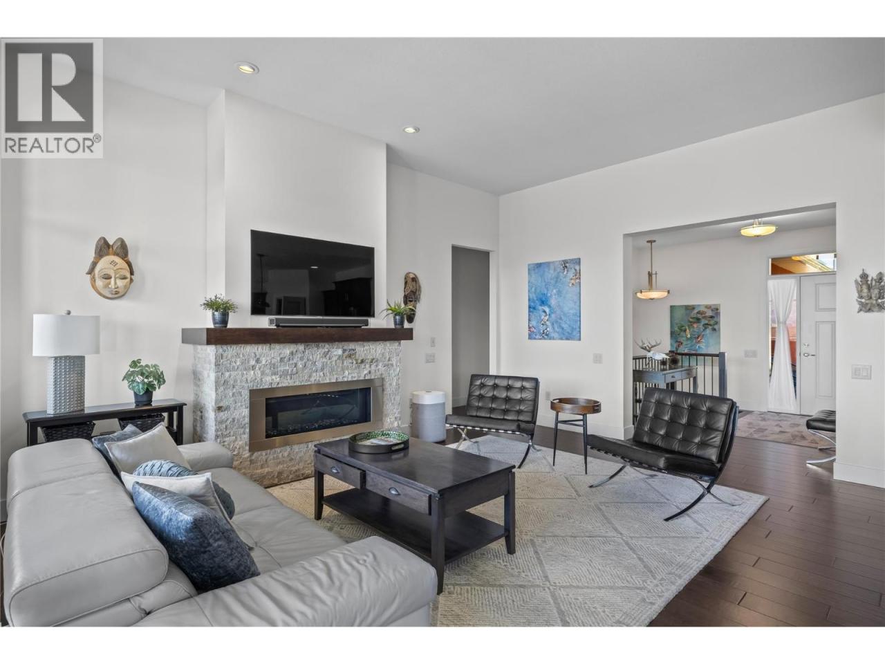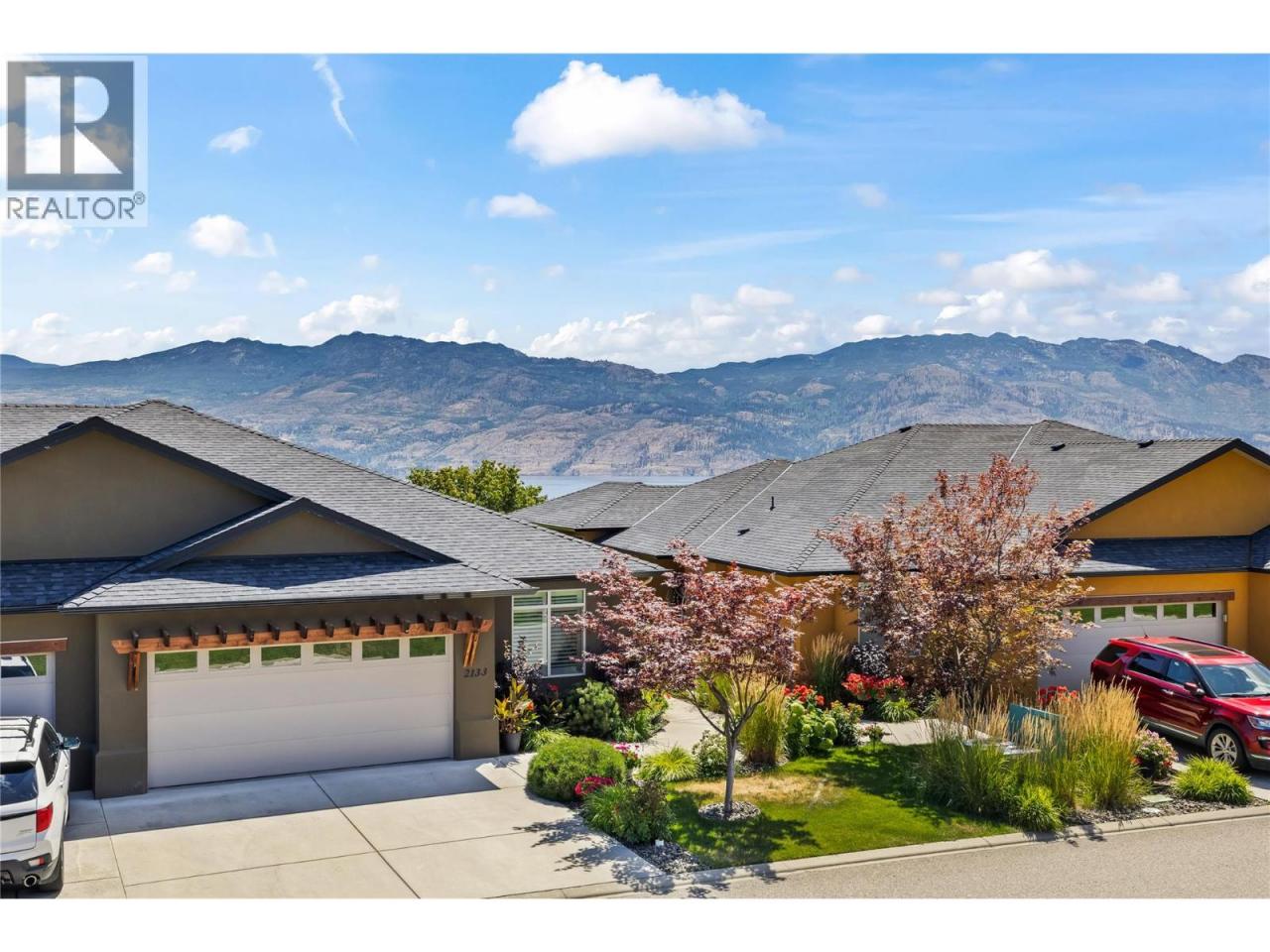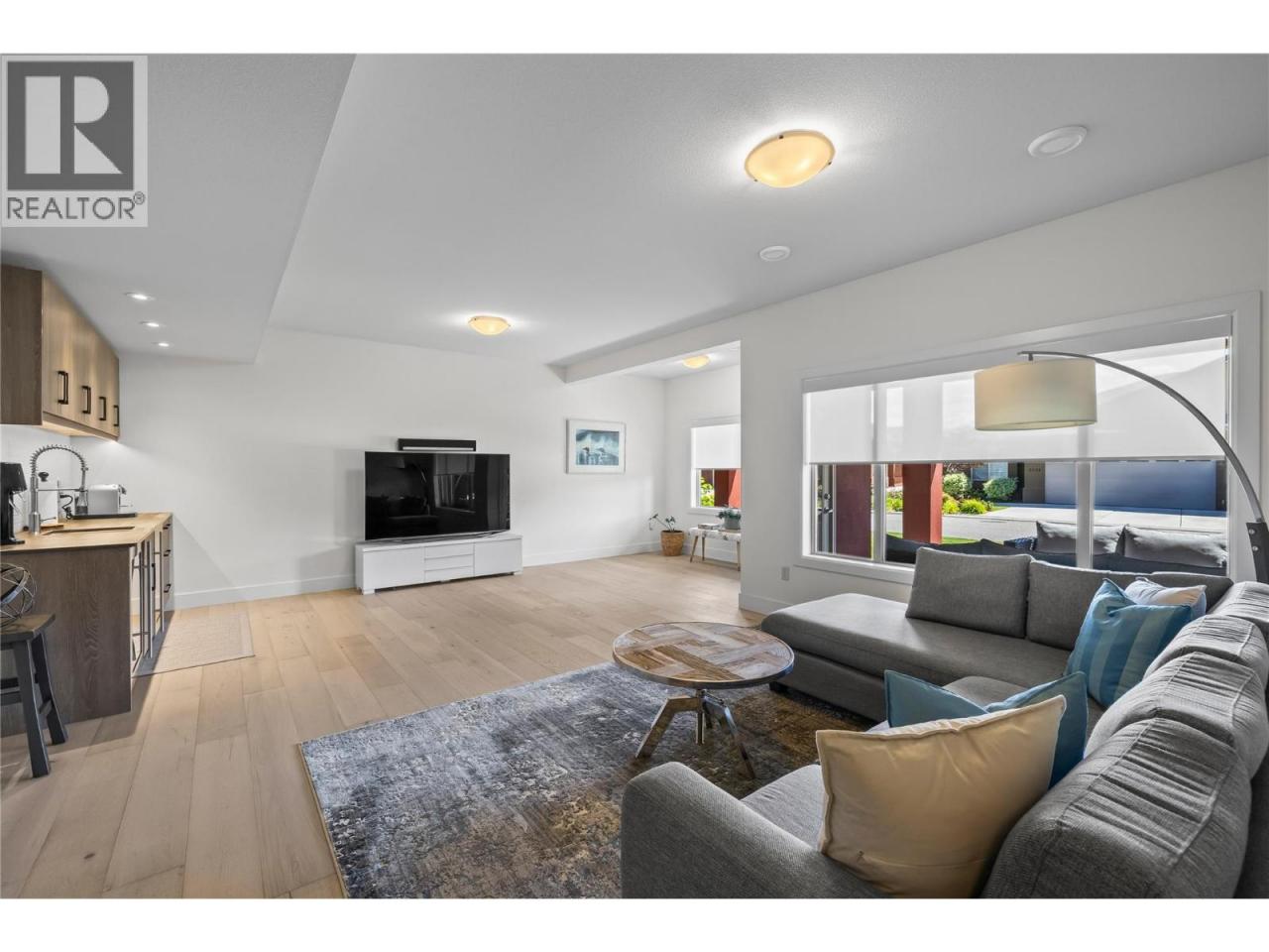 Location and lifestyle—this home truly has it all! Nestled in the highly desirable community of Sonoma Pines, this stunning walkout rancher with partial lake views offers both comfort and convenience. The open Mojave plan features a spacious kitchen with a large center island, sit-up bar, updated lighting, walk-in pantry, and newer stainless steel appliances. An elegant stone fireplace & engineered hardwood floors grace the main living space, filled with natural light from a wall of windows showcasing picturesque views. Wake up with coffee or unwind with a glass of wine on the extended deck with glass railings, ceiling fan, and gas hook-up. The primary bedroom boasts a luxurious 5-piece ensuite with dual vanities, WI shower, & spacious WI closet. A versatile second bedroom/den, full bath, and laundry with new washer and dryer complete the main level. The recently renovated lower level features a large family room with beautiful engineered flooring, a stylish feature bar with two wine fridges, two additional bedrooms, full bath, & ample storage. Step outside to a private backyard with a cedar arbor,Perfect for relaxing or entertaining. The heated double garage includes an EV charger and Pro Slat Wall system for organization. Sonoma Pines offers amenities including a clubhouse, gym, library, billiard room, and a social room with rentable full kitchen. Secure RV parking is also available. Located close to Two Eagles Golf, wineries, shopping & LAKE. No PTT or speculation tax. (id:6769)
