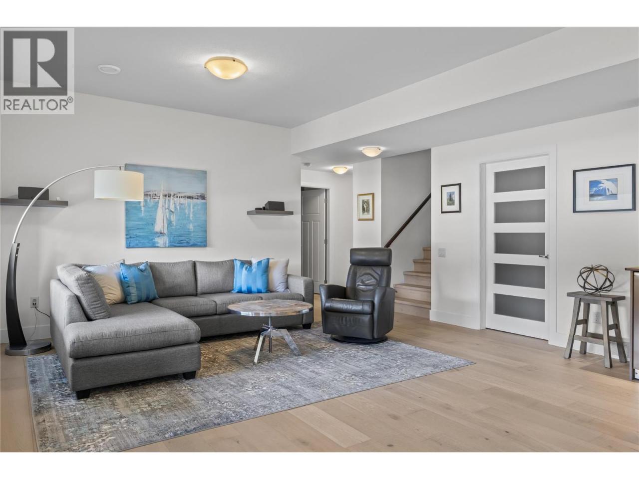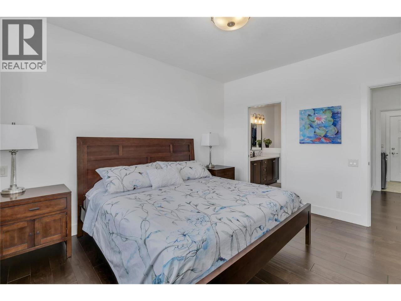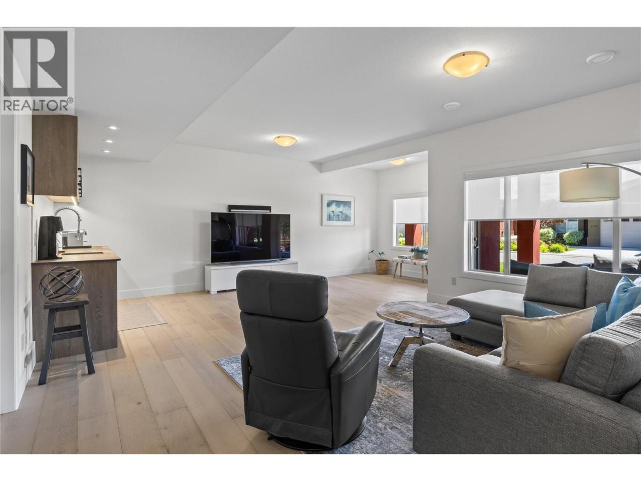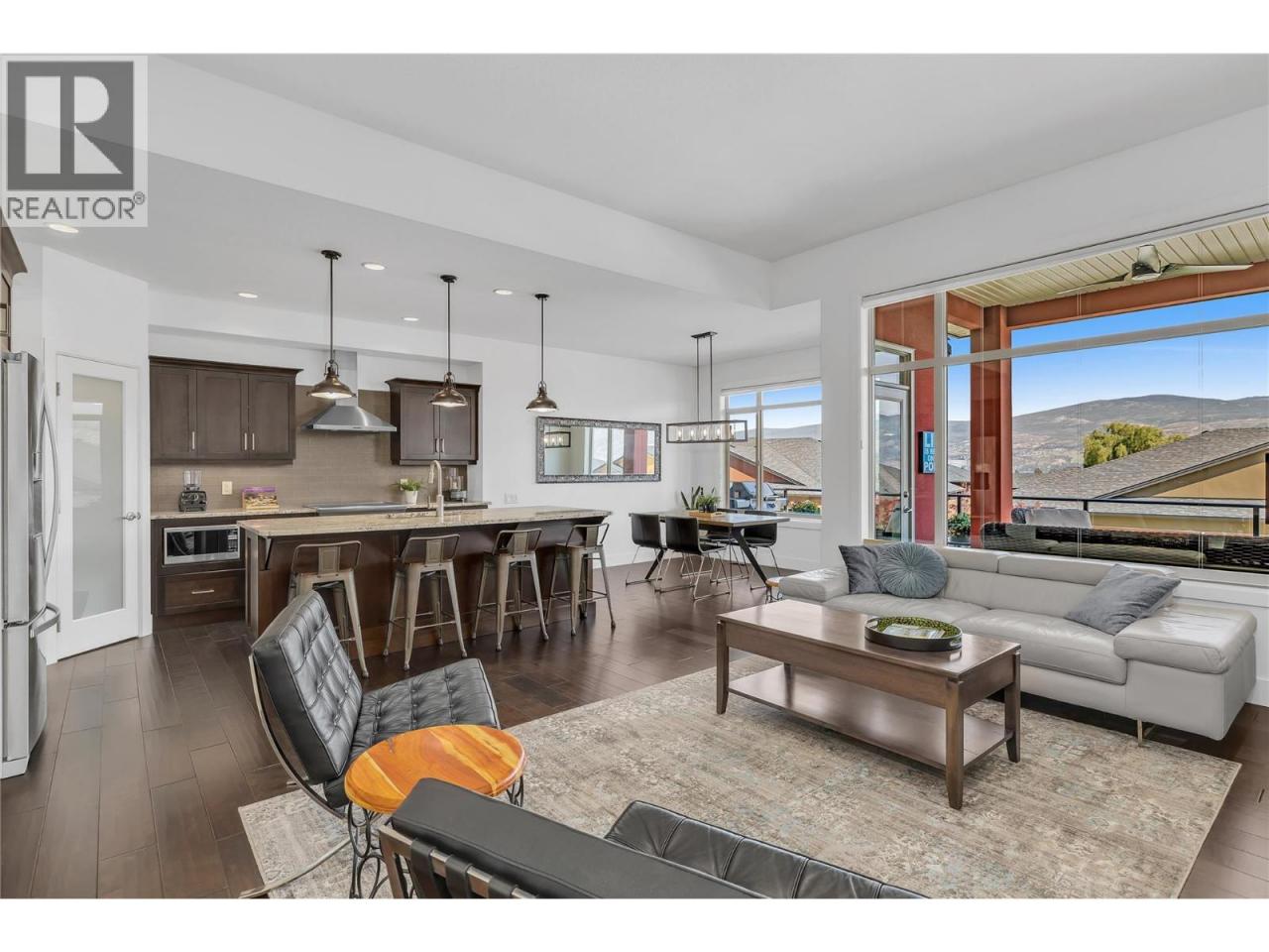 Location and lifestyle—this home truly has it all! Nestled in the highly desirable community of Sonoma Pines, this stunning walkout rancher with partial lake views offers both comfort and convenience. The open Mojave plan features a spacious kitchen with a large center island, sit-up bar, updated lighting, walk-in pantry, and newer stainless steel appliances. An elegant stone fireplace & engineered hardwood floors grace the main living space, filled with natural light from a wall of windows showcasing picturesque views. Wake up with coffee or unwind with a glass of wine on the extended deck with glass railings, ceiling fan, and gas hook-up. The primary bedroom boasts a luxurious 5-piece ensuite with dual vanities, WI shower, & spacious WI closet. A versatile second bedroom/den, full bath, and laundry with new washer and dryer complete the main level. The recently renovated lower level features a large family room with beautiful engineered flooring, a stylish feature bar with two wine fridges, two additional bedrooms, full bath, & ample storage. Step outside to a private backyard with a cedar arbor,Perfect for relaxing or entertaining. The heated double garage includes an EV charger and Pro Slat Wall system for organization. Sonoma Pines offers amenities including a clubhouse, gym, library, billiard room, and a social room with rentable full kitchen. Secure RV parking is also available. Located close to Two Eagles Golf, wineries, shopping & LAKE. No PTT or speculation tax. (id:6769)