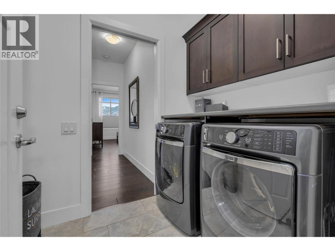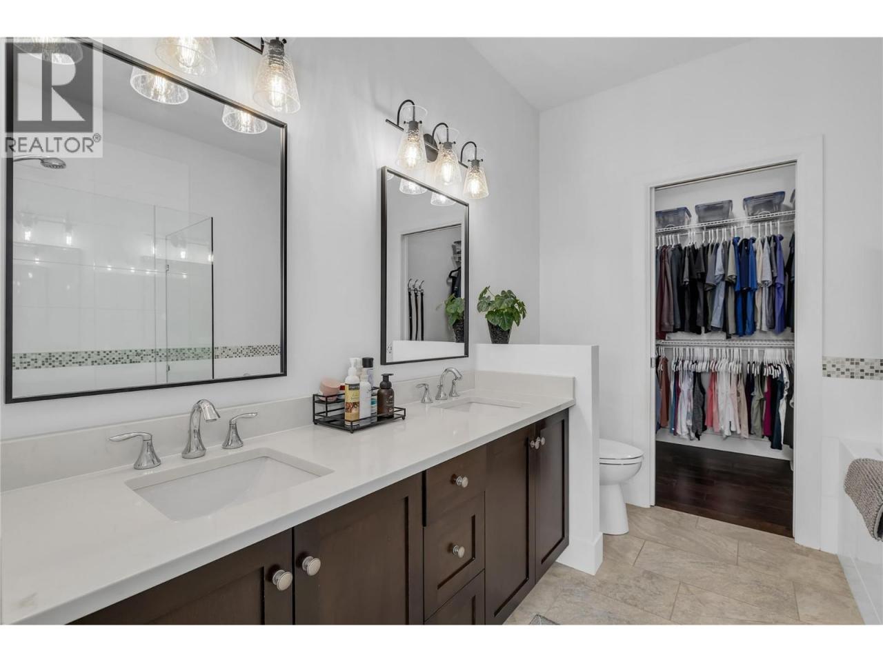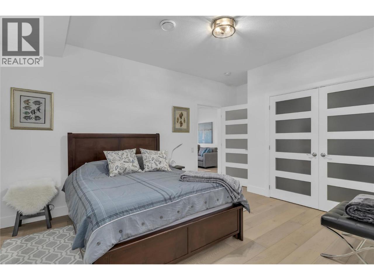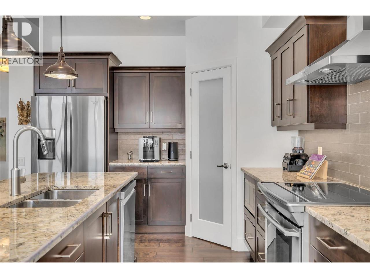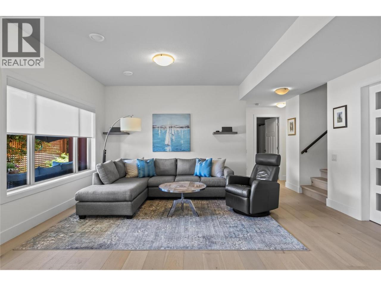 Location and lifestyle—this home truly has it all! Nestled in the highly desirable community of Sonoma Pines, this stunning walkout rancher with partial lake views offers both comfort and convenience. The open Mojave plan features a spacious kitchen with a large center island, sit-up bar, updated lighting, walk-in pantry, and newer stainless steel appliances. An elegant stone fireplace & engineered hardwood floors grace the main living space, filled with natural light from a wall of windows showcasing picturesque views. Wake up with coffee or unwind with a glass of wine on the extended deck with glass railings, ceiling fan, and gas hook-up. The primary bedroom boasts a luxurious 5-piece ensuite with dual vanities, WI shower, & spacious WI closet. A versatile second bedroom/den, full bath, and laundry with new washer and dryer complete the main level. The recently renovated lower level features a large family room with beautiful engineered flooring, a stylish feature bar with two wine fridges, two additional bedrooms, full bath, & ample storage. Step outside to a private backyard with a cedar arbor,Perfect for relaxing or entertaining. The heated double garage includes an EV charger and Pro Slat Wall system for organization. Sonoma Pines offers amenities including a clubhouse, gym, library, billiard room, and a social room with rentable full kitchen. Secure RV parking is also available. Located close to Two Eagles Golf, wineries, shopping & LAKE. No PTT or speculation tax. (id:6769)