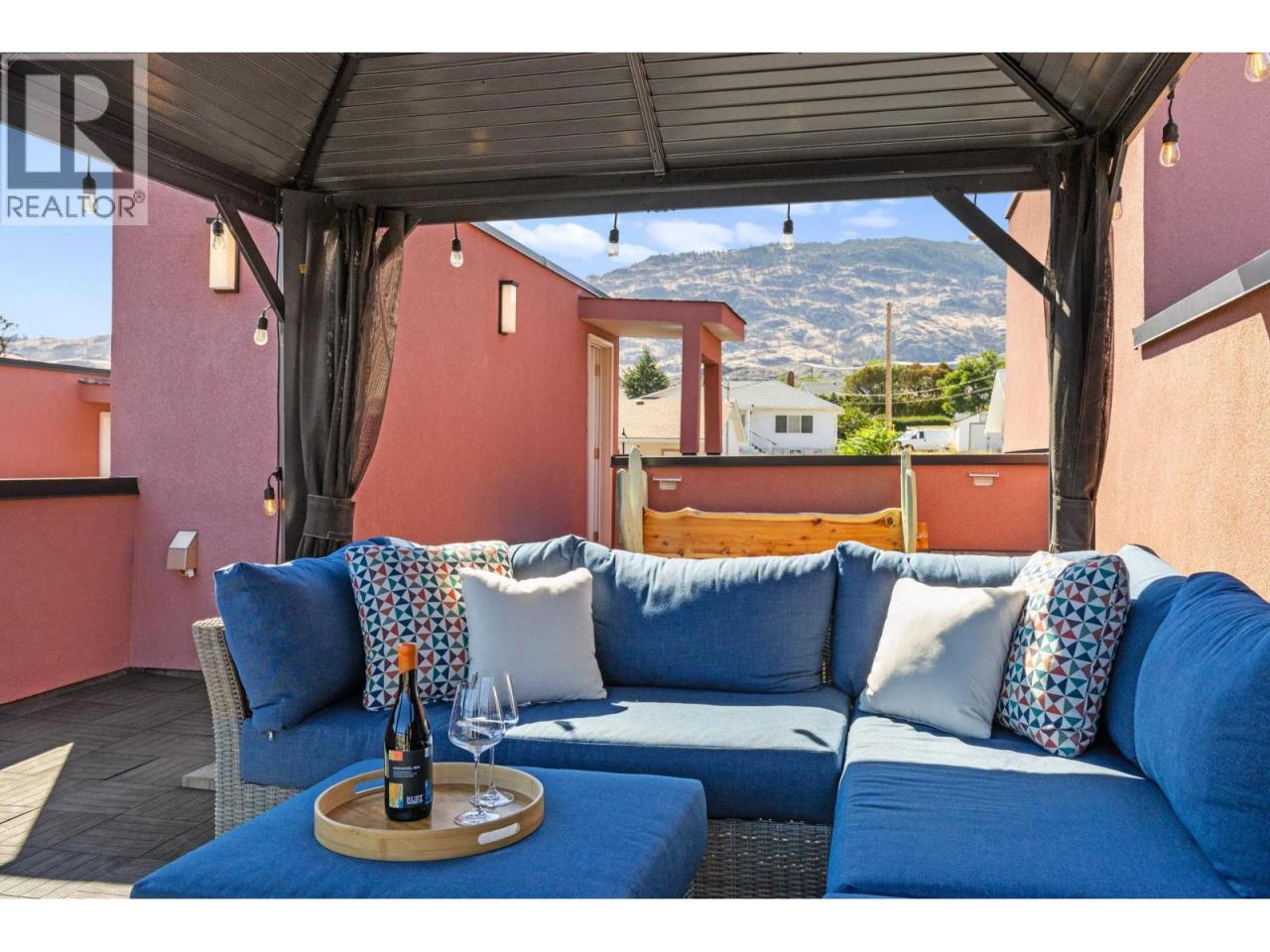 This luxurious 3-bedroom, 3-bath townhome is fully furnished and move-in ready, offering premium quality finishes and highly efficient design for lasting peace of mind and low-maintenance living. The bright open-concept layout features an oversized eat-up island, perfect for hosting family and friends, and a spa-inspired primary suite. Enjoy stunning mountain and lake views from the 412 sqft rooftop patio with gas hook-up, or unwind on the private covered balconies off the dining area and primary suite, perfect for morning coffee or evening drinks. The garage with driveway provides secure parking and extra storage. Experience the best of Okanagan living—just steps from the beach, lake, and vibrant Main Street. Don’t miss this rare turnkey opportunity to own a home in the heart of Osoyoos! (id:6769)