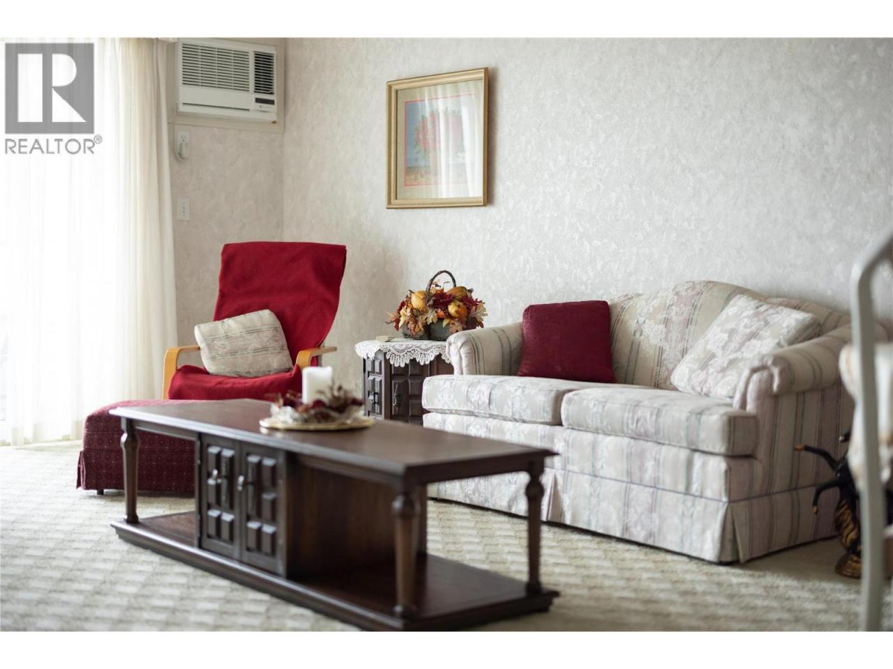 Lovely top floor unit, spacious, bright 2 bed 2 bath with terrific mountains views. This north facing unit is in a prime location with amenities. There is a common meeting area with a kitchen. It is used for regular coffee times and also for some potlucks. There is a pool table room, a small gym and a fully equipped woodwork shop. This is very affordable housing. The home comes with one secure parking space under the building. and a storage locker just down the hall. This is a 50+ building. No rentals are allowed. Buyers must purchase with cash and no mortgages are allowed. Buyers are purchasing a membership in Gordon Park Housing Society with the exclusive right to occupy unit #418. Come and look. (id:6769)