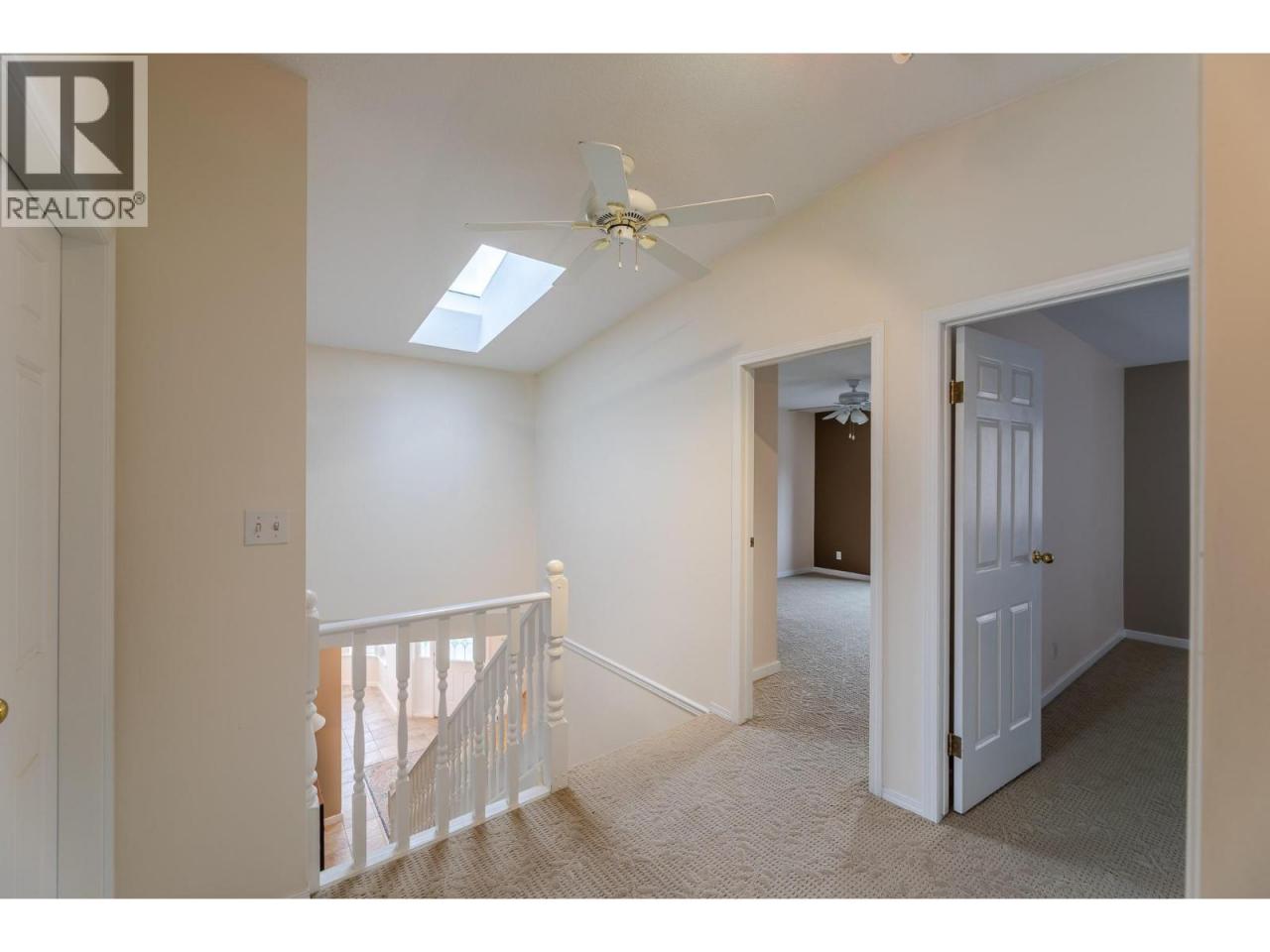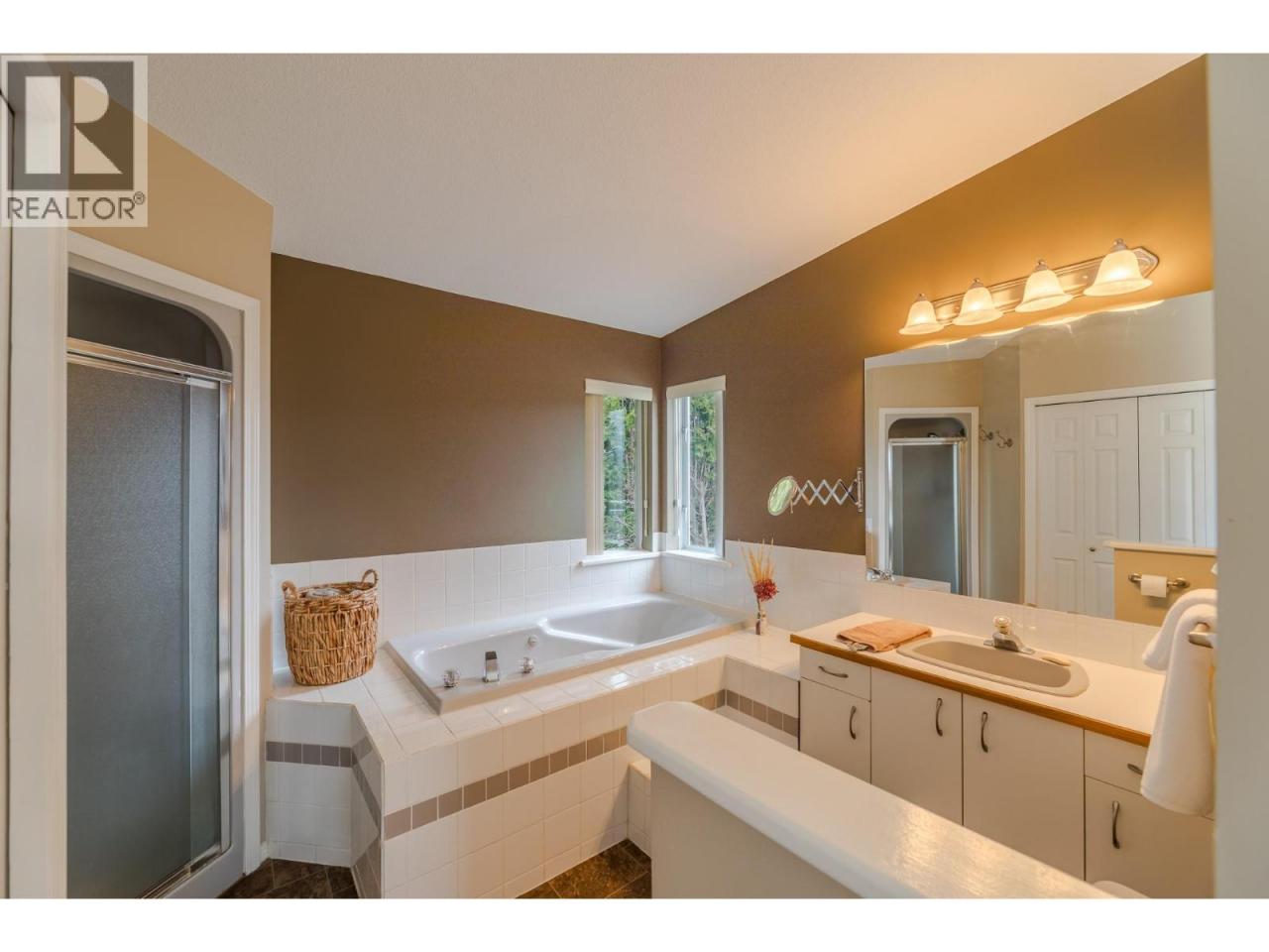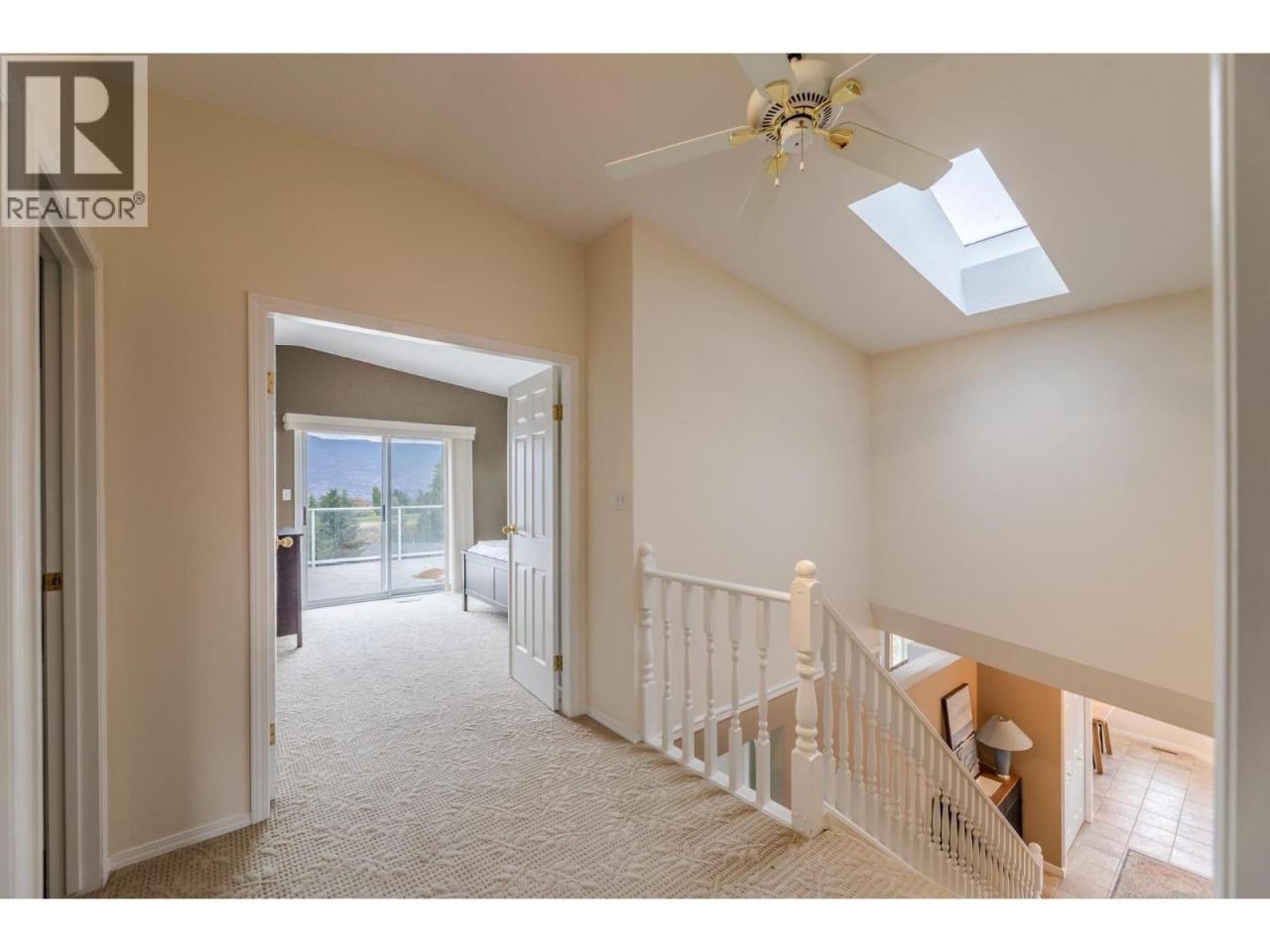 Lovely views of Okanagan Lake from this two-storey home, nestled in the quiet subdivision of Sumac Ridge Lakeview Estates, just north of town. The spacious 3 bedroom and den, 2.5 bathroom home offers the perfect blend of comfort, character, and privacy. Inside, you'll find vaulted ceilings that enhance the open, airy feel of the main living area. A cozy family room off the kitchen, complete with a gas fireplace, creates the perfect space for relaxing or entertaining. The versatile den makes a great home office or hobby space. Upstairs, the large primary suite features a full ensuite bathroom and opens onto a private deck—perfect for enjoying peaceful mornings with views of the 8th tee box and Okanagan Lake. Outdoors, enjoy your tranquil yard with mature landscaping, raised garden boxes and underground irrigation. The double car garage and extended driveway provide ample parking and added privacy from the road. This unique property combines a desirable location, thoughtful layout, and a classic traditional design—ideal for families, golf enthusiasts, or anyone seeking a serene lifestyle. (id:6769)