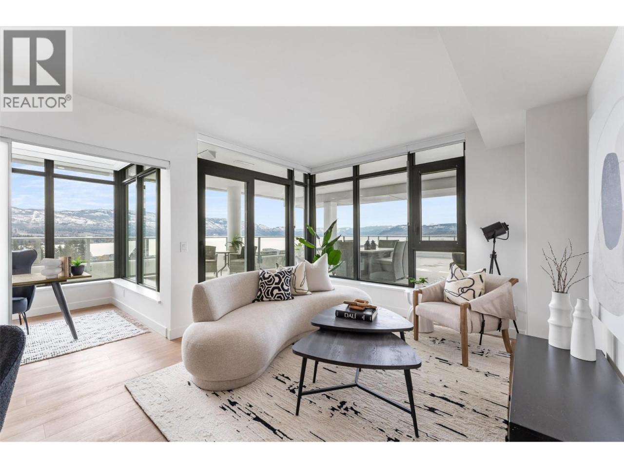 Experience unparalleled lakeside living at Aqua Waterfront Village, a premier development by the award-winning Mission Group. This brand-new, SW-facing 2-bed + den, 2-bath residence offers 1,149 sq. ft. of elegant interior living complemented by an expansive 1,000+ sq. ft. patio perfect for entertaining while soaking in Okanagan Lake views. Designed with sophistication and simplicity, this residence features a bright, open floor plan with calming neutral tones. The chef-inspired kitchen showcases modern flat panel cabinetry, polished quartz countertops, a stunning waterfall island, & stainless-steel appliances. The primary suite is a serene retreat, boasting lake views, a custom walk-through closet, & a spa-like 4-piece bath with a glass-enclosed shower. Thoughtfully positioned bedrooms on opposite sides of the home enhance privacy, while premium upgrades throughout elevate the luxury feel. Residents enjoy resort-style amenities, including a fifth-floor podium with a pool, hot tub, firepit enclaves, BBQ area, & a two-story fitness centre. Additional conveniences include a fireside lounge, bike storage & wash station, dog wash, & exclusive access to the Aqua Boat Club. Nestled in the heart of Lower Mission, Aqua Waterfront Village is just steps from coffee shops, restaurants, breweries, boutique shopping, & Kelowna’s best beaches. Two side-by-side parking stalls located closest to the elevator (1 stall features an EV charger) and one storage locker included. NO GST. (id:6769)