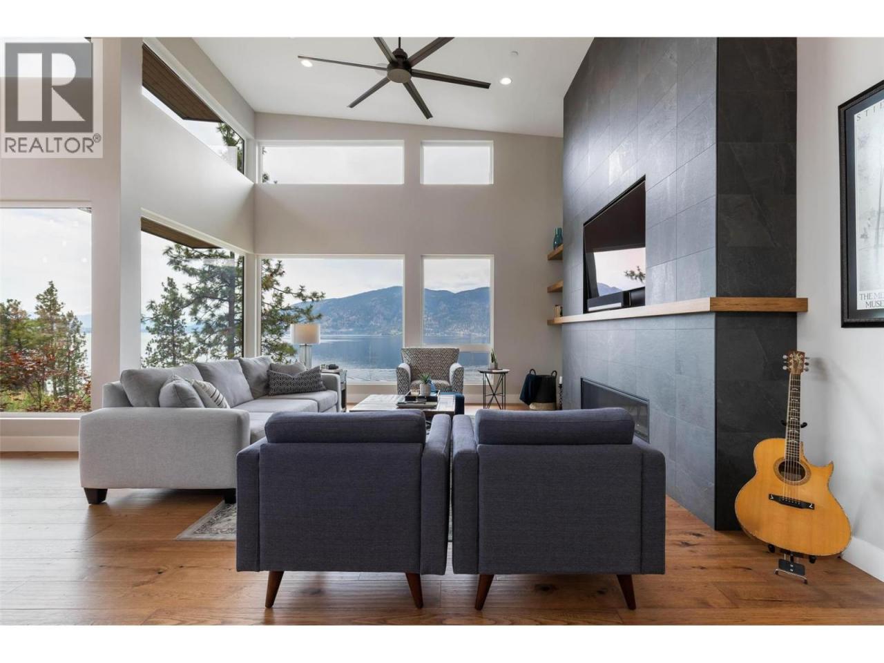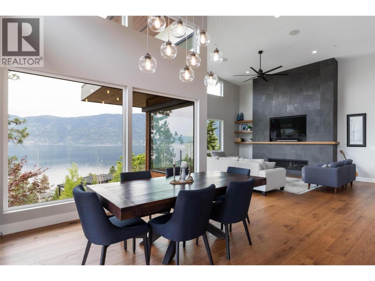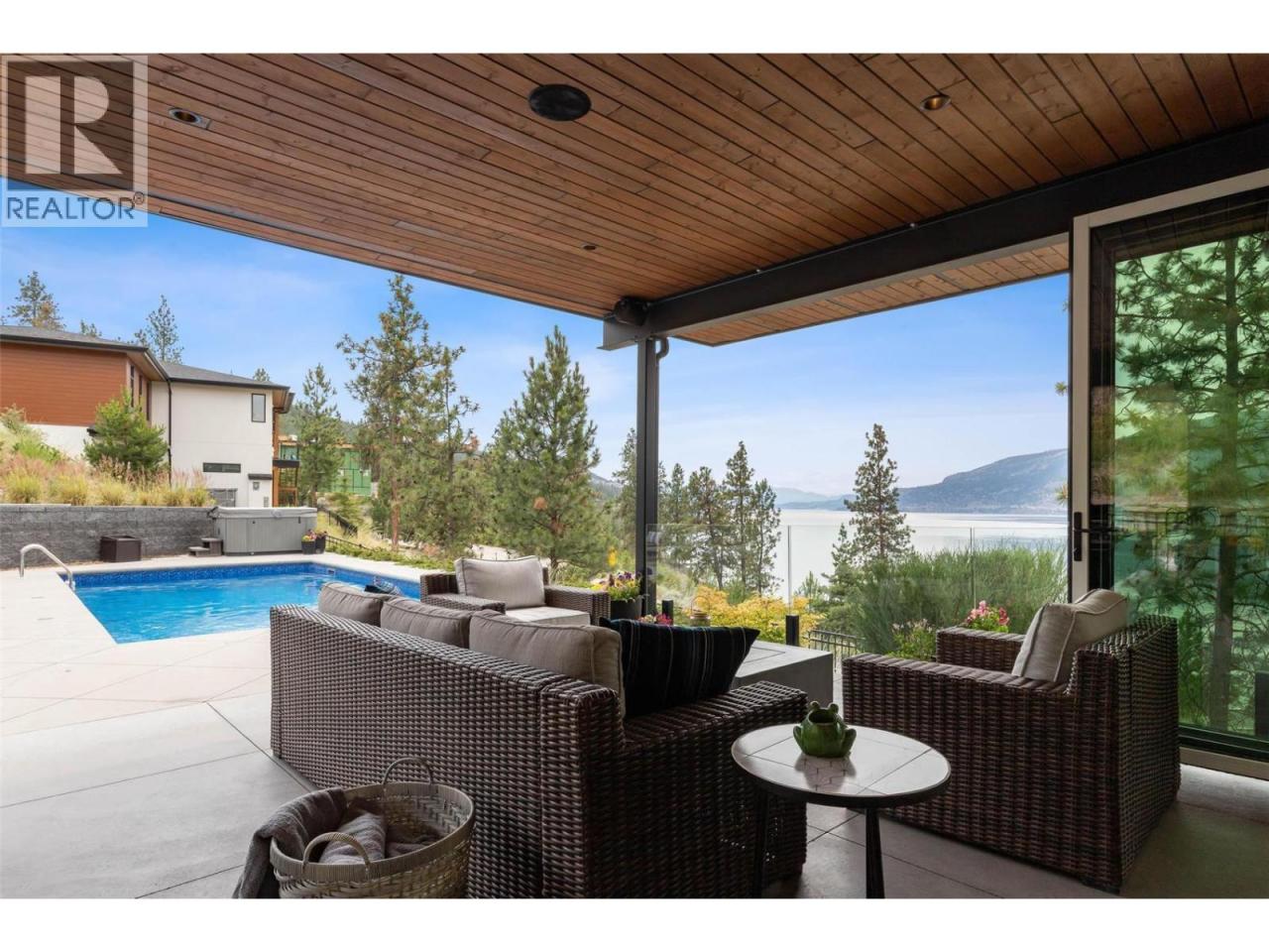 Prestigious Lakestone Estates! This gorgeous 4+ bedroom 5,100+ sq/ft West-Coast contemporary 'lake house' w/ 3+ Car Garage (boat space) with a 0.78 Acre lot sits on one of the Okanagan's most desirable streets. Opening the 15 ft Folding Sliding Door allows the dining room and kitchen to extend onto a covered deck with fire table area, BBQ space, sun lounging zone, salt water pool, and hot tub. Inside, the 14 ft ceilings and full windows create a serene vista from which to take in the panoramic view of the lake. Retreat to a luxury primary bedroom w/ large walk-in closet and spa-inspired Ensuite. Off the contemporary chef's kitchen with 12ft island, is a small office and walk-in pantry housing the extras - ideal for entertaining. Downstairs you will find 3 bedrooms, a chilled wine display, a flex room / second laundry (roughed-in 4th bath), media room, and large Rec Room / Multi-purpose space with two access doors and direct stairs to garage for convenience. Incredibly well thought out, and meticulously maintained. High end hardwood floors, quartz counters, and custom cabinetry throughout. Multi-zoned heating/cooling and multi-room speakers. An easy stroll to Lakestone’s beach for boating access, kayaking or SUP boarding, tennis and pickle ball courts, and hiking / biking trails. Enjoy sampling wine at one of 7 local wineries. This location and home will not disappoint! View HD Video w aerial drone footage (See Media Link), Virtual Tour, & Floor plans. Low strata - Not in HOA. (id:6769)