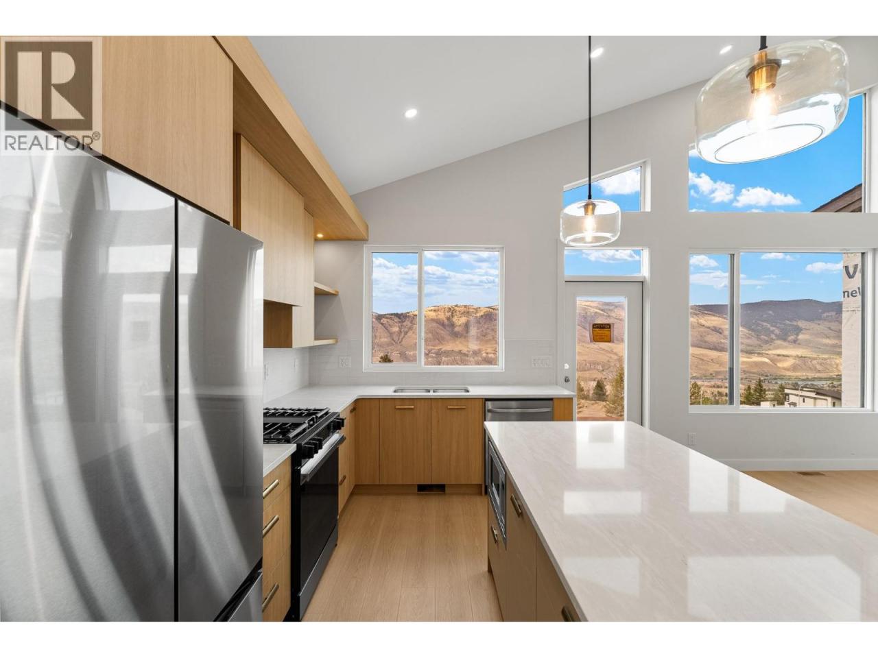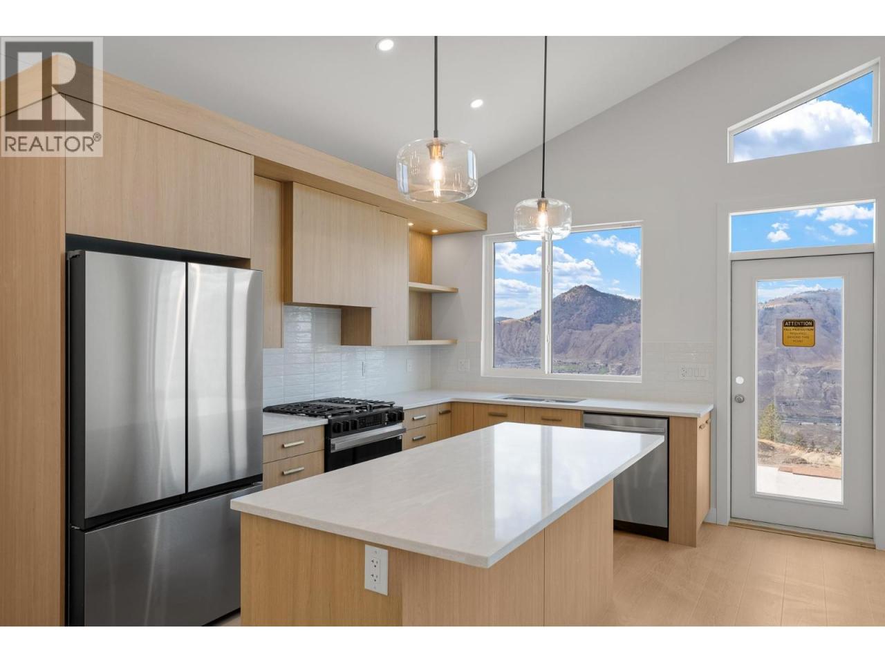 Welcome to The Landing at Juniper West – an exclusive collection of 3-bedroom duplex homes perched atop Juniper Ridge on scenic Coldwater Drive. Showcasing striking modern architecture, each home seamlessly blends style, functionality, and breathtaking natural surroundings into one perfect package. Thoughtfully crafted entry-level layouts feature a bright, open-concept floor plan that flows effortlessly between the living, kitchen, and dining spaces. Vaulted ceilings and expansive windows frame unobstructed river and city views, inviting the beauty of the outdoors into your everyday living. With the primary suite and laundry conveniently located on the main floor, you have everything you need within easy reach. The rancher-style design includes a walkout basement offering two additional bedrooms and a full bathroom—delivering flexibility and comfort for every stage of life. This duplex also contains a Bonus space with the suspended slab under the basement, providing additional square footage to your home! Outside, enjoy professionally landscaped, low-maintenance yards and the added ease of a low Bareland Strata fee. Every home comes turn-key ready, complete with a full appliance package, stylish window coverings, and contemporary finishes—so you can settle in and start enjoying immediately. This is elevated living in one of Kamloops’ most sought-after neighbourhoods. *Please note, listing photos are of Unit 140 (id:6769)