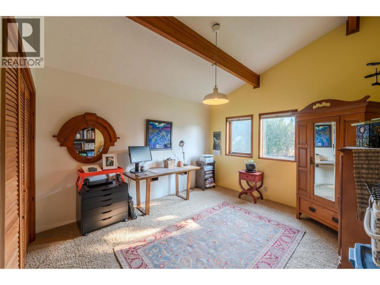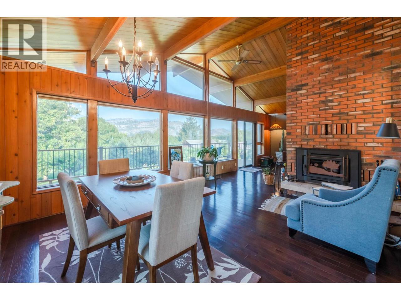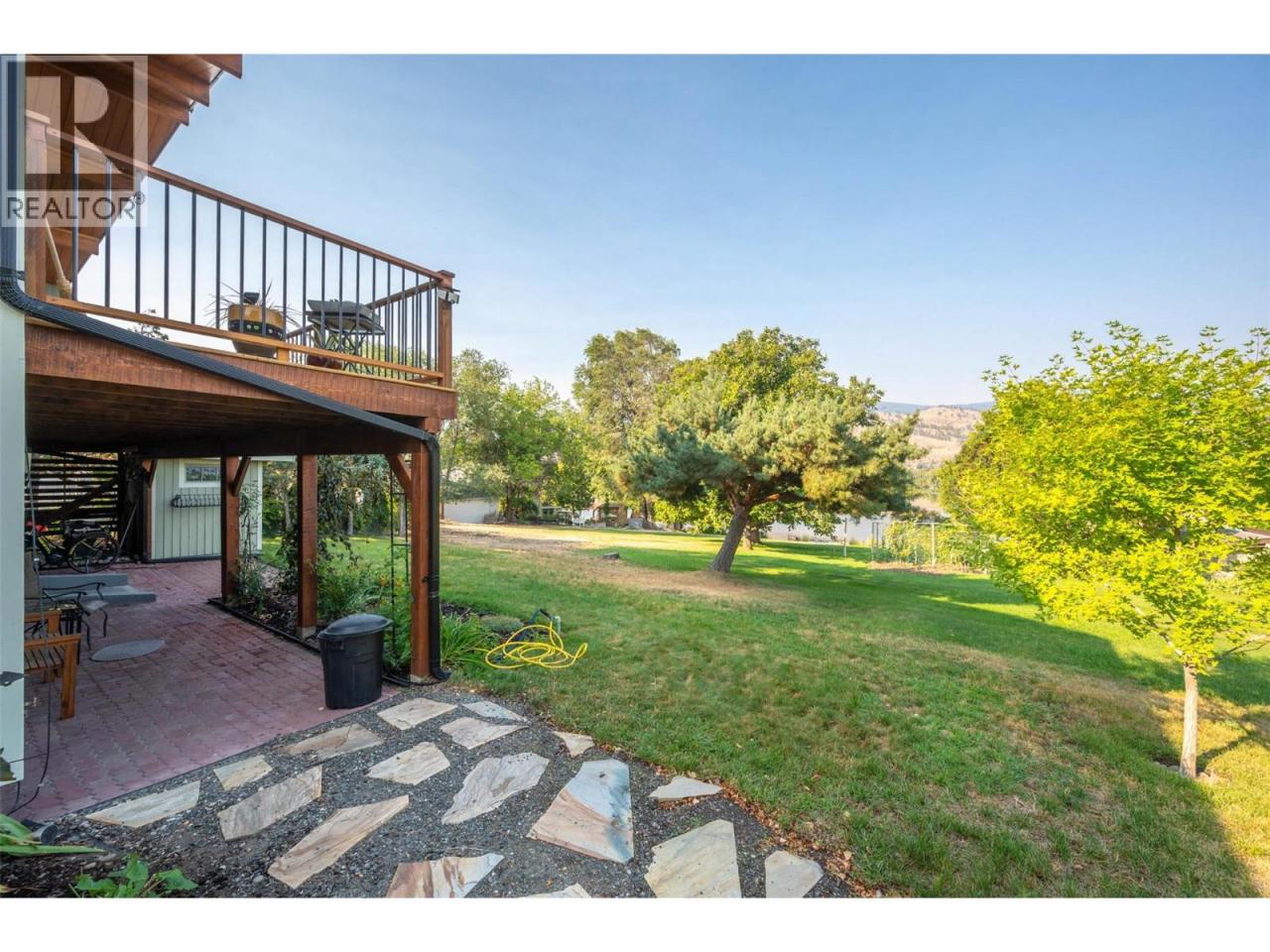 Lovely custom-built character home on a quiet cul-de-sac just east of Oliver, offering 3,112 sq ft of living space on a 0.208-acre lot with lake views. This thoughtfully designed residence features soaring vaulted ceilings with exposed beams, a wall of windows that flood the interior with natural light, and both open and covered decks to enjoy the scenery. The main level showcases hardwood flooring, updated light fixtures, and an updated sundeck, while the lower level includes an in-law suite—ideal for extended family, guests, or potential use as an Airbnb. With 4 bedrooms, 4 bathrooms, and 2 kitchens, there is room and flexibility for everyone. Recent upgrades include a new furnace, air conditioning, hot water tank, water softener, completed eavestroughing with downspouts, UV-protected window screens, and a radon mitigation system. The main living area features an updated high-efficiency fireplace insert, while the suite includes its own wood stove for added comfort. Outdoors, enjoy a fully enclosed garden/play area, a large custom post-and-beam arbour, and a garden/tool shed—perfect for the hobbyist or gardener. The double semi-detached garage provides secure parking and storage, with a spacious driveway for extra vehicles. Just minutes from town amenities yet tucked away for privacy, this is a one-of-a-kind home that blends character, comfort, and modern updates—all ready for its next chapter. (id:6769)