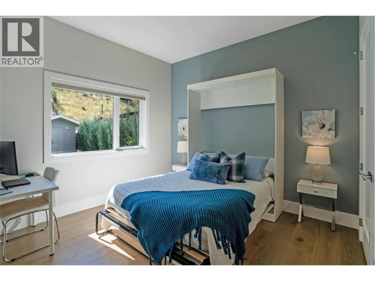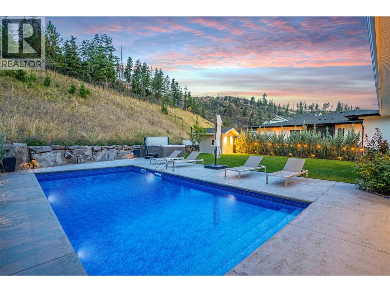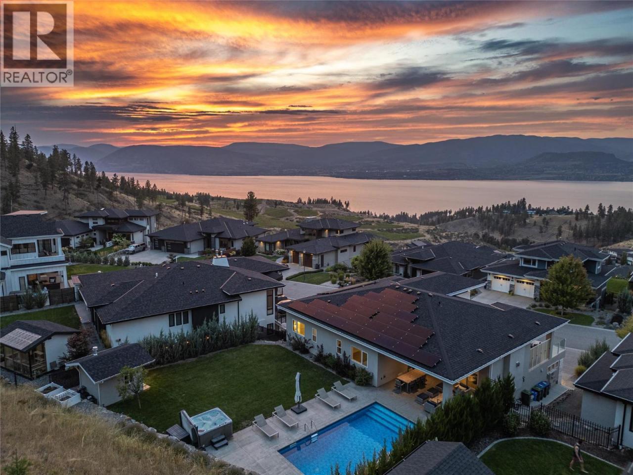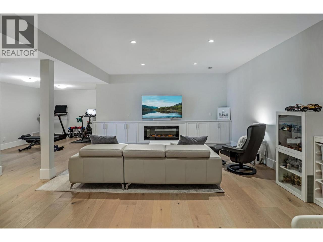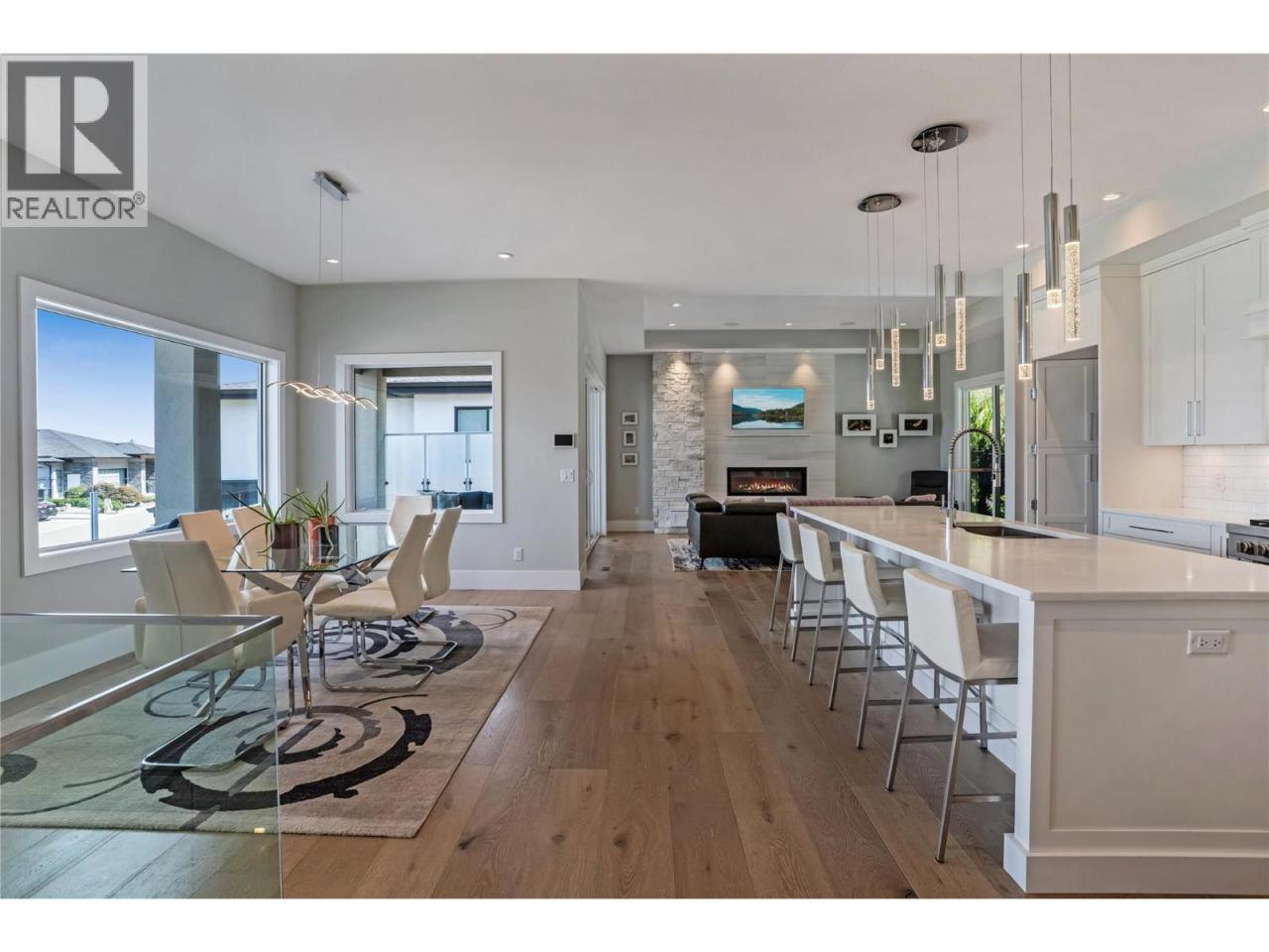Discover custom-built luxury in this stunning 5-bedroom, 5-bath home featuring a bright, legal 1-bedroom ground-level suite. This high-efficiency smart home boasts soaring vaulted ceilings, a dramatic floating staircase, and rich wide plank wood floors. The open-concept main floor centers around a chef’s kitchen with quartz countertops, custom cabinetry, and a hidden walk-in butler’s pantry. Flow effortlessly into the spacious dining and living areas warmed by a gas fireplace, then step out onto the front deck to enjoy Okanagan Lake and mountain views. The private backyard is an entertainer’s dream with a heated saltwater pool, hot tub, and ample space to relax or host gatherings. The main-level master suite offers a spa-like retreat with a soaker tub, glass-enclosed shower, and double floating vanity with undermount lighting. Two additional bedrooms share a stylish Jack & Jill bath, with one bedroom featuring a queen Murphy bed—ideal for guests or a home office. A large laundry room with abundant counters and cabinetry enhances daily functionality. The lower level features a generous rec room with an electric fireplace, wet bar, guest bedroom, and full bath. The oversized three-car garage easily fits a boat, a car, and plenty of toys. Exceptional millwork, designer fixtures, and quality finishes elevate every room. Enjoy close proximity to top schools, parks, dining, and Okanagan’s renowned wineries. Luxury, comfort, and thoughtful design converge in this remarkable home. (id:6769)