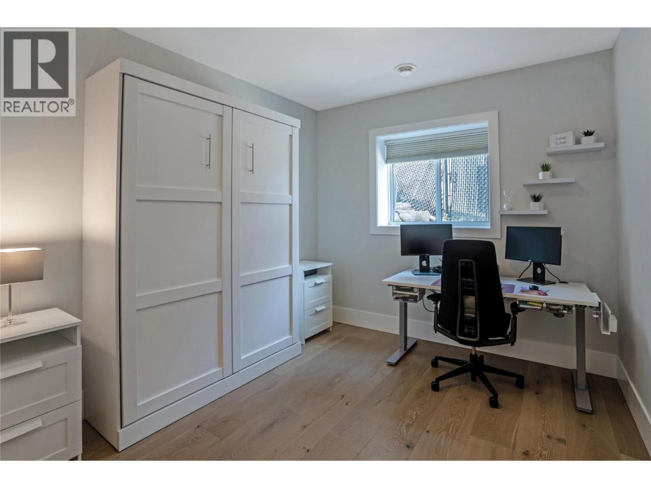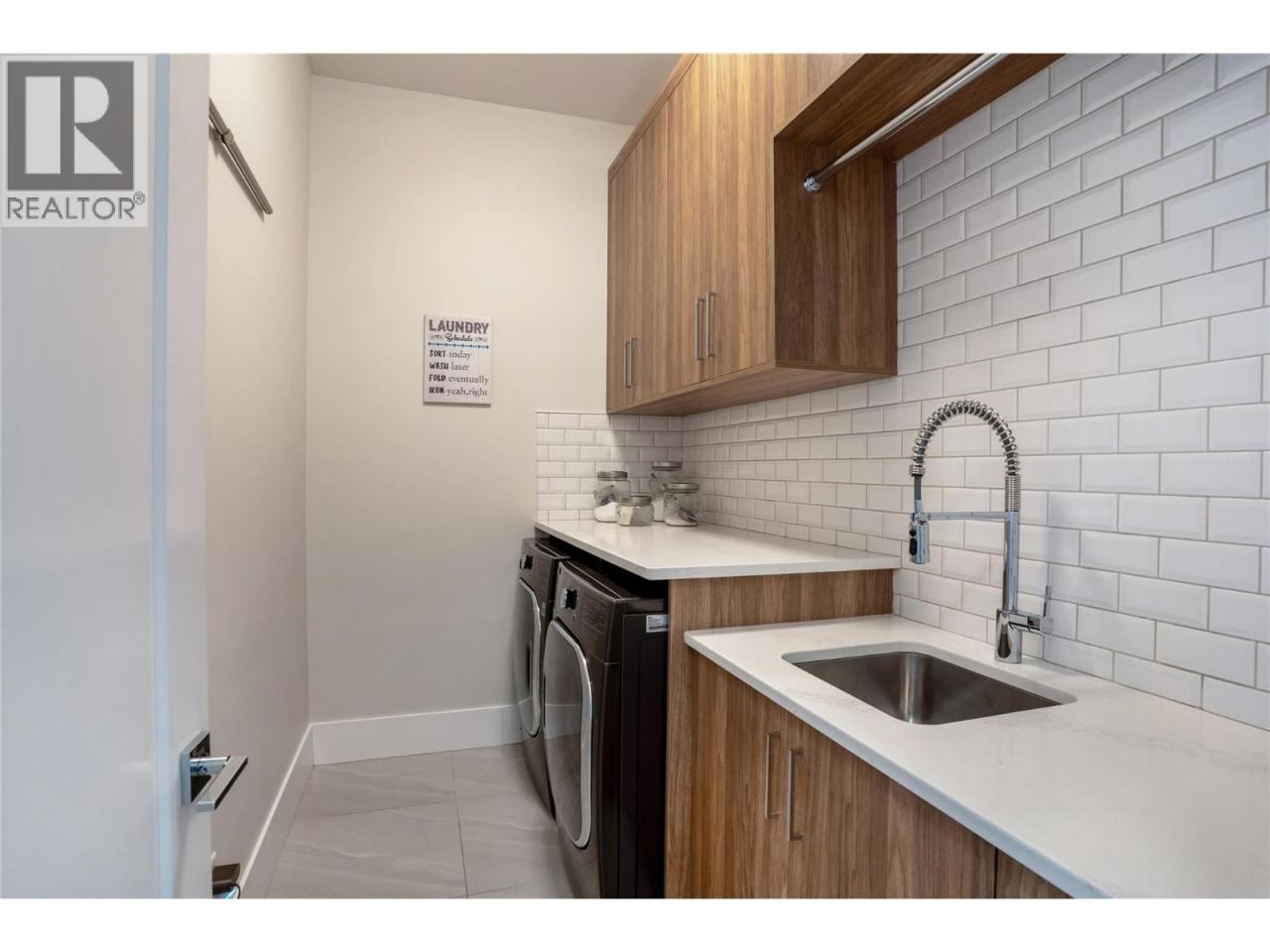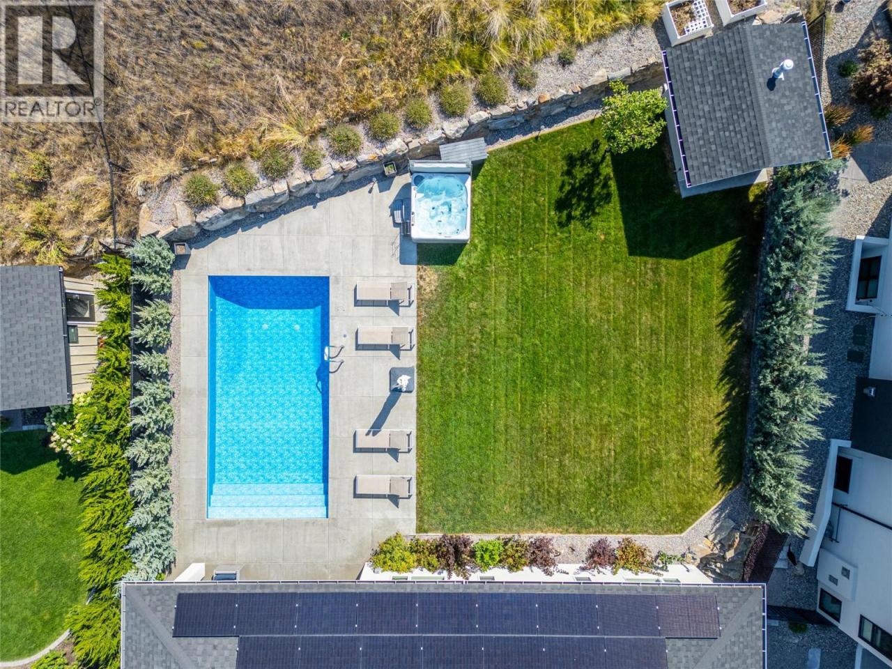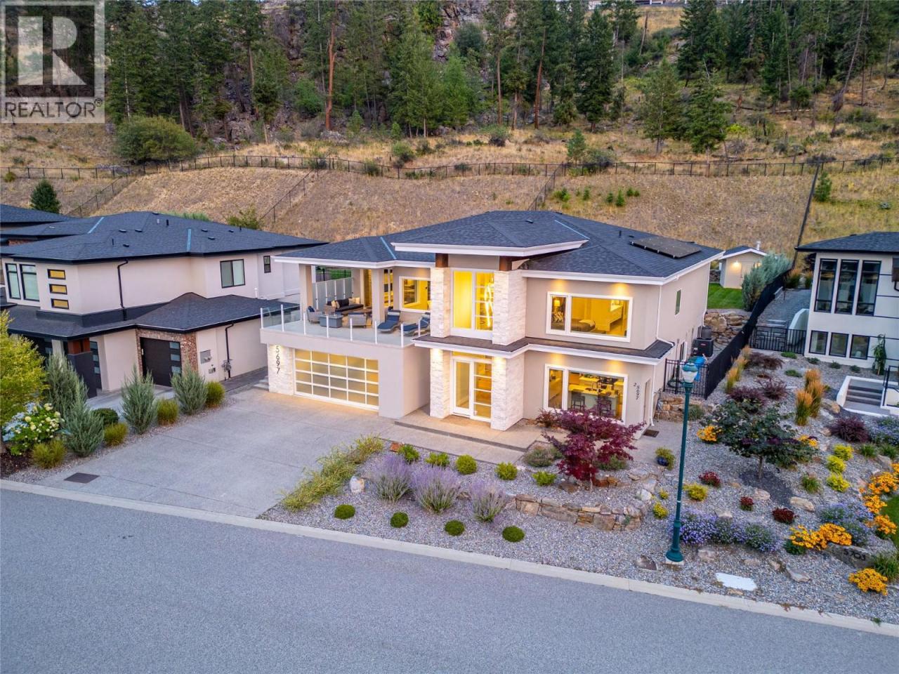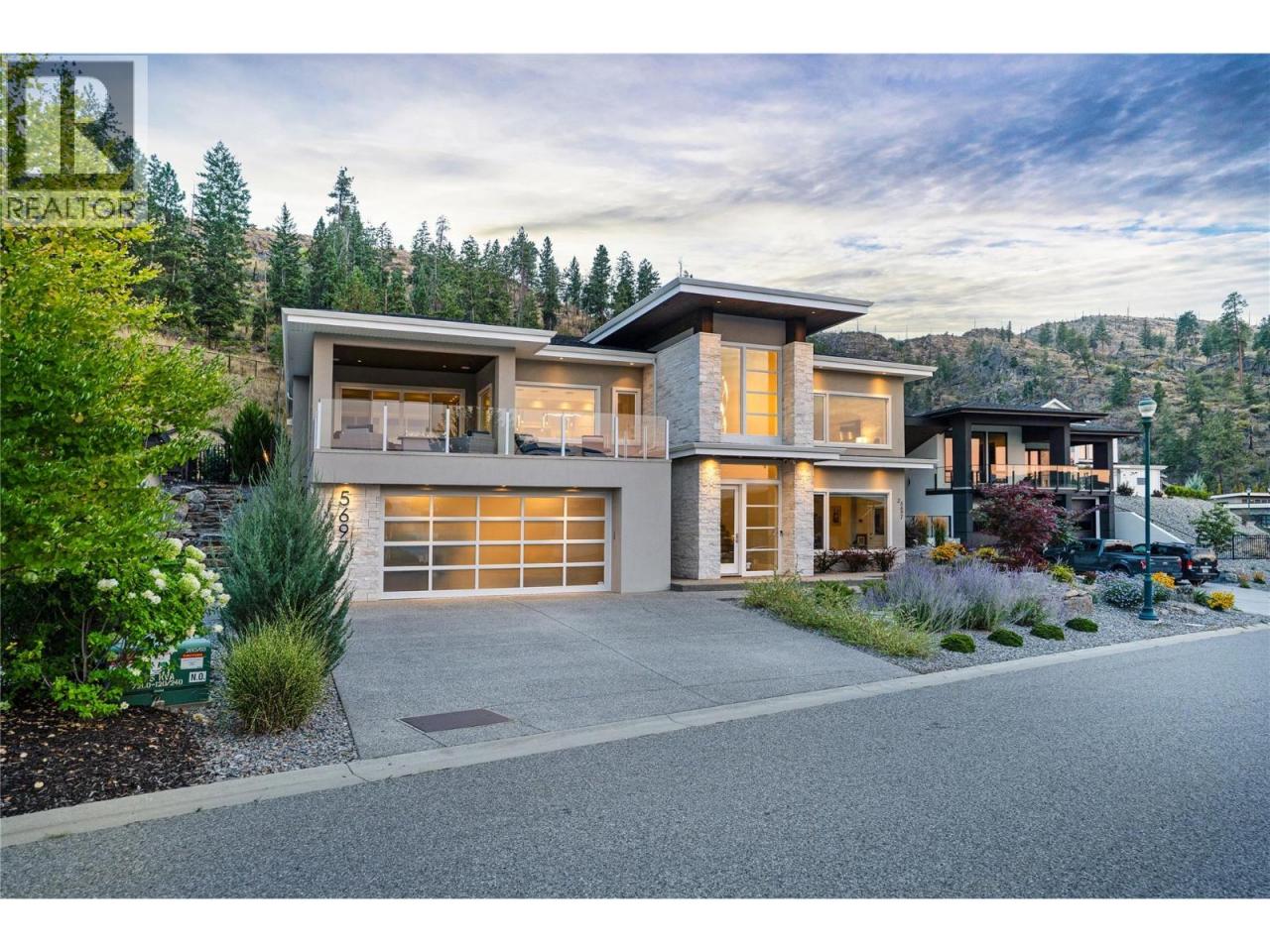 Discover custom-built luxury in this stunning 5-bedroom, 5-bath home featuring a bright, legal 1-bedroom ground-level suite. This high-efficiency smart home boasts soaring vaulted ceilings, a dramatic floating staircase, and rich wide plank wood floors. The open-concept main floor centers around a chef’s kitchen with quartz countertops, custom cabinetry, and a hidden walk-in butler’s pantry. Flow effortlessly into the spacious dining and living areas warmed by a gas fireplace, then step out onto the front deck to enjoy Okanagan Lake and mountain views. The private backyard is an entertainer’s dream with a heated saltwater pool, hot tub, and ample space to relax or host gatherings. The main-level master suite offers a spa-like retreat with a soaker tub, glass-enclosed shower, and double floating vanity with undermount lighting. Two additional bedrooms share a stylish Jack & Jill bath, with one bedroom featuring a queen Murphy bed—ideal for guests or a home office. A large laundry room with abundant counters and cabinetry enhances daily functionality. The lower level features a generous rec room with an electric fireplace, wet bar, guest bedroom, and full bath. The oversized three-car garage easily fits a boat, a car, and plenty of toys. Exceptional millwork, designer fixtures, and quality finishes elevate every room. Enjoy close proximity to top schools, parks, dining, and Okanagan’s renowned wineries. Luxury, comfort, and thoughtful design converge in this remarkable home. (id:6769)