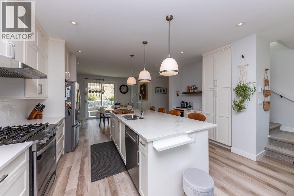 125 River Gate: Best location in complex this rare corner townhome offers stunning views of South Thompson River & surrounding mountains w/ natural light pouring in from multiple directions. Main level feats a bright, open-concept design w/ show stopping kitchen complete w/ gas range, oversized quartz island, coffee bar & spacious living rm that boasts high ceilings. The expansive dining area flows seamlessly to massive private patio w/ gas BBQ hookup, perfect for entertaining while enjoying the sunrise & set views. Upstairs primary suite is a true retreat w/ lrg walk-in closet, 4-piece ensuite & excellent separation from 2 additional bedrms. 3rd bedrm, currently set up as office w/ custom built-ins, adds flexibility. A full bathrm & conveniently located laundry complete this floor. Lower level includes versatile theatre rm/flex space w/ Murphy bed, 4-piece bathrm & a welcoming foyer. Highlights include: 1-car garage, Geothermal heating & cooling, LED lighting throughout & Home warranty. Located in highly sought-after Sun Rivers community you’ll enjoy an 18-hole championship golf course, new commercial amenities, local grocery store w/in walking distance & easy access to year-round recreation. Stylish living, unbeatable views & a vibrant community this River Gate corner unit has it all. All measures approximate. (id:6769)