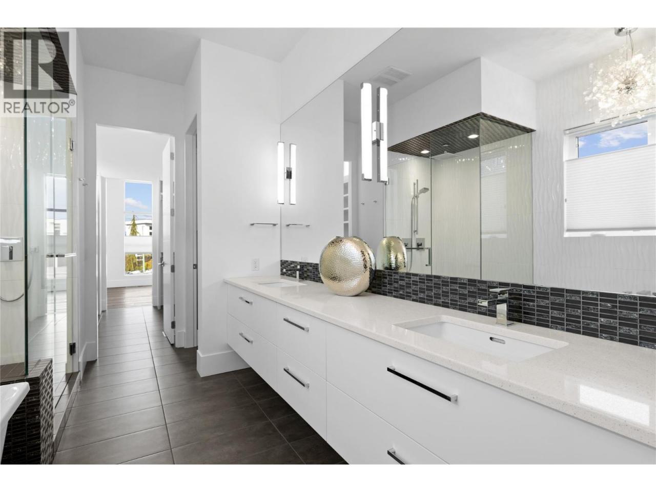 Welcome to the Pinnacle of Luxury Living in this Exquisite Custom Home in Woodland Hills Estates. One of The most Impressive homes in Kelowna’s Exclusive Lower Mission. This stunning estate underwent a substantial renovation in 2024, with no detail overlooked. Offering an exceptional blend of elegance, grandeur, and modern design, it is a true Masterpiece. The interior showcases soaring ceilings, high-end finishes and top-quality renovations. The chef’s kitchen is equipped with premium appliances, elegant cabinetry, and thoughtfully designed spaces for both cooking and gathering. The main floor primary suite is a private retreat, complete with ensuite, walk-in closet and bonus dressing room or nursery. A second suite is located on the upper level, which also features another bedroom or office and spacious family room. The lower level offers a generous sized media/games room with custom panels, bar and wine feature, 2 more bedrooms and gym. Designed for both relaxation and entertainment, the home boasts a beautifully landscaped backyard oasis with a private inground pool. Surrounded by lush new landscaping and artificial grass, the outdoor space is both stunning and low-maintenance. The property offers lake views from both the North and South sides, ensuring breathtaking scenery throughout the day. Every aspect of this home has been meticulously upgraded to the highest standards, offering a rare opportunity to own this Polished, Luxurious and Sophisticated Estate. (id:6769)