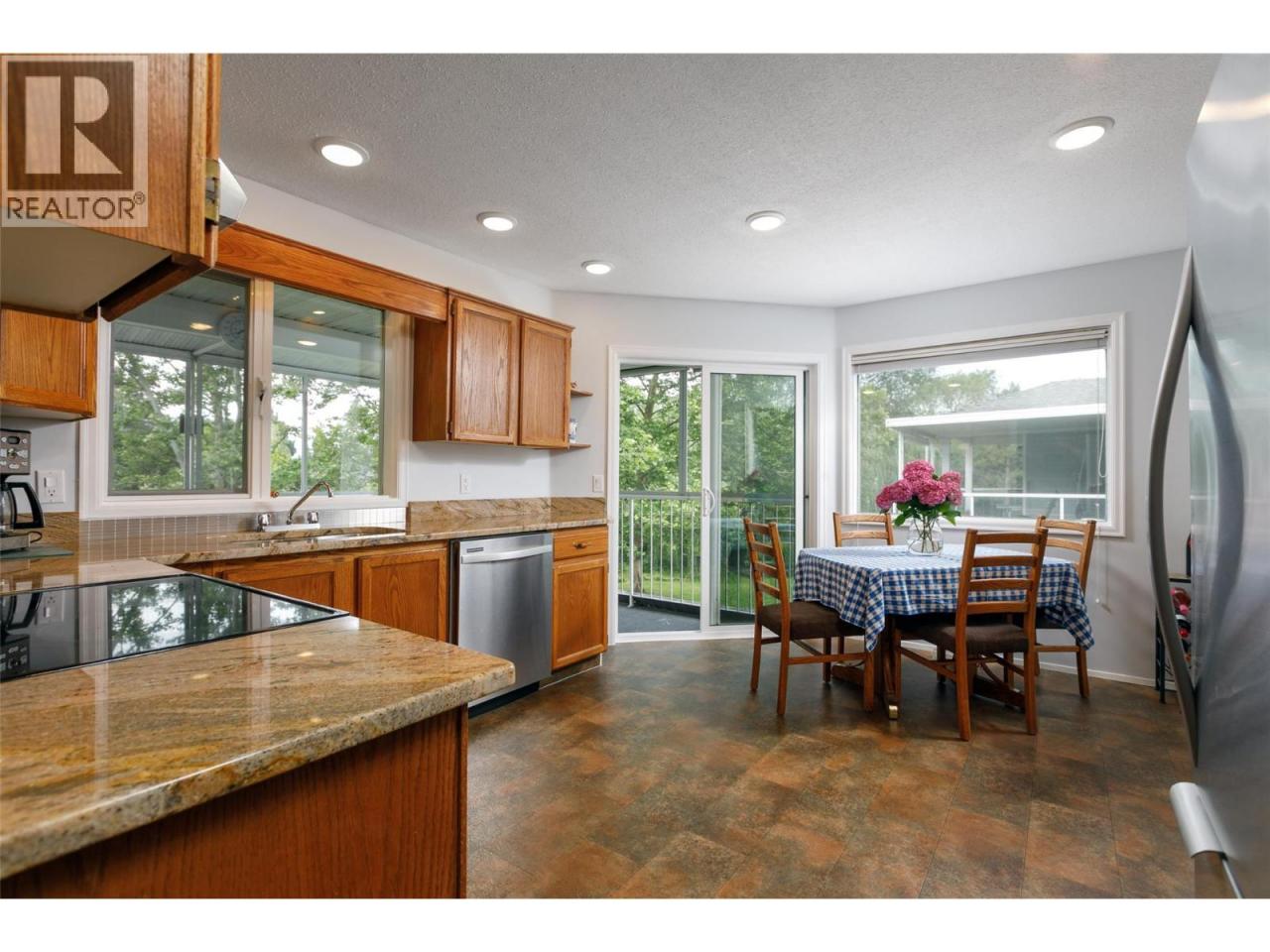 Location, location, location! This beautifully updated walk-out rancher is perfectly situated on a rare creekside lot in Sandhaven—one of Kelowna’s most sought-after 55+ gated communities. Tucked into a quiet corner of the complex, this 3-bedroom, 3-full-bath detached home delivers exceptional privacy, tranquility, and truly low-maintenance living in the heart of the city. Enjoy unbeatable convenience with a central location close to Kelowna General Hospital, downtown, Orchard Park Shopping Centre, golf, restaurants, and parks—all just minutes away. Inside, the bright, open layout showcases thoughtful updates throughout, including a refreshed kitchen with newer stainless steel appliances, granite countertops, and updated flooring. Peace of mind comes easy with a new roof, updated plumbing (Poly-B removed), and modern fixtures. The main level features a spacious primary suite with walk-in closet and ensuite, formal living and dining areas overlooking serene green space, and a covered balcony—perfect for morning coffee or evening relaxation. The walk-out lower level offers excellent additional living space with a large family room that opens onto a covered patio, a full bathroom, and a third bedroom ideal for guests, hobbies, or a home office. Bonus: unfinished storage areas offer room for further development—media room, workshop, or simply ample storage. Outside, enjoy the beautifully landscaped and private creekside setting, complete with an enclosed upper deck and shaded lower patio. A single garage and access to community amenities—including a heated outdoor pool and RV parking—round out this exceptional offering. This move-in-ready home blends peace, convenience, and comfort in one of Kelowna’s premier adult communities. Don’t miss your chance! (id:6769)