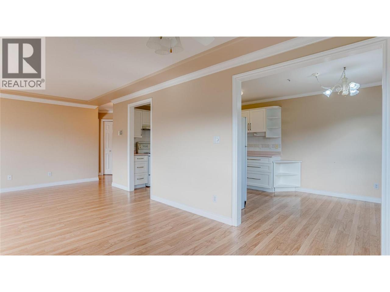 Welcome to this bright and spacious 2-bedroom, 2-bathroom end unit on the 3rd floor of Regency Court—a well-maintained, adult-oriented building offering peaceful living and excellent amenities. Inside, you’ll find a cozy natural gas fireplace, laminate flooring, and elegant crown moldings that enhance the open-concept living and dining areas. The living room opens onto a private balcony, perfect for enjoying morning coffee or evening sunsets. The kitchen features new soft-close cabinets, plenty of storage, and a functional layout designed for everyday ease. The generous primary bedroom includes its own private ensuite, while the second bedroom—filled with natural light from large windows—is conveniently located next to the second full bathroom. Additional perks include in-suite laundry and secure underground parking. Residents of Regency Court enjoy access to a games/activity room, a fitness center, and a welcoming outdoor patio with a BBQ area. Ideally located within walking distance of FreshCo, Shoppers Drug Mart, and Vernon’s vibrant downtown, this home offers the perfect blend of comfort, convenience, and community living. (id:6769)