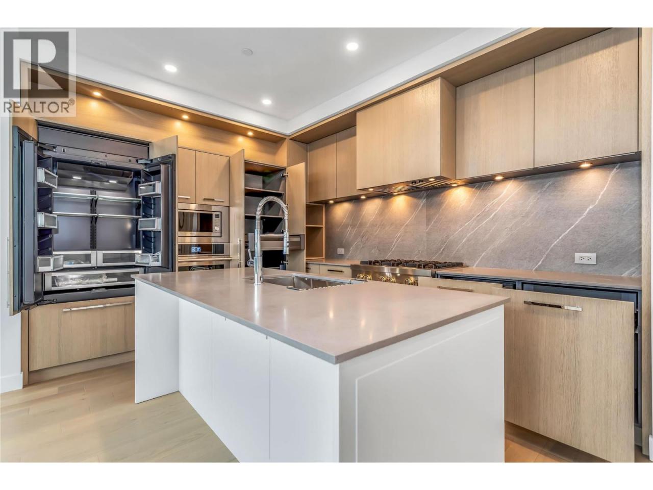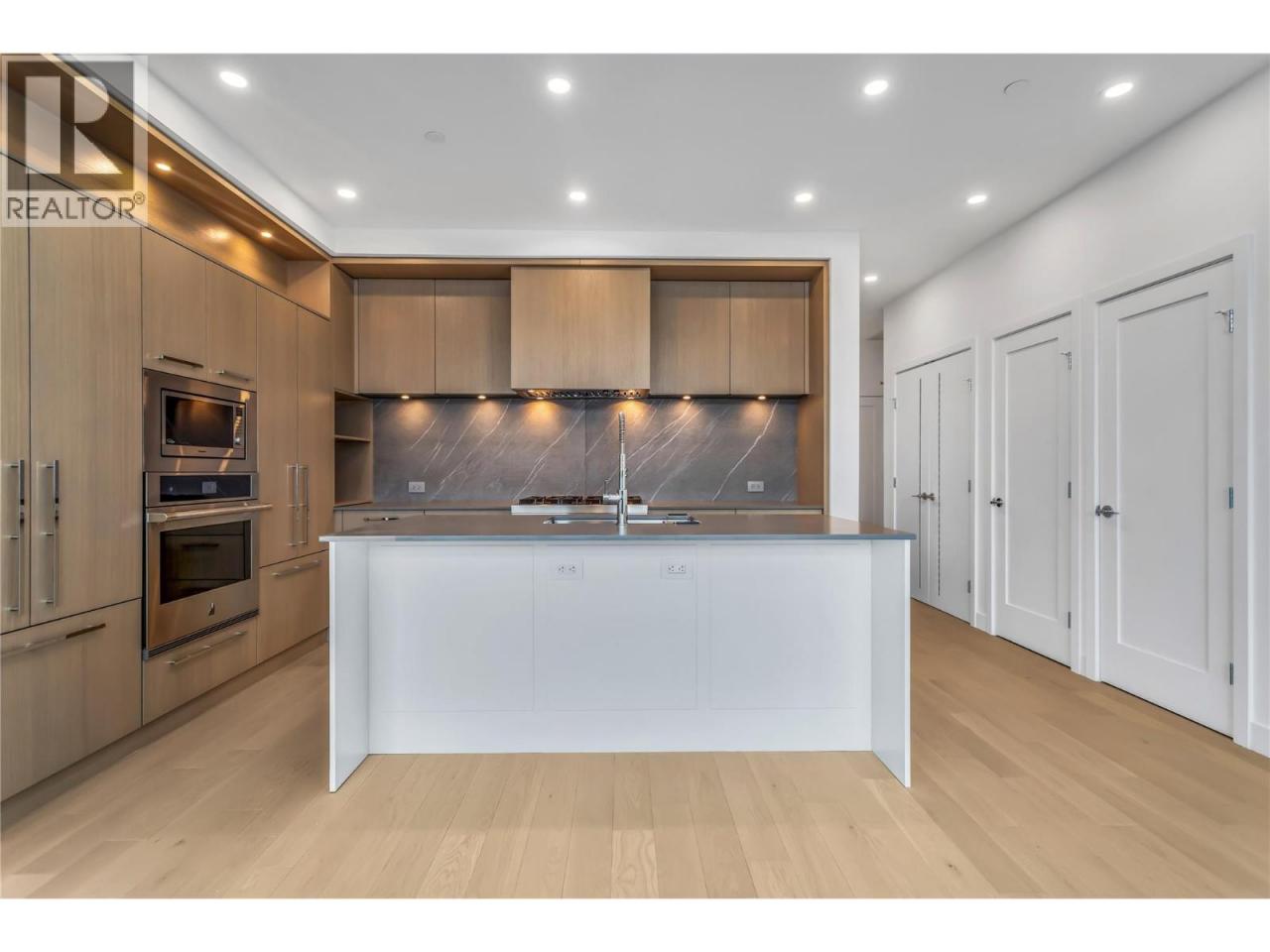 NEW LUXURY PENTHOUSE at CABAN | $40,000 IN UPGRADES. Experience the best of Kelowna’s beachfront lifestyle in the Pandosy Village, in one of the city’s most sought-after developments. This stunning 3 bed, 2.5 bath Penthouse features numerous upgrades plus impressive 1,400 sf private rooftop patio w/ HOT TUB, OUTDOOR KITCHEN and LAKE VIEWS - ideal for entertaining or unwinding in total privacy. Inside, enjoy the renowned ‘Cressey Kitchen’ with integrated Italian cabinetry, European hardware, soft-close drawers, porcelain slab backsplash, Jennair appliances, gas cooktop, wall oven, upgraded wine fridge, and smart storage solutions. Oversized windows and soaring ceilings flood the home with natural light, creating seamless indoor-outdoor living. The primary suite offers custom built-ins and a spa-inspired ensuite w/ double vanity & fully tiled walk-in shower. A generous second bedroom w/ its own ensuite - perfect for guests - while the oversized flex room provides versatility as a third bedroom (closet/no window), office, or media room. Additional features incl keyless entry, digital concierge, two secured parking stalls (one EV-ready) + a storage locker. Residents enjoy resort-style amenities: pool, hot tub, fitness centre, Himalayan salt sauna, yoga studio, and private cabanas. Located across from Gyro Beach in the heart of the Pandosy corridor, w/ exceptional walkability to cafés, dining, boutiques, and waterfront recreation. Luxury beachfront living at its finest. Shows AAA+ (id:6769)