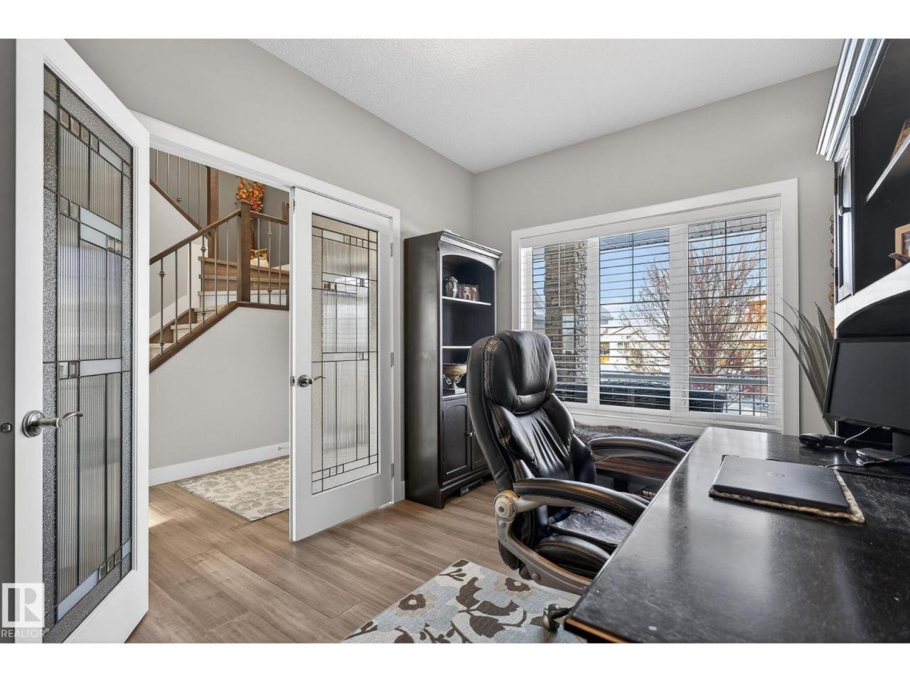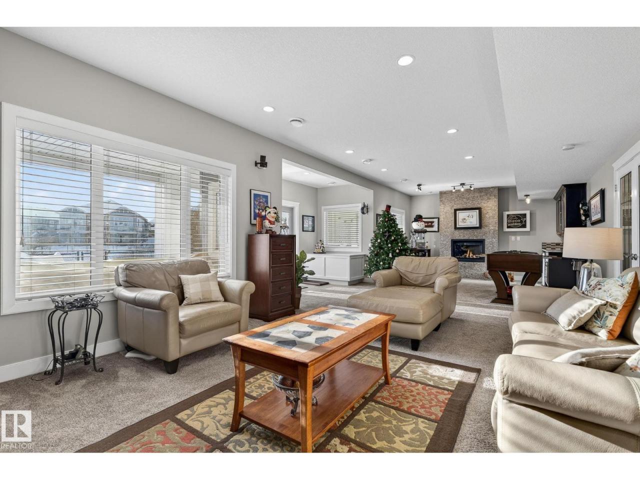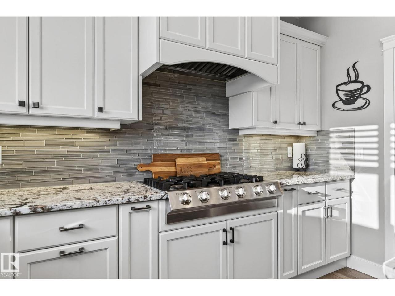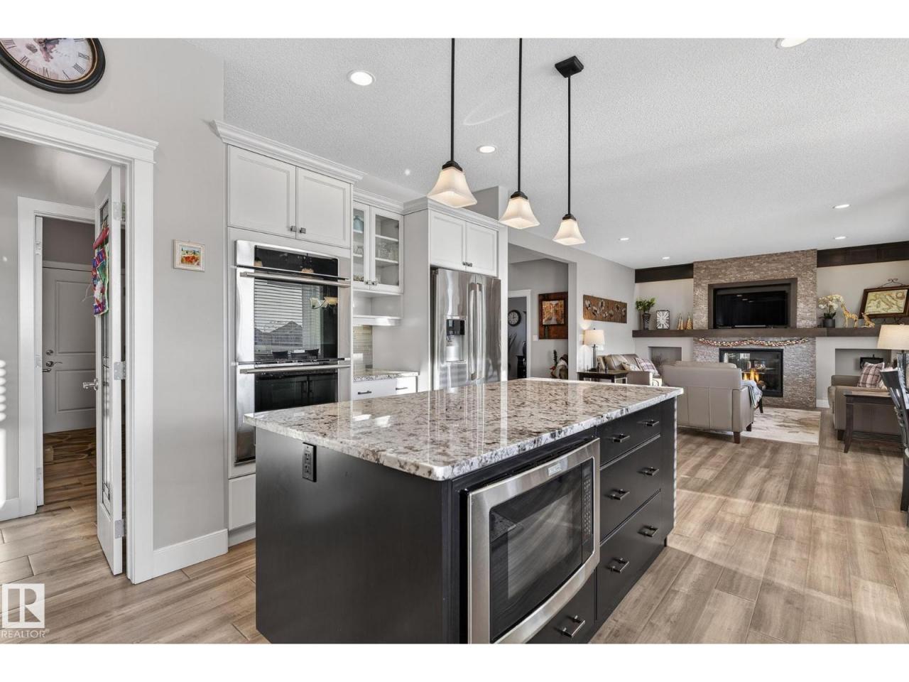 Tucked into a highly sought-after neighbourhood on a quiet cul-de-sac, this custom-built walkout home immediately stands apart for its craftsmanship and setting. Backing onto a tranquil pond and walking trails, the professionally landscaped yard with underground sprinklers is complemented by covered upper and lower decks designed for year-round enjoyment. The main floor boasts newer engineered hardwood flooring, a bright open layout with a dedicated office, inviting entertainment space, and a chef-inspired kitchen featuring a large island, gas cooktop, and two built-in ovens. Upstairs, generous bedrooms with walk-in closets—each with built-in organizers—plus a thoughtfully designed laundry room, and an expansive primary retreat with dual sinks, freestanding tub, and oversized walk-in closet provide both function and style. The fully finished walkout basement extends the living space with an entertainment area, wet bar, gas fireplace, and additional bedroom—perfectly balancing comfort and lifestyle. (id:6769)