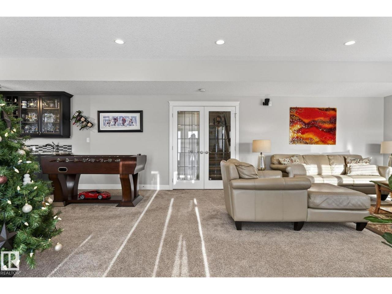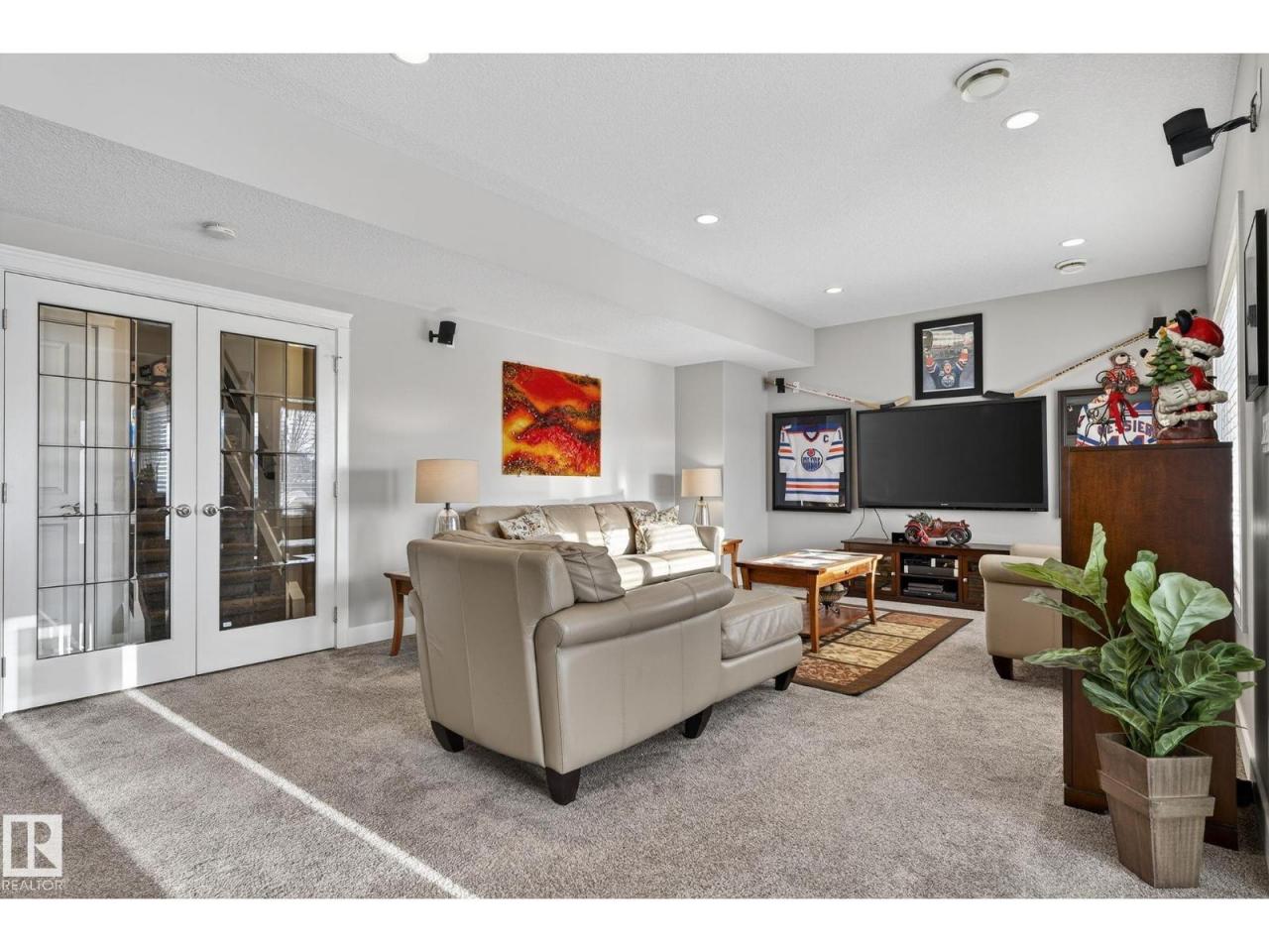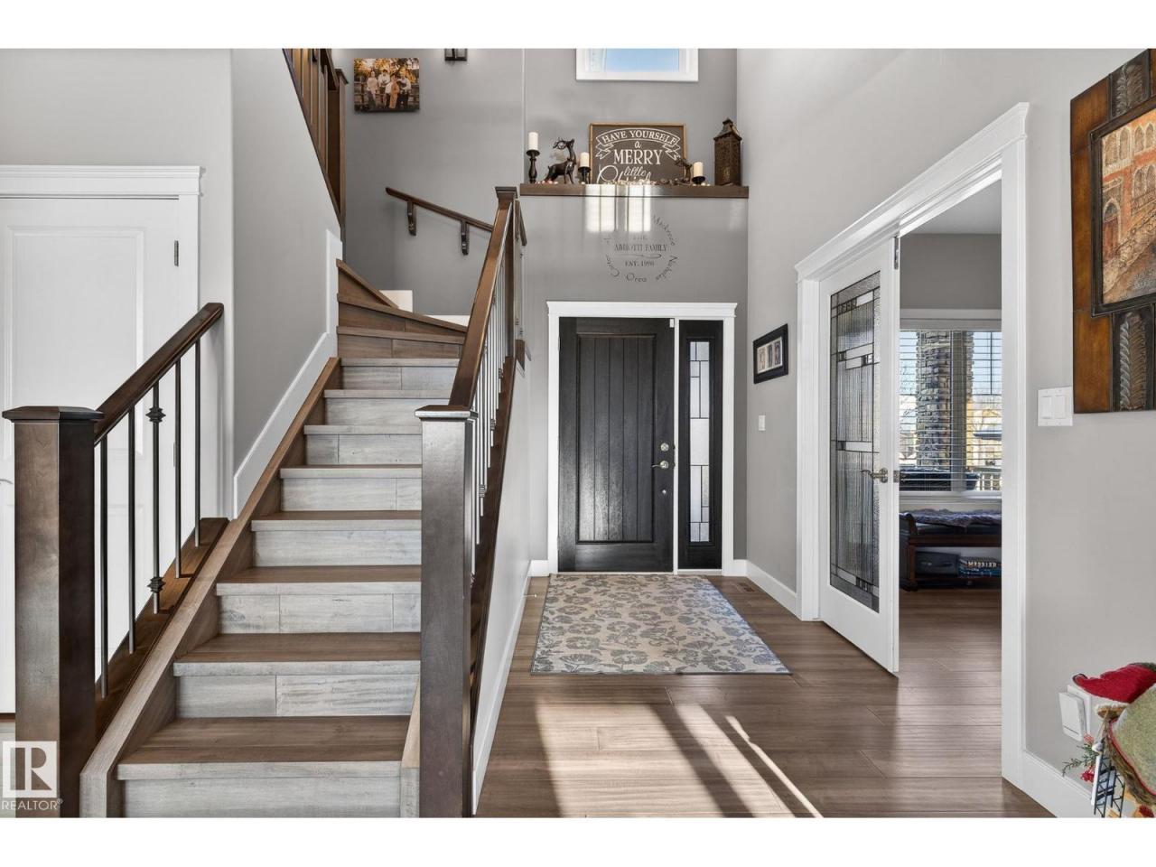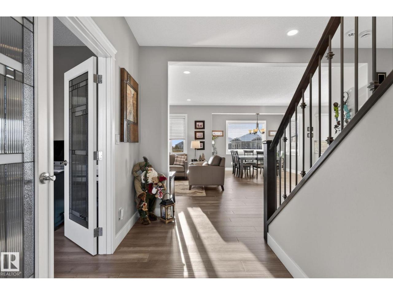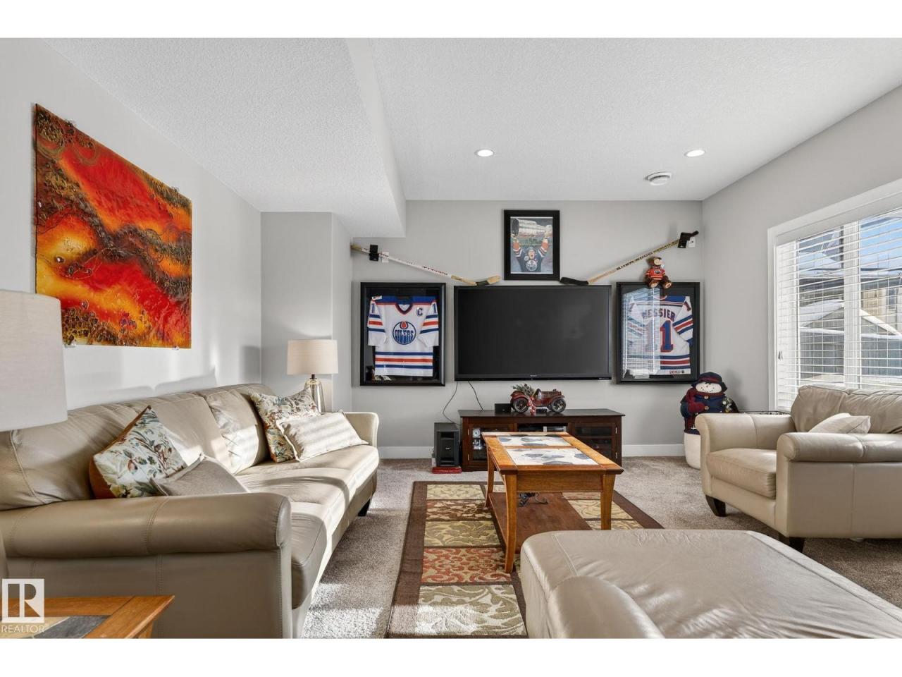 Tucked into a highly sought-after neighbourhood on a quiet cul-de-sac, this custom-built walkout home immediately stands apart for its craftsmanship and setting. Backing onto a tranquil pond and walking trails, the professionally landscaped yard with underground sprinklers is complemented by covered upper and lower decks designed for year-round enjoyment. The main floor boasts newer engineered hardwood flooring, a bright open layout with a dedicated office, inviting entertainment space, and a chef-inspired kitchen featuring a large island, gas cooktop, and two built-in ovens. Upstairs, generous bedrooms with walk-in closets—each with built-in organizers—plus a thoughtfully designed laundry room, and an expansive primary retreat with dual sinks, freestanding tub, and oversized walk-in closet provide both function and style. The fully finished walkout basement extends the living space with an entertainment area, wet bar, gas fireplace, and additional bedroom—perfectly balancing comfort and lifestyle. (id:6769)