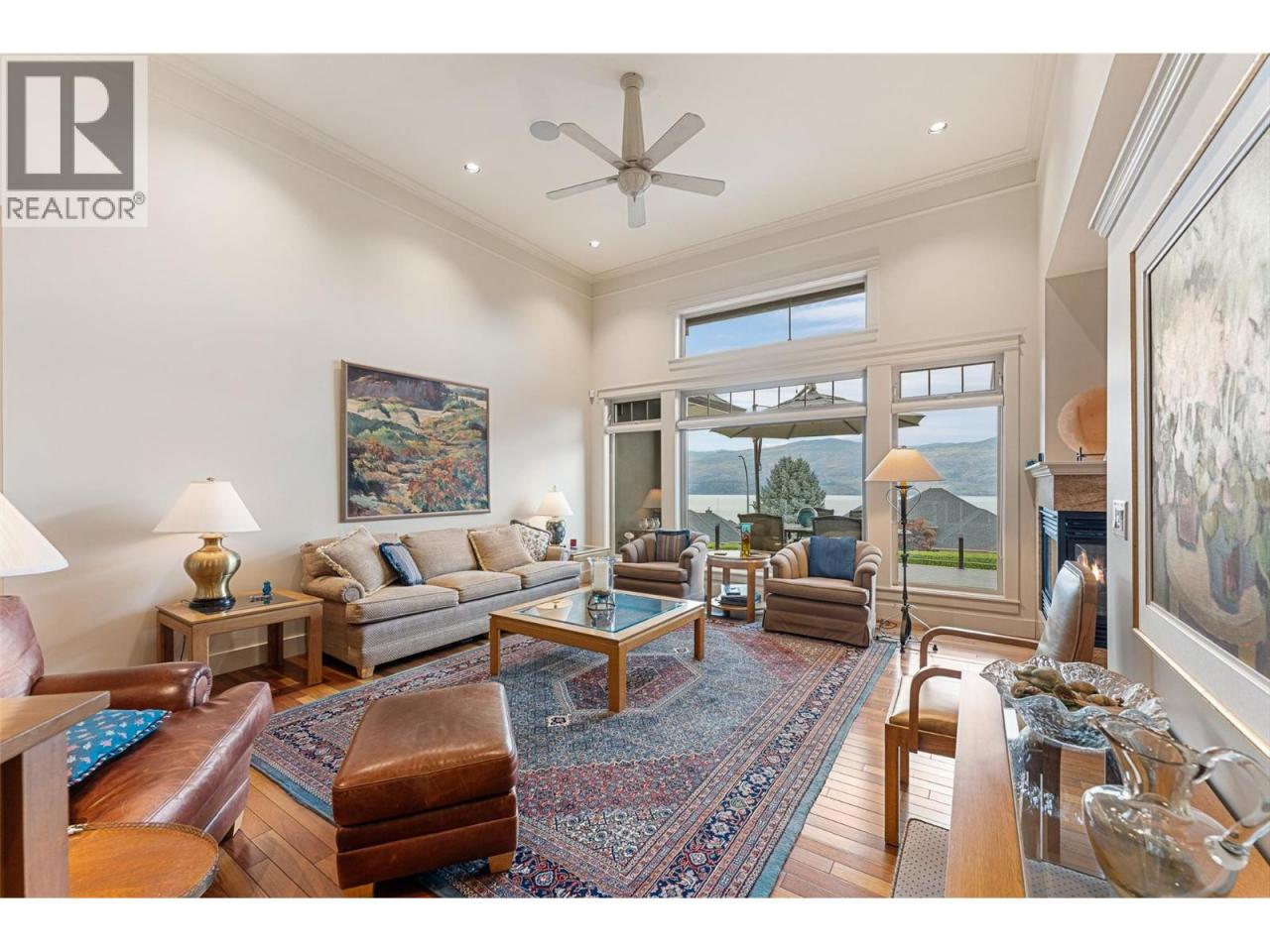 Set on a quiet private lane in Lakeview Heights, this beautifully designed walkout rancher captures sweeping lake, valley, and mountain views while offering exceptional space and versatility. Inside, the main level is filled with natural light, featuring high ceilings, warm hardwood floors, and large windows framing the lake at every turn. The open living and dining areas are anchored by a three-sided gas fireplace. The kitchen blends function and elegance with rich wood cabinetry, granite counters and backsplash, a generous island with seating, gas cooktop, premium appliances, and a built-in coffee machine. Step outside to the lakeview deck, perfectly suited for morning coffee or sunset dining. The main-level primary suite is a serene retreat with bay windows overlooking the water, a walk-in closet with custom built-ins, and a spa-inspired ensuite featuring heated floors, steam shower, jetted tub, and dual vanities. A dedicated office, powder room, and well-appointed laundry room complete the main floor. The walkout lower level offers remarkable flexibility with a rec room, wet bar, family room, bonus games room, home gym, workshop, wine cellar, and two additional bedrooms. Outdoors, the fully fenced backyard features covered & open patios and a hot tub—designed for relaxed Okanagan living. A double garage with extensive storage & a rare cargo elevator adds functionality to the home. This home is being sold turnkey with the exception of artwork- its move in ready! (id:6769)