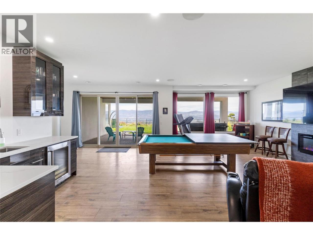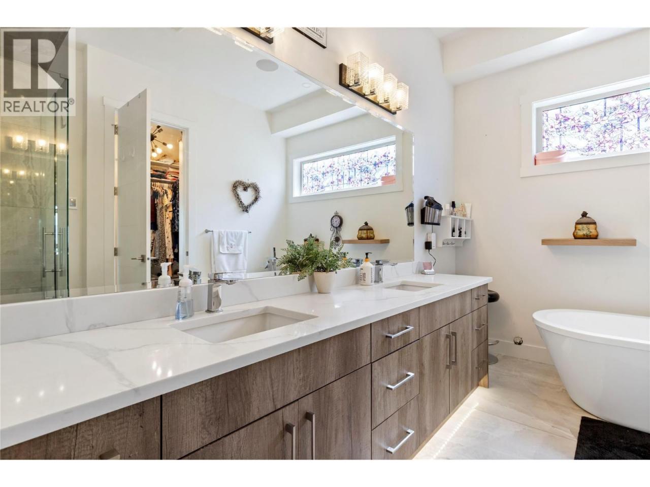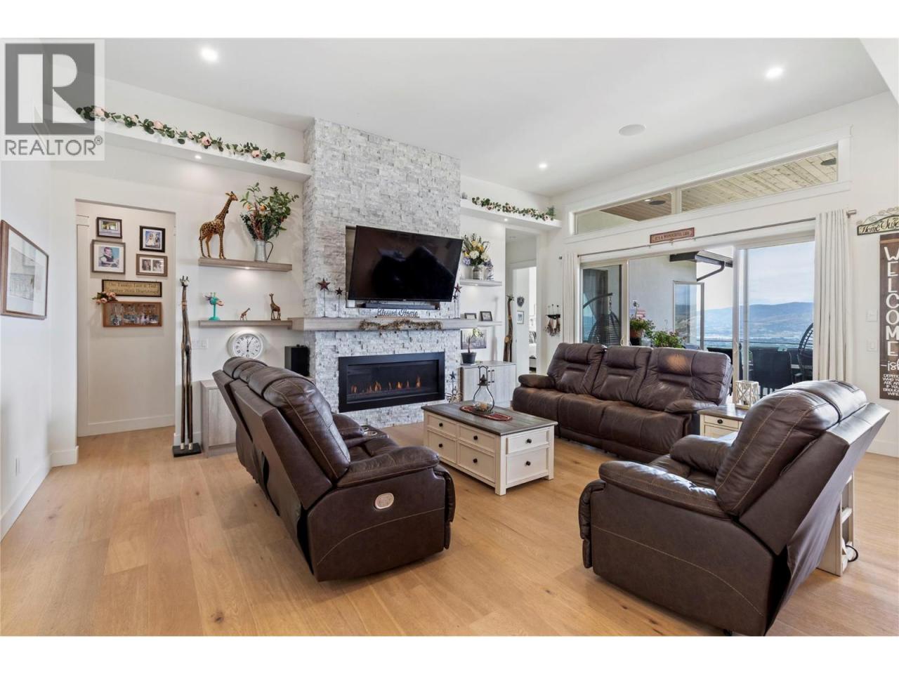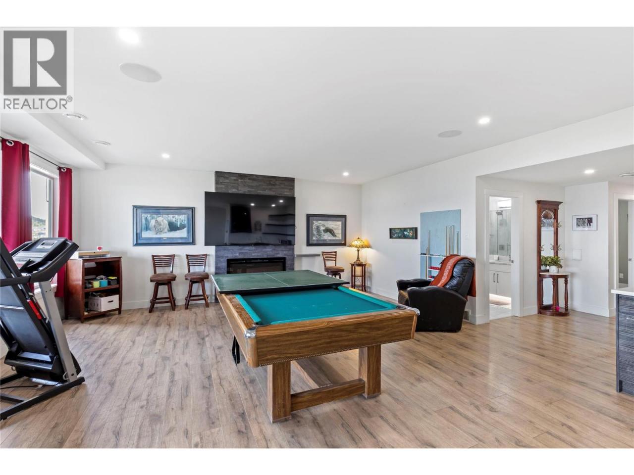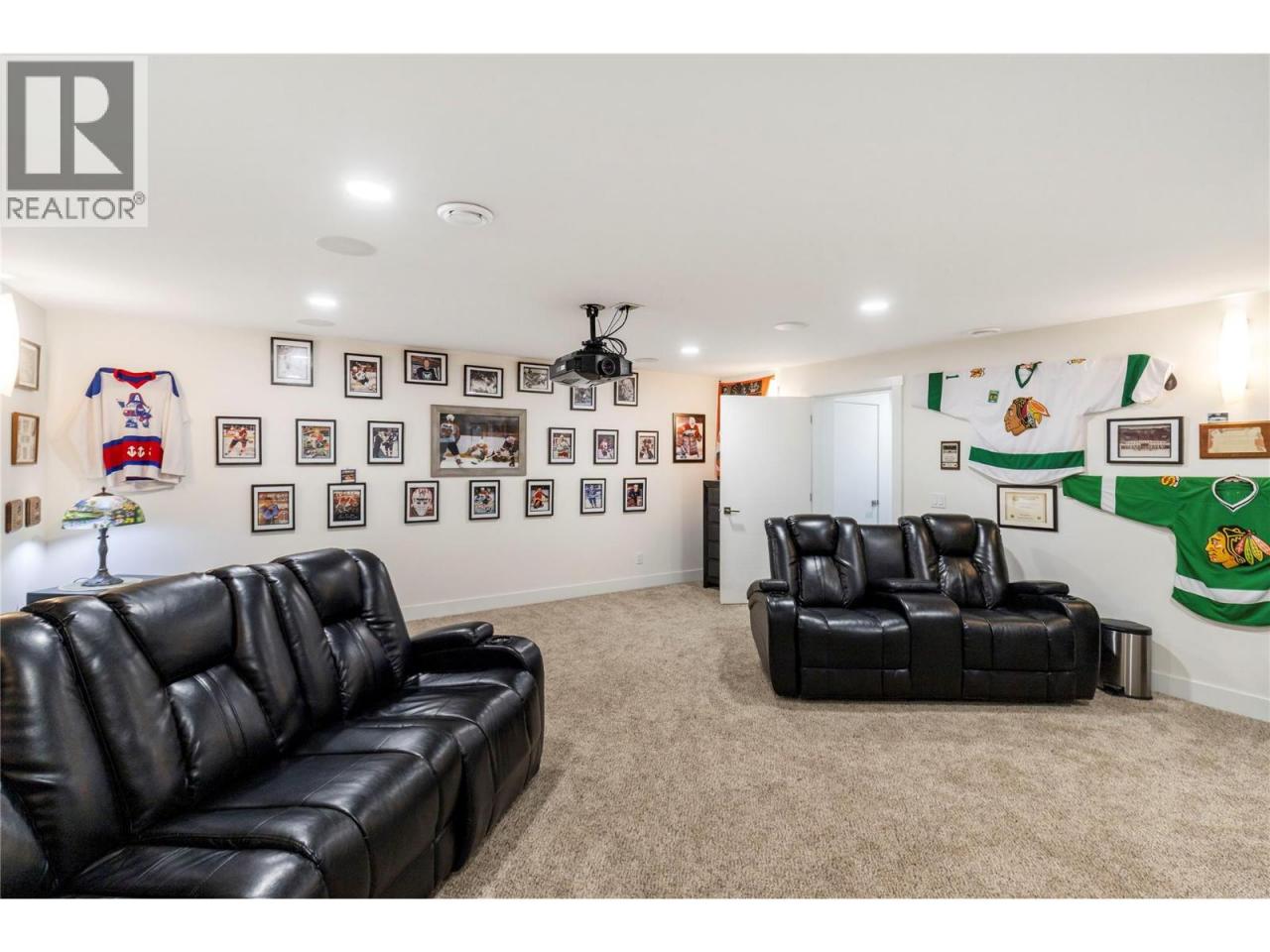 You are going to love the view from this beautifully designed walkout rancher in the sought-after Kirschner Mountain area. Offering 6 bedrooms and 5 bathrooms over 4,200 square feet, this home blends modern luxury with stunning lake and city views. Enjoy the breathtaking scenery the moment you walk inside. The main level features 3 bedrooms, 2 full bathrooms, and a half bath with in-floor heating. Highlights include high ceilings, a gas fireplace, hardwood floors, and an open-concept kitchen with stainless steel KitchenAid appliances. A large sundeck extends the living space outdoors, making it perfect for entertaining. The lower level includes 2 additional bedrooms, a full bathroom, a spacious rec room with a wet bar, and a fantastic soundproofed media room—ideal for sports and movie enthusiasts. There’s also a legal 1-bedroom suite with a private entrance and separate utilities, perfect for rental income or extended family. Additional features include central air conditioning, forced air and baseboard heating (electric and natural gas), a built-in vacuum, and a complete security system with surveillance cameras. The 0.24-acre lot offers a private yard with underground sprinklers and space for a pool. An attached double garage provides ample parking and storage. This is a high-quality home in a quiet, family-friendly neighborhood—ideal for comfortable living and entertaining. (id:6769)
