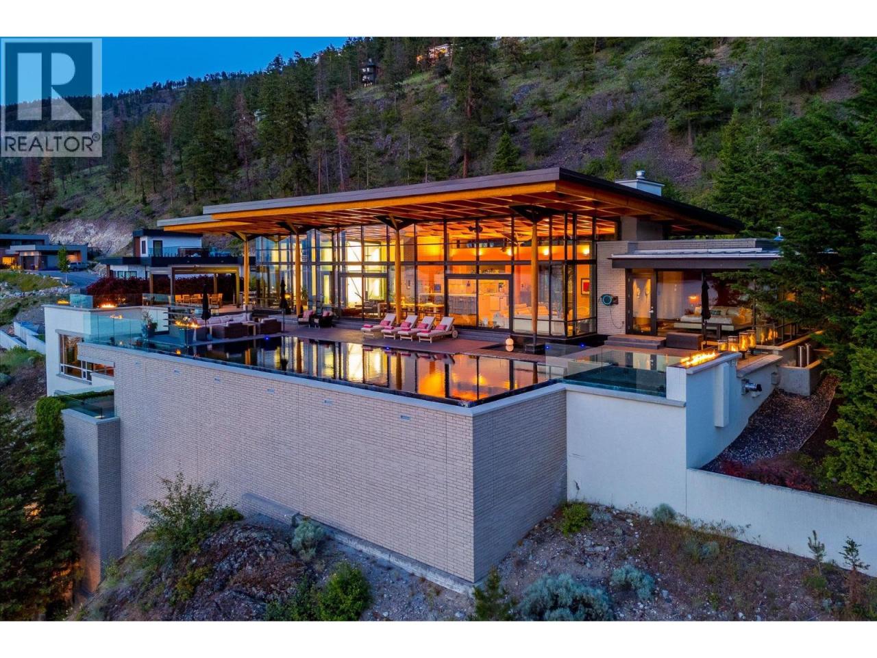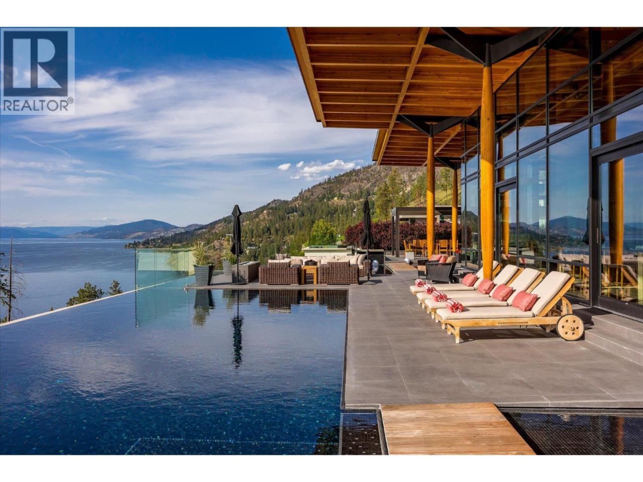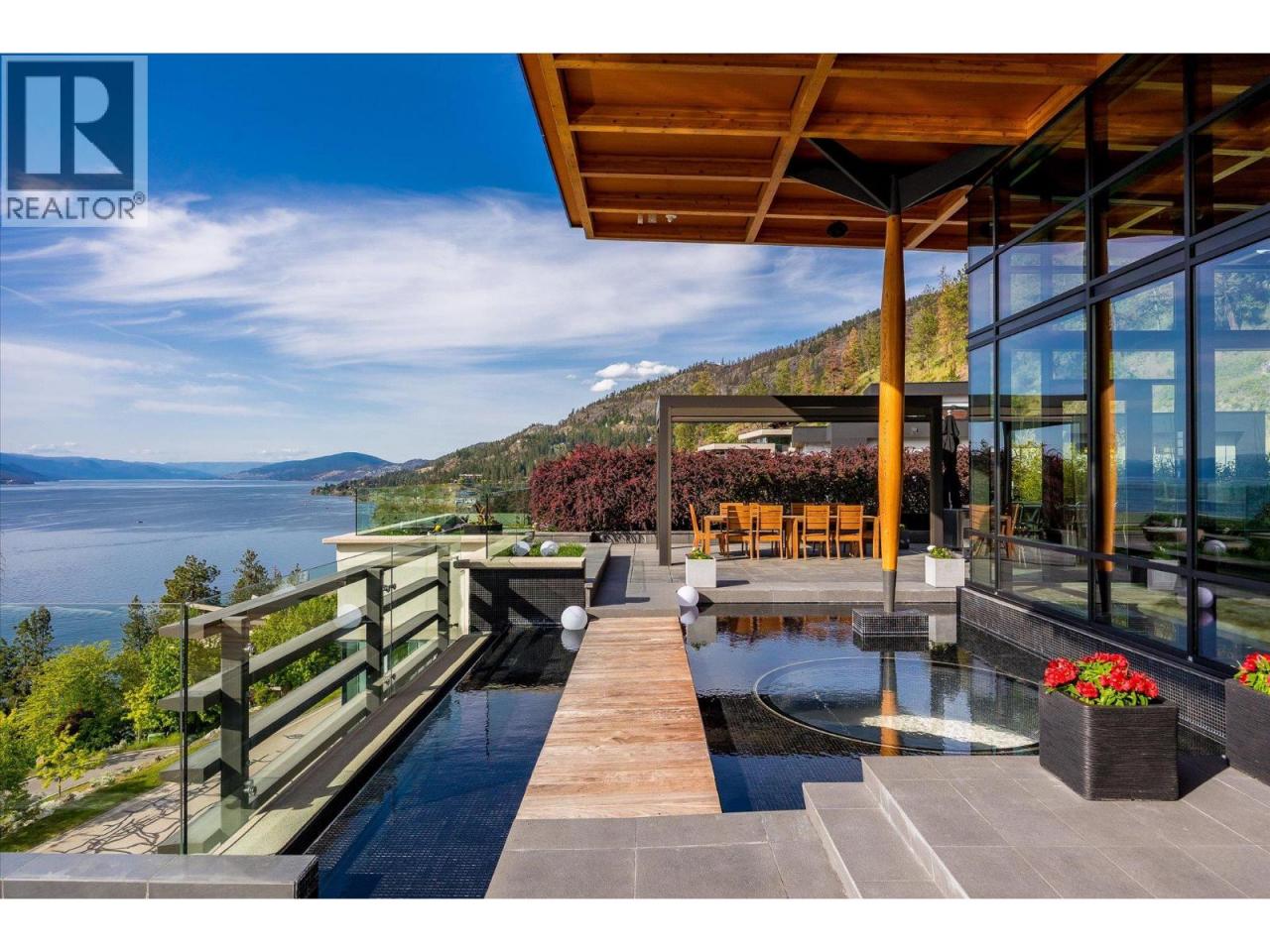 Luminescence, a distinguished Japanese Modern nestled in Sheerwater, Kelowna’s premier gated waterfront community. From the moment you arrive, Sheerwater distinguishes itself. It is a celebration of design, nature, and privacy - a sanctuary where life is lived with intention and distinction. Set on 2.15 acres, nineteen offers exclusive lakeside access with a private marina and unobstructed lake vistas. Its three-story Genkan foyer creates a calming transition from the outdoors. Crafted from concrete, brick, glass, and timber, the residence showcases open interiors filled with natural light. Water features inside and outside create a sense of serenity. The sun terrace, accessible from the great room and primary suite, offers stunning 180-degree lake views and romantic sunsets. Wider than the home itself, the terrace includes multiple outdoor lounge areas, an outdoor kitchen, numerous gas-lit fire features, and a pool deck that seamlessly flows into an infinity pool color-matched to Okanagan Lake. Inside, a series of rooms offer mesmerizing views of exterior water features through clear aquarium panels. Additionally, a lush and private courtyard is off the sunlit, professional-grade kitchen. Built to commercial standards, every detail reflects exceptional craftsmanship, exemplified by the two-story garage with a vehicle lounge, and a spacious passenger elevator. Recognized with awards for home design, primary suite, and luxury pool, Luminescence defines visionary. (id:6769)