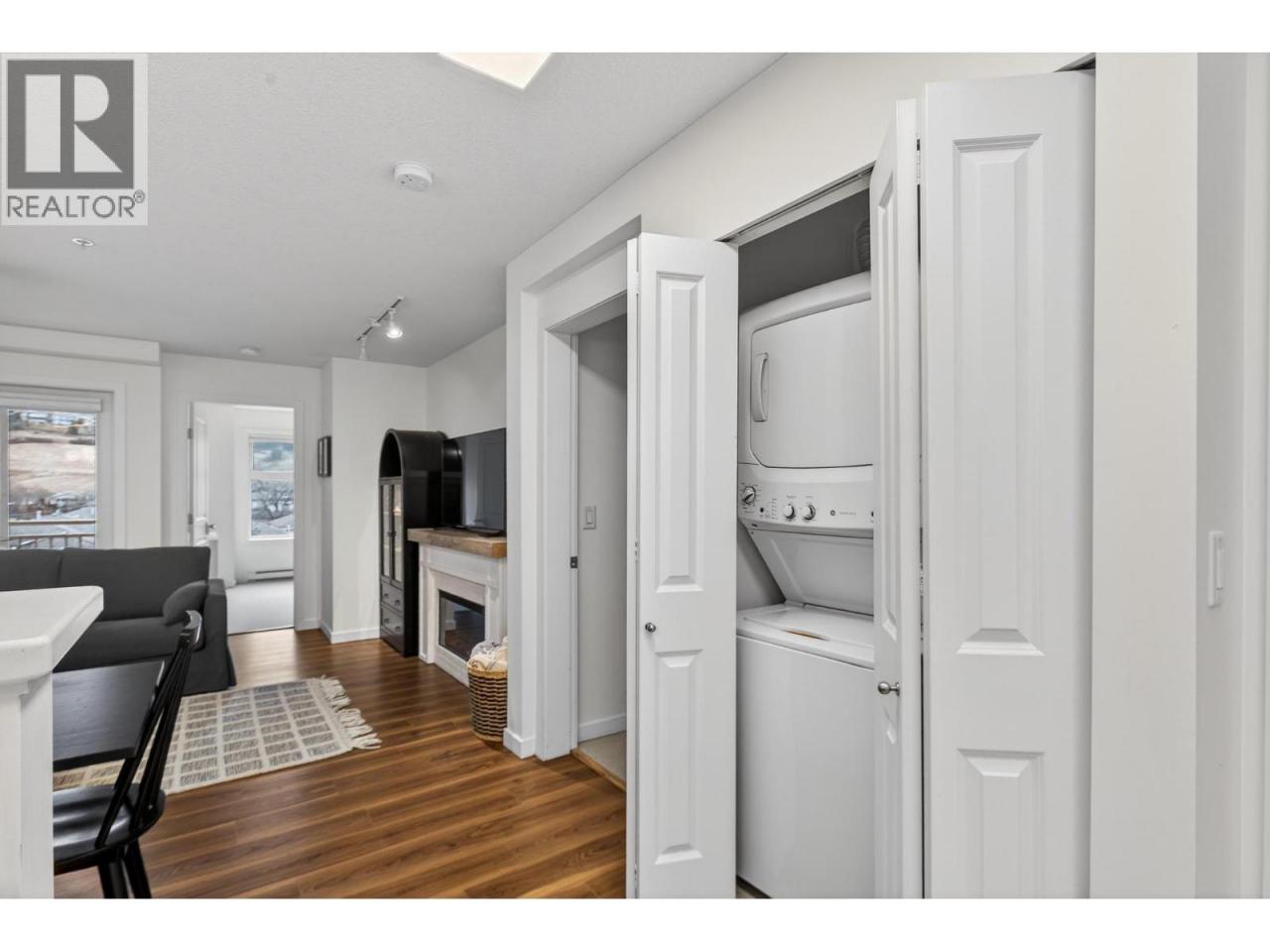 Welcome to The Verve, a vibrant and family-friendly community in the heart of Glenmore, surrounded by parks, trails, schools, shopping, and everyday amenities; all within a central, highly convenient location. This well-loved 2 bedroom, 1 bathroom 3rd-floor, east-facing home offers a bright and private layout with two patios, including a peaceful outdoor space directly off the primary bedroom. Thoughtfully updated, the unit features new stainless steel appliances, modern light fixtures, and a new heating and cooling unit, ensuring comfort and efficiency year-round. The spacious primary bedroom includes a walk-in closet and in-suite stackable washer and dryer, while the second bedroom is ideal for a child’s room, home office, or guest space. The home shows beautifully and has been clearly cared for with pride. Residents of The Verve enjoy resort-style amenities including an outdoor pool, beach volleyball courts, and plenty of green space—perfect for families and active lifestyles. The unit also includes one parking stall and one storage locker. A fantastic opportunity to own in one of Kelowna’s most sought-after, centrally located communities. (id:6769)