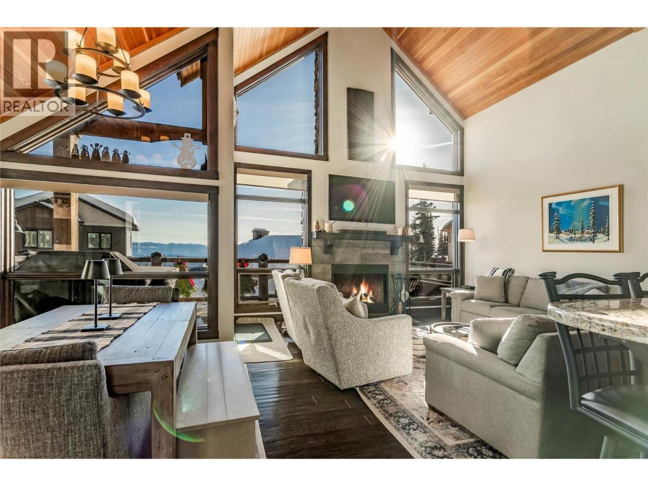 MORE PICTURES COMING SOON! Located in Grizzly Ridge at Big White Ski Resort, this true classic ski chalet delivers timeless alpine character paired with thoughtful, high-end upgrades throughout. Originally built as the show home, the residence showcases superior craftsmanship, refined design, and premium finishes rarely found on the mountain. The home has never been rented with 1 owner and presents in exceptional condition. The main living level features two large bedrooms, each with its own ensuite and one with a gas fireplace for cozy nights, while the upper level offers two additional spacious bedrooms complemented by a full bathroom. In total, the home includes 3.5 bathrooms, all with heated floors and a large steam shower in the main primary, providing comfort and functionality for families and guests. The former garage has been converted into a family room and ski/mud room with in floor radiant heat, adding approximately 375 sq ft of valuable living space (not included in finished measurements and easily converted back to a garage if desired). The main living area is anchored by vaulted ceilings, a chef’s kitchen and a WETT-certified wood-burning fireplace, creating an inviting chalet atmosphere. Additional highlights include views of the Monashee Mountain range through the floor to ceiling windows, a wine cellar, a loft, and a generous private patio with hot tub. Low strata fees complete this standout Grizzly Ridge offering. Furniture is negotiable. (id:6769)