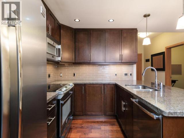 Enjoy tranquil river and greenspace views from this beautifully appointed, FULLY furnished 934 sq. ft. condo at Unit 103-32 Waterfront Place. This bright and upscale home features high ceilings, a spacious primary bedroom, a versatile den, and a well-designed layout that includes a laundry and utility area. The modern kitchen is finished with quartz countertops accented with Labradorite, stainless steel appliances, hardwood cabinetry, under-cabinet lighting, and a convenient eating bar. The stylish bathroom offers quartz counters, a walk-in shower, and a separate soaker tub for added comfort. Step outside to a private 272 sq. ft. partly covered deck overlooking the river and greenspace, complete with a hot tub that's included with the unit. Additional highlights include a security system, one underground parking stall, and a storage locker. Located in the heart of downtown, this condo is just steps from shopping, restaurants, and the scenic waterfront trail system. (id:6769)