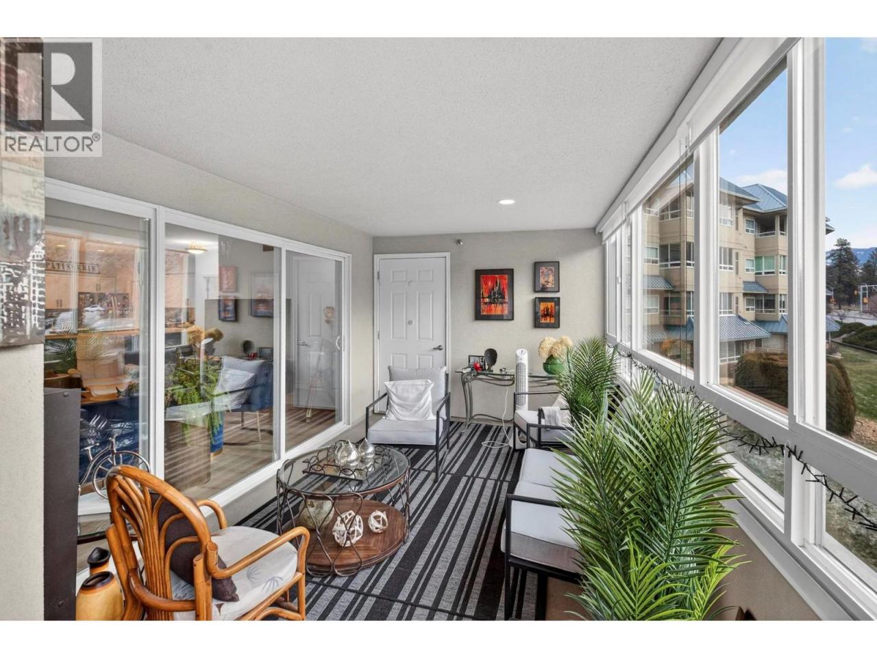Vacant and ready for immediate possession!! Welcome to Unit 211 in Bristol Gardens, offering spacious condo living in one of Kelowna’s most walkable and convenient central locations. This beautifully updated home features over 1,300 sq/ft of bright, functional living space with a layout that feels more like a house than a condo. The floor plan includes two well-sized bedrooms separated by a large open living and dining area, plus a versatile den ideal for a home office or guest space. The kitchen offers quartz countertops, new stainless steel appliances, ample cabinetry, generous counter space, and a raised eating bar perfect for casual dining. Both bathrooms feature quartz counters, and the entire unit has been newly painted, creating a fresh, move-in-ready feel. The primary bedroom includes a full 4-piece ensuite. A dedicated laundry room with side-by-side washer and dryer, utility sink, and extra storage is a rare bonus. Enjoy year-round use of the enclosed sunroom with access from both the living room and primary bedroom, ideally positioned for privacy. Residents enjoy a stand-alone clubhouse, workshop, car wash bay, secure underground parking, and storage. This unit includes one underground parking stall and a generous storage locker. Central heating and air conditioning provide year-round comfort, one small pet is permitted, and rentals are allowed with restrictions. Steps to shopping, restaurants, Costco, Superstore, Orchard Park Mall, and Mission Creek Greenway. (id:6769)