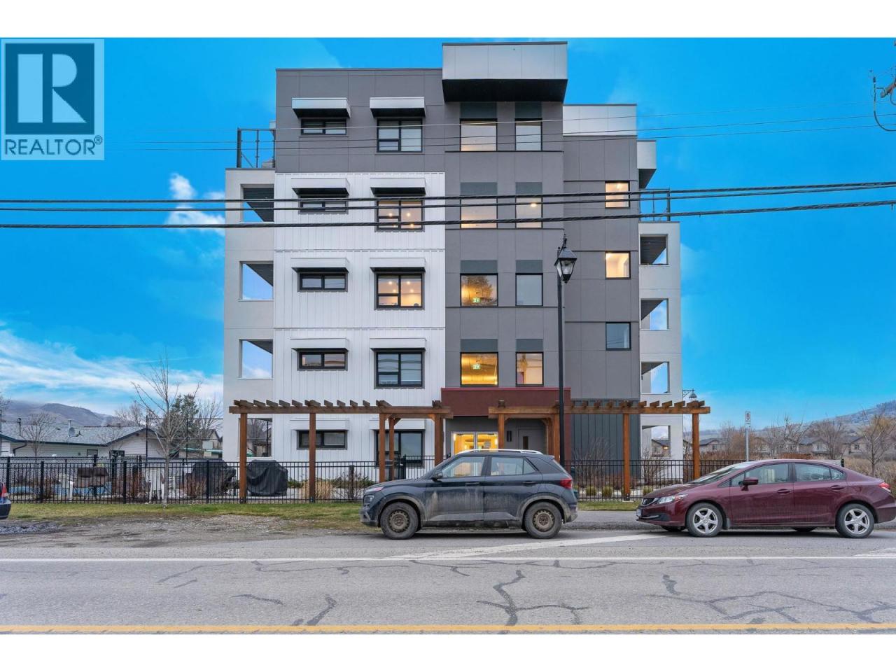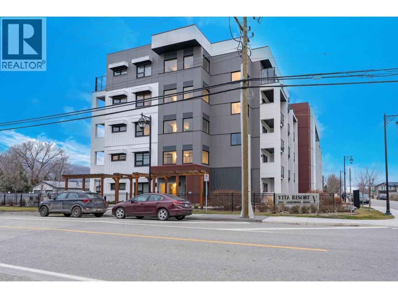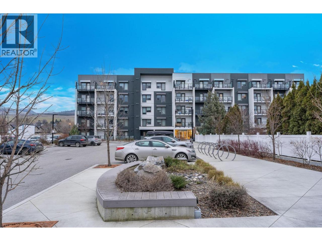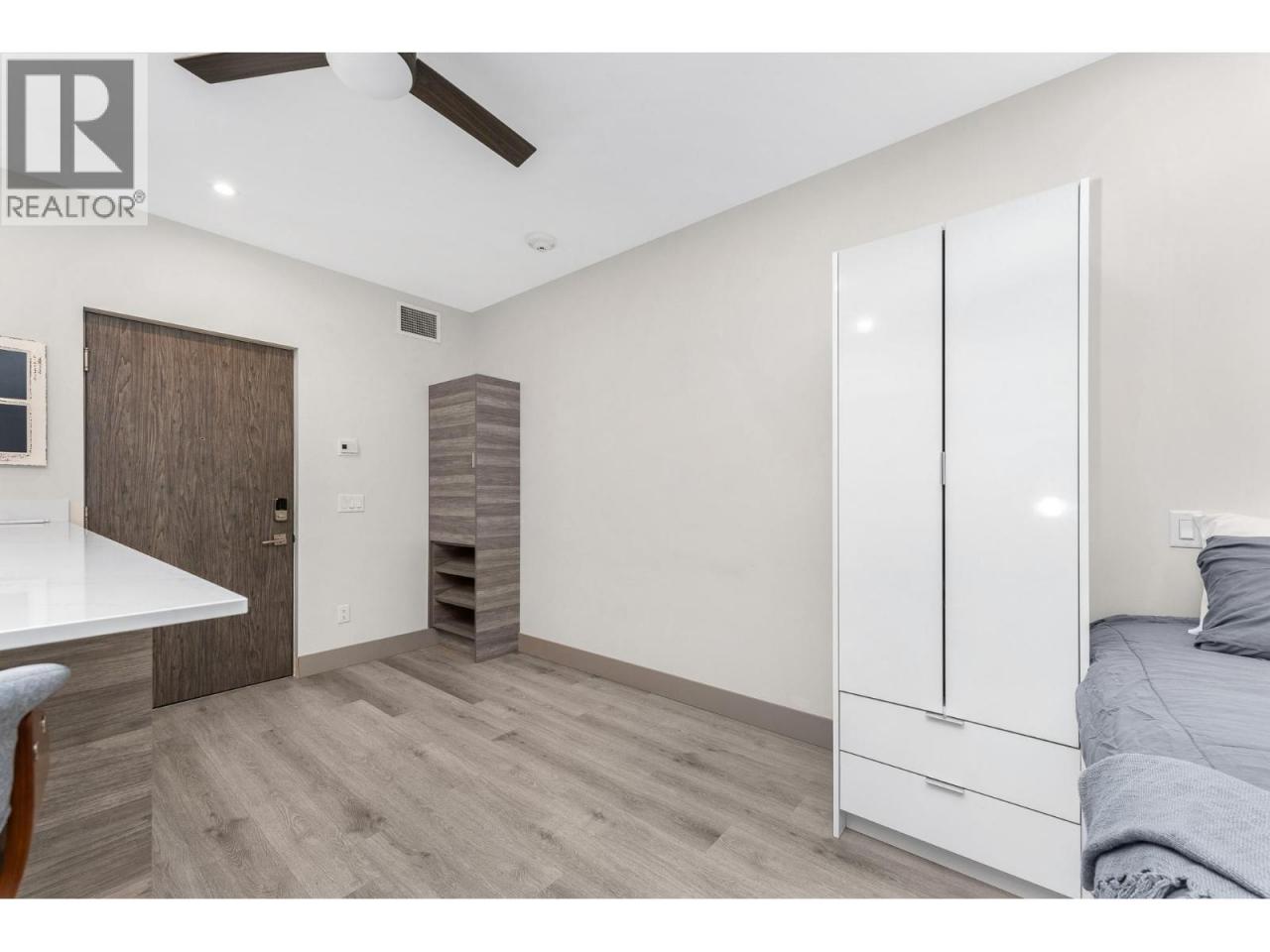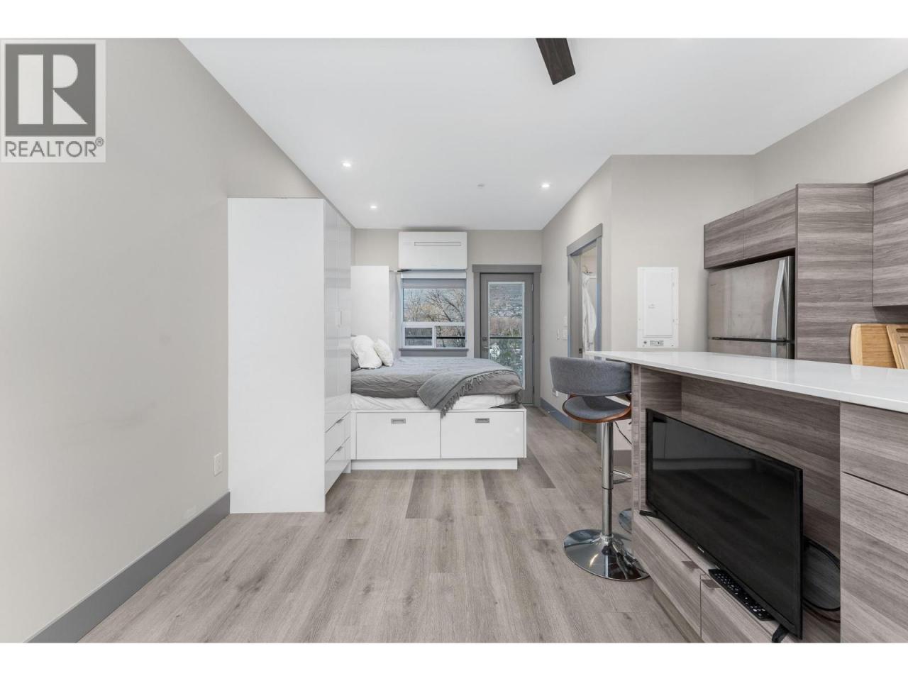 A pied-a-terre, a get-away location for summer and winter fun or an early toe-hold in the exciting world of home ownership -- this affordable and incredibly well designed micro unit is a great consideration. Built in 2021 just across the road from a well-kept public beach (Kin Beach) this development features a pool, gym, pickle-ball courts, community BBQ and EV charging stations. Inside, the Unit comes with everything you need to live - bedding, dining and kitchenware etc. Practical vinyl plank flooring, an awesome King size bed and cleverly designed storage. You have in-suite laundry with the latest in small space convenience - a washer-dryer combo designed to wash and dry clothes in the same drum! And then for bigger loads there is a coin operated laundry unit on the 3rd floor. The only thing inside this unit doesn't have is a sofa because the tenant said the original wasn't comfortable! So now all you need to do is invest in your own comfortable sofa and you have a truly compact and functional home! In addition, there is a 6'x4'x6' locker conveniently located on the same floor. Outside you have north-west facing massive deck (14'x 4'6"") with beautiful lake views for those summer evenings. And … the strata fees are reasonable at $282 per month. Oh and one more important thing -- unlike nearly every condo in Vernon, the Vita allows short term rentals -- see supplement for details. (id:6769)