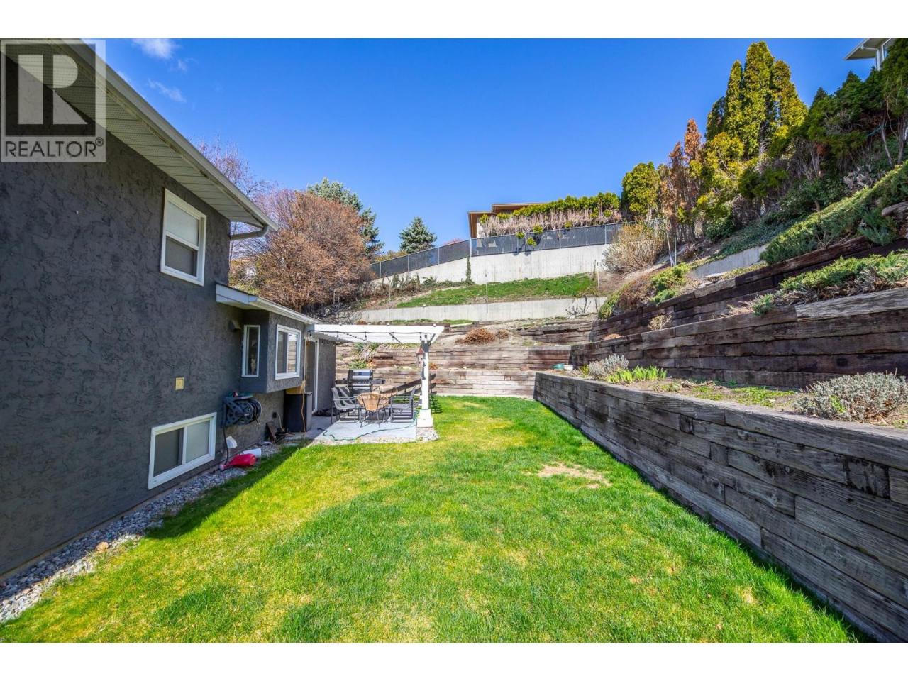 Welcome to this beautiful 3-bedroom, 2-bathroom family home located in the highly desirable Wiltse area of Penticton. Tucked away at the end of a quiet cul-de-sac, this home sits on a generous 0.23-acre fully fenced lot offering exceptional privacy with tall, terraced gardens. The upper-level features three generously sized bedrooms, while the lower level includes a large versatile room that could easily function as a bonus bedroom, home office, or recreation space. The bright living room is warmed by a gas fireplace, and the spacious kitchen offers direct access to the backyard through double sliding doors—perfect for entertaining and family living. Step outside to enjoy the private backyard complete with a beautiful pergola-covered patio and a large storage shed. The double car garage is fantastic for many possibilities from a home gym, storage for toys and additional parking. There have been upgrades in the last few years. 2022 hot water tank was replaced, repainted living room, tree removal, 2023 carpet replaced in master and guest room, and sump pump installed in crawl space. Most of the home has been repainted. Booked your private showing today (id:6769)