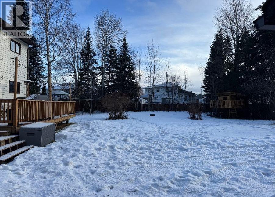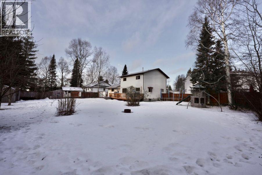 Spacious six-bedroom, three-bathroom home situated on a quiet cul-de-sac on a rare 0.32-acre pie-shaped lot. Enjoy privacy and greenery with mature apple trees, a large fully fenced yard with backyard access, and an extra-large deck—perfect for entertaining or relaxing outdoors. Bright open-concept kitchen with eating area, plus a separate formal dining room. The generous layout offers flexible living space for growing families, home offices, or guests, all in a peaceful neighborhood setting. Large two-bay garage with nine-foot doors offers excellent storage, along with an additional storage shed. Ideal family home within walking distance to the Hart shopping center. All measurements are approximate, buyer to verify if deemed important. (id:6769)