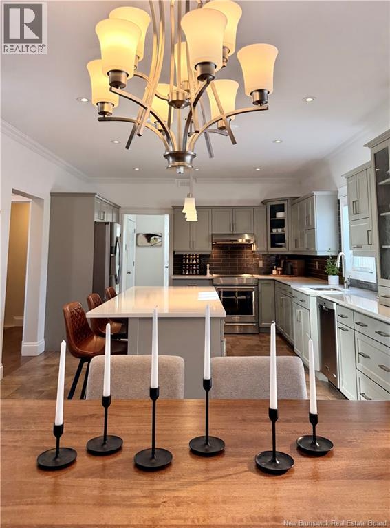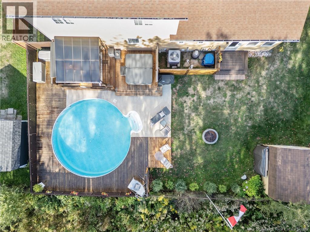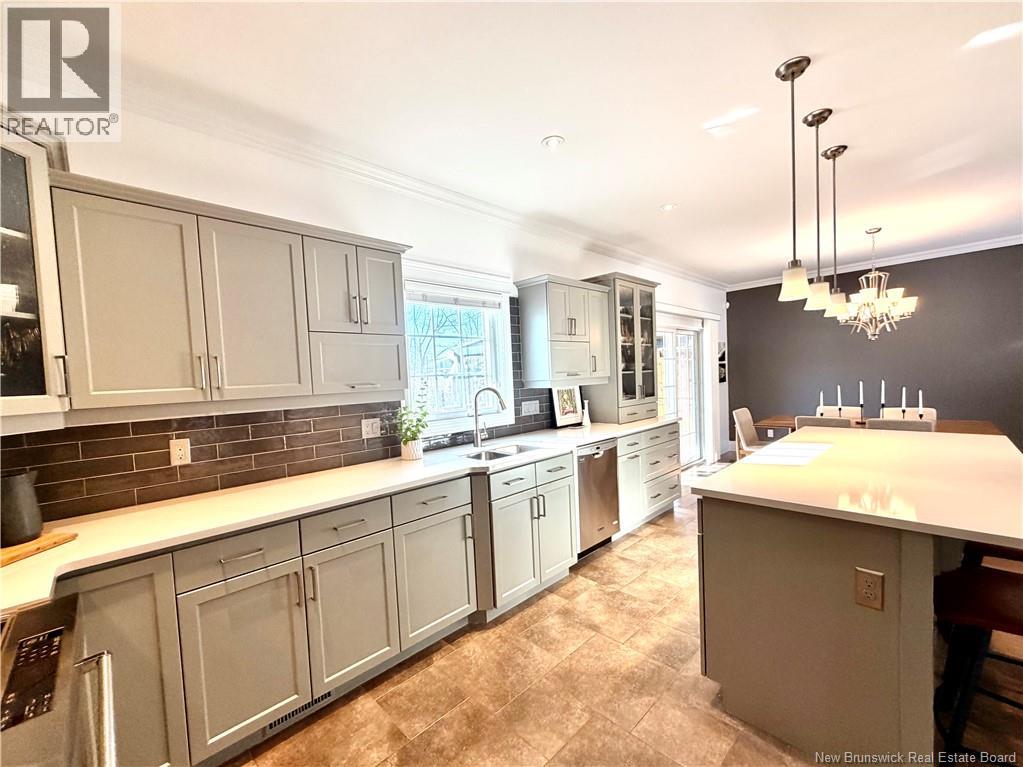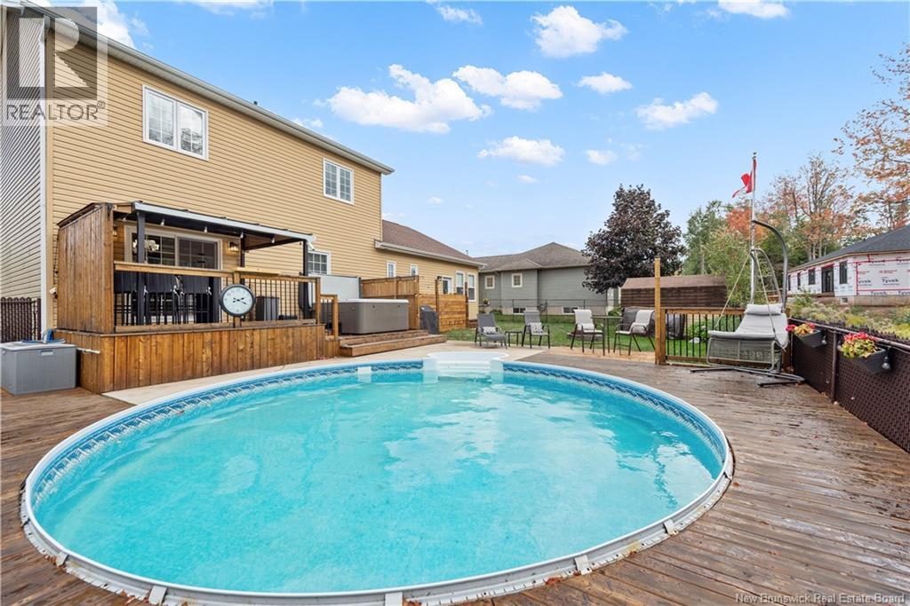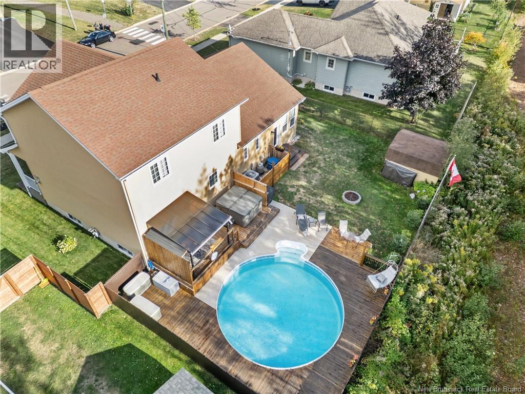 165 Erinvale is a spacious two-storey 3 bedroom home in the desirable Grove Hamlet subdivision, close to schools, parks, and amenities. The entire interior was freshly repainted last year, giving the home a bright, updated feel throughout. The main level offers a large kitchen with quartz countertops, an extra-large island with generous stone surface and a brand-new KitchenAid induction range. A bright dining area, powder room, fully updated laundry room with new washer and dryer and a beautiful sunroom overlooking the backyard complete this level. The living room features a natural gas fireplace with a stone accent wall, and the double garage provides excellent storage and convenience. The home is also equipped with central air and an owned on-demand natural gas hot water heater and natural gas furnace. Upstairs, youll find three bedrooms and two full bathrooms, including the primary suite with a walk-in closet and updated ensuite. The finished basement includes a spacious TV/games room with in-floor heating, a spare bedroom, and a newly added half bath. Outside, the home offers a new composite front veranda, a fully fenced backyard, a saltwater pool and a brand-new hot tub. Bathrooms throughout have been updated with new cabinets, counters, and sinks, creating a perfect combination of comfort, function and style in one of Monctons most popular neighbourhoods. (id:6769)