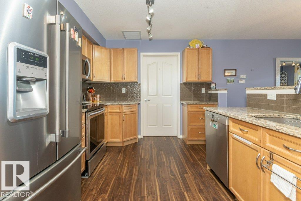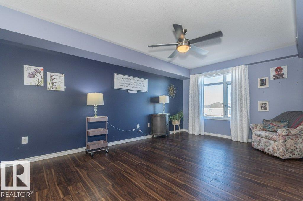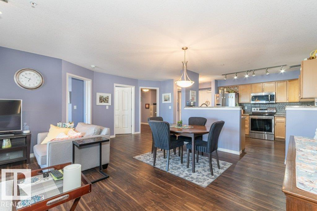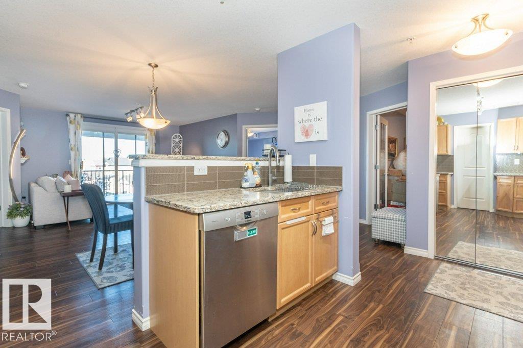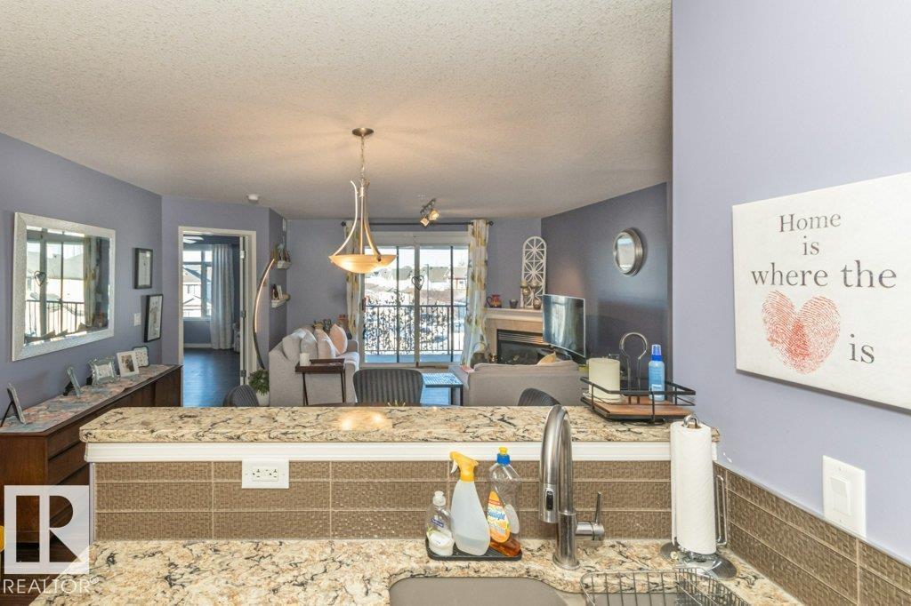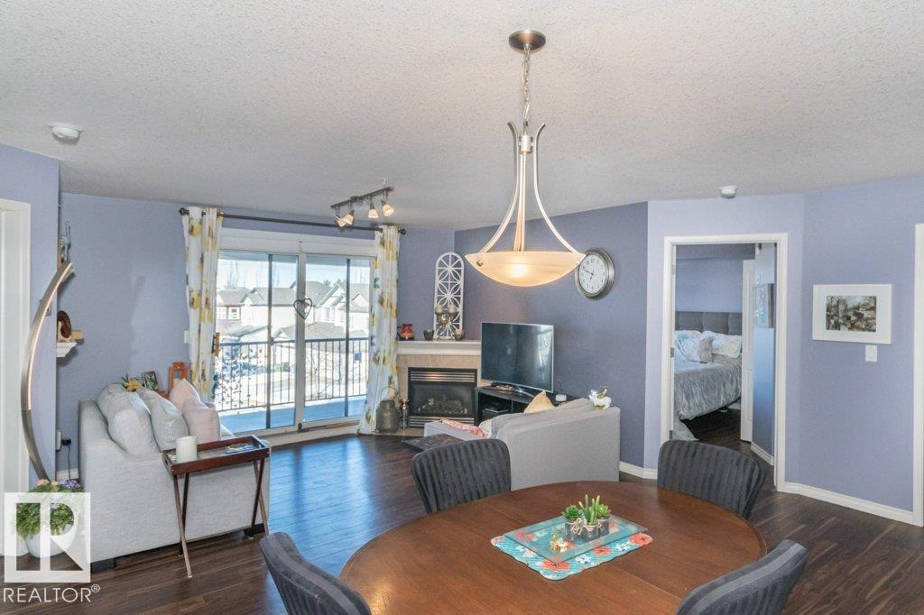 Welcome to Glastonbury Village, an established adult living (18+) community conveniently located on Edmonton’s west side steps from public transportation, parks, trails, shopping and more! The building welcomes you with a grand foyer that leads to the social room on the main level, and up the curved stairs to the guest suite + fitness room on the 2nd level. This updated and loved home feat. a very desirable 2 bdrm PLUS den layout! Home features include an open plan w/updated vinyl plank floors, warm colours, and renovated kitchen w/newer SS appl. (inc. full-size fridge), updated cabinets, stone counters + tile backsplash. There are 2 bdrms that are a very nice size, with the master suite featuring his + her closets and a 3pc ensuite w/large walk-in shower. Completing the plan is a spacious living/dining area w/corner gas F/P, den/office + laundry/storage room. West facing balcony with sunset and community views. Home comes with A/C, 1 titled U/G parking stall and storage cage. Well managed building. (id:6769)
