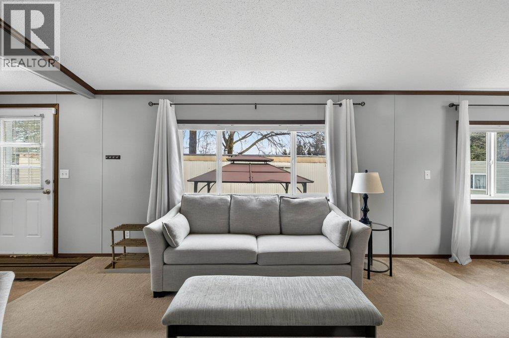 Pride of ownership is evident inside and out of this well-maintained, single owner 2 bed, 2 bath Eagle Homes manufactured home in Evergreen Mobile Home Park. The bright, open kitchen offers generous counter space, abundant cabinetry, and a functional peninsula layout that flows seamlessly into the dining and living areas, perfect for everyday living and entertaining. Large windows throughout invite natural light and create a warm, welcoming atmosphere. The spacious primary bedroom features a walk-in closet and full 4-piece ensuite, while the thoughtful layout provides comfort and privacy. A dedicated laundry/mudroom entry adds everyday convenience and storage. Neutral finishes and clean lines make the home move-in ready while offering a great canvas for personal style. Outside, enjoy the included gazebo, an inviting space to relax or host guests, plus a low-maintenance yard ready for your landscaping vision. Evergreen Mobile Home Park is a well-cared-for, owner-oriented community designed to support quiet enjoyment and pride of ownership. Pets are welcome with park approval and size guidelines, helping maintain a respectful neighborhood environment. Conveniently located close to schools, the college, arena, and shopping, this home offers both accessibility and lifestyle. Quick possession available, an excellent opportunity to enjoy comfortable Shuswap living in a friendly community setting. (id:6769)
