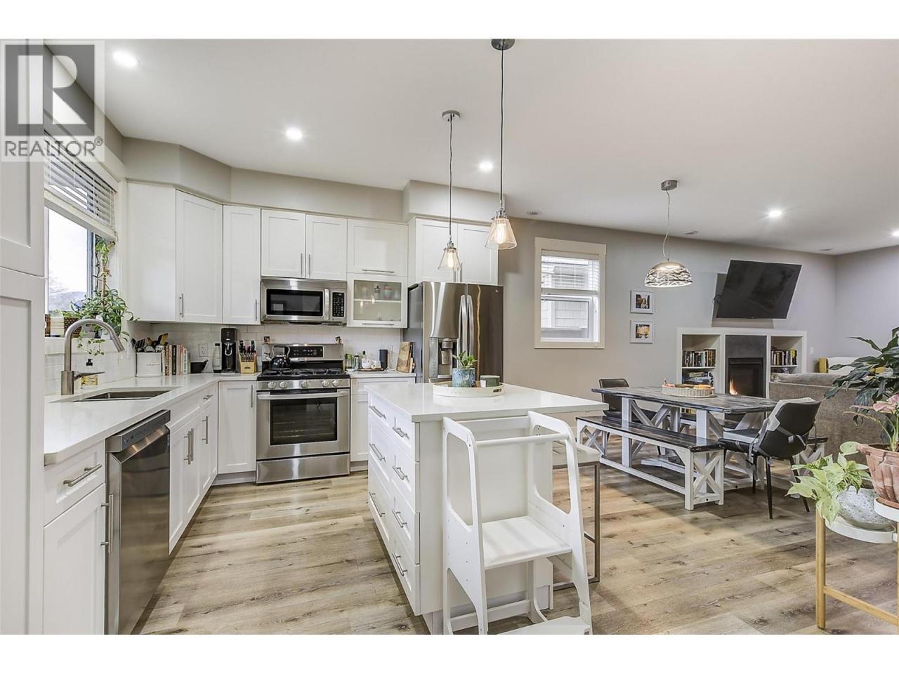 Experience relaxed, connected Kelowna living in this beautifully maintained townhome crafted by Maraine Construction. Thoughtfully designed with a warm, modern aesthetic, the home offers an inviting atmosphere from the moment you step inside. Sunlit living spaces create an easy flow for daily life—perfect for quiet mornings, relaxed evenings, or hosting friends in comfort. The kitchen’s quartz surfaces, stainless steel appliances, and gas range set the stage for effortless cooking and gathering. Upstairs, two bright bedrooms—primary with its own ensuite—provide privacy and comfort for homeowners, guests, or renters. A rare advantage in this category, the generous yard offers room to unwind outdoors, garden, or simply enjoy your own slice of city space. With covered garage parking, extra storage (including above-garage storage accessed by pull-down stairs), and efficient heating and cooling, the home delivers convenience without compromise. Situated near transit, schools, and essential amenities—and within a five-minute walk to three different parks with playgrounds—the location unlocks a genuinely walkable lifestyle. Bike or stroll to Pandosy Village or Downtown with ease, supported by direct access to the Ethel biking corridor. Offering style, comfort, and long-term value, this thoughtfully kept two-story townhome is an appealing alternative to condo living—ideal for a first home, investment, or those seeking a vibrant urban-adjacent community. (id:6769)