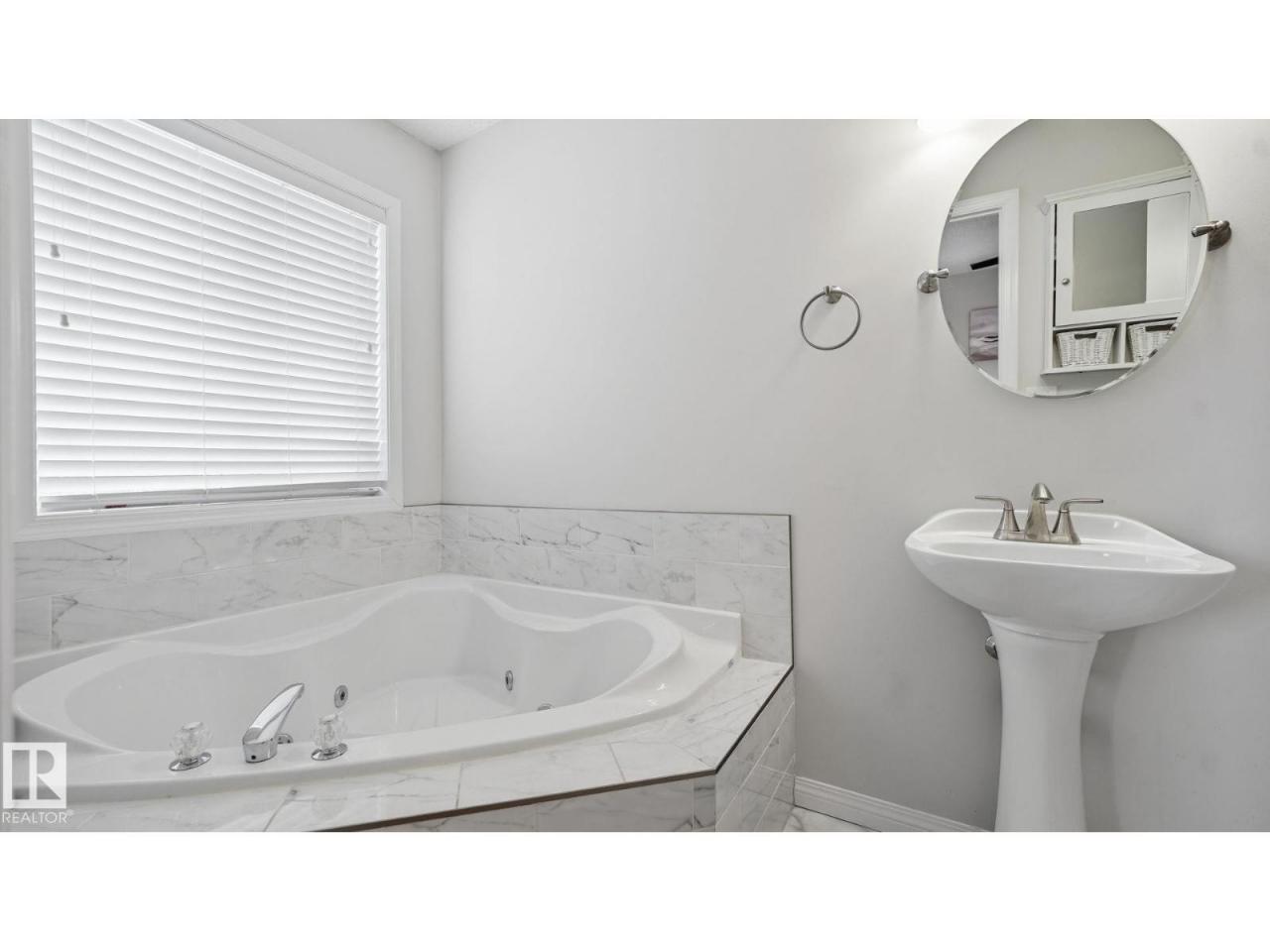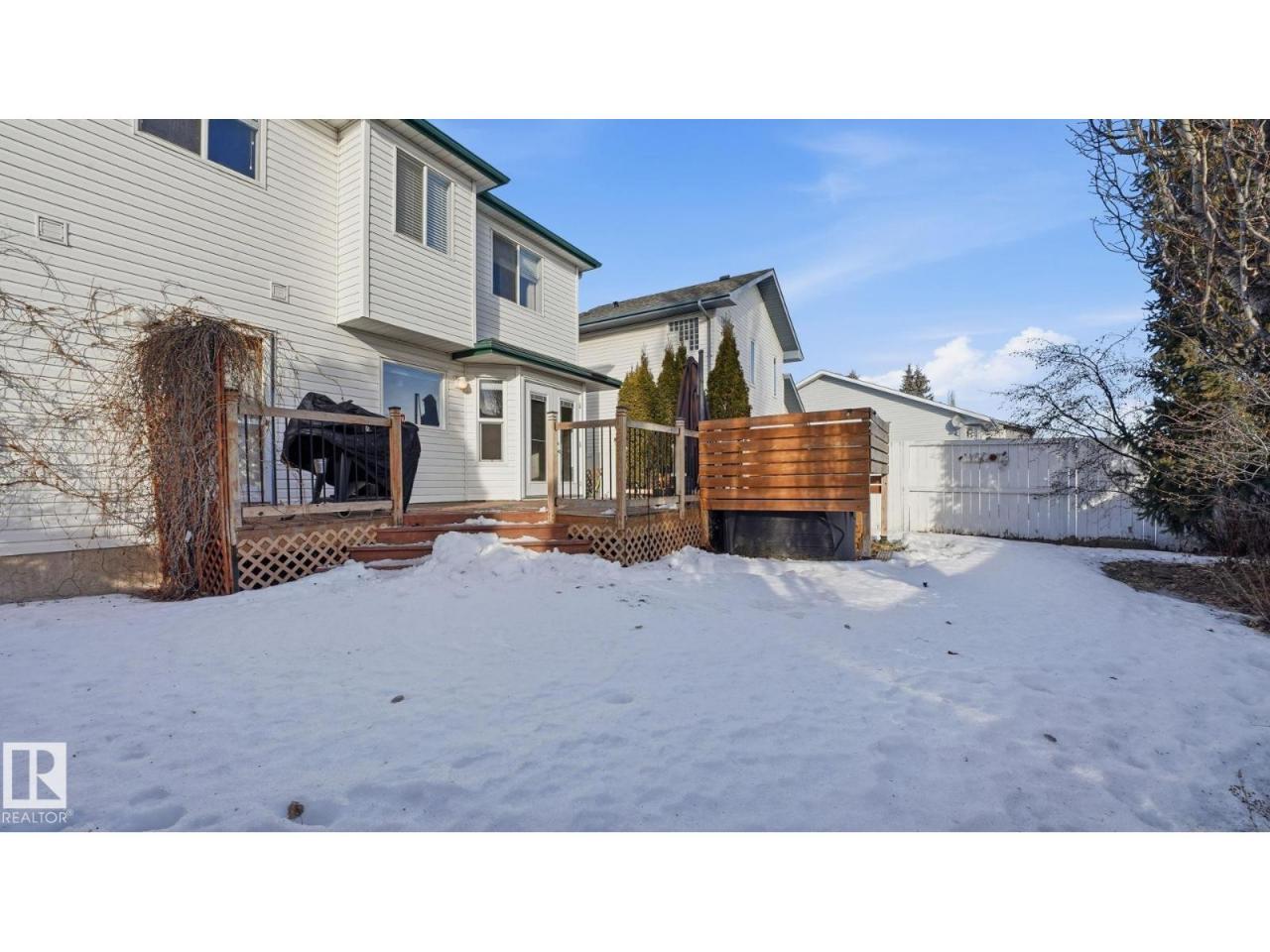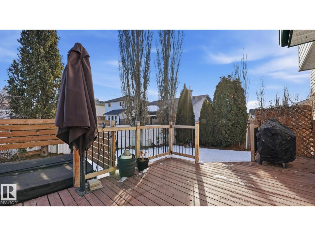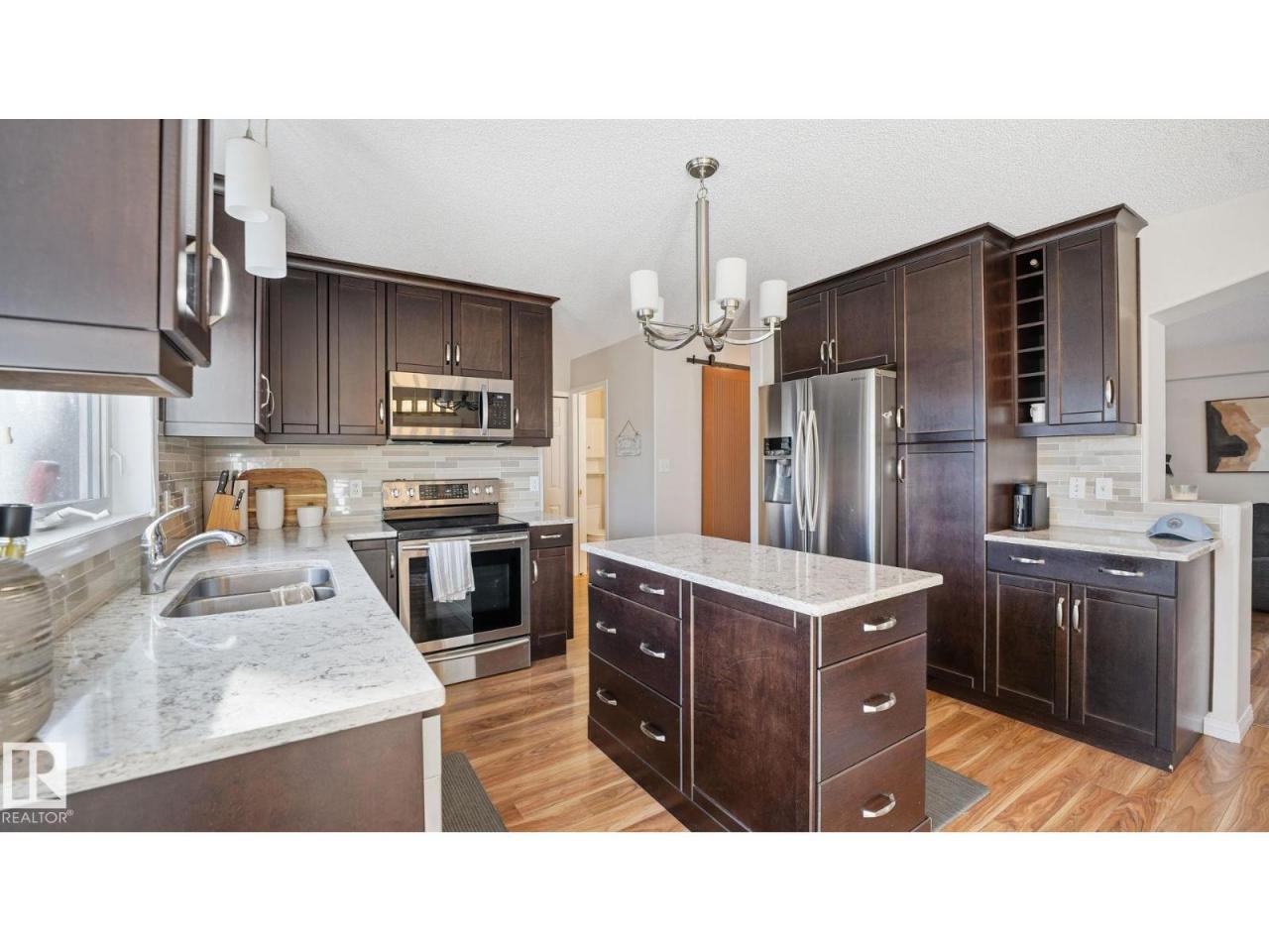 Beautifully maintained in the heart of family-friendly Lakewood! A welcoming foyer w/towering ceilings & soaring vaults sets the tone for this bright, inviting home flooded w/natural light from windows on all sides. The main floor, perfect for everyday living has a spacious living room w/wood-burning fireplace, plus a fully renovated kitchen w/real wood floor/ceiling cabinetry, quartz countertops, undermount sink, SS appliances, center island & a picture window overlooking the backyard. A cozy dinette w/garden doors leads to the cedar deck, ideal for family BBQs. Main level also has durable laminate flring, a 2pc bath & laundry. Upstairs features spacious bedrooms w/no carpet, a 4pc bath & a king-sized primary suite w/4pc ensuite. The fully finished basement adds even more space w/brand new carpet, fresh paint, a rec room, 3pc bath & 4th bedroom. Enjoy the oversized garage, newer shingles, hot water tank (2024), mature trees, hot tub & private yard w/playground, trail system & shopping all nearby (id:6769)